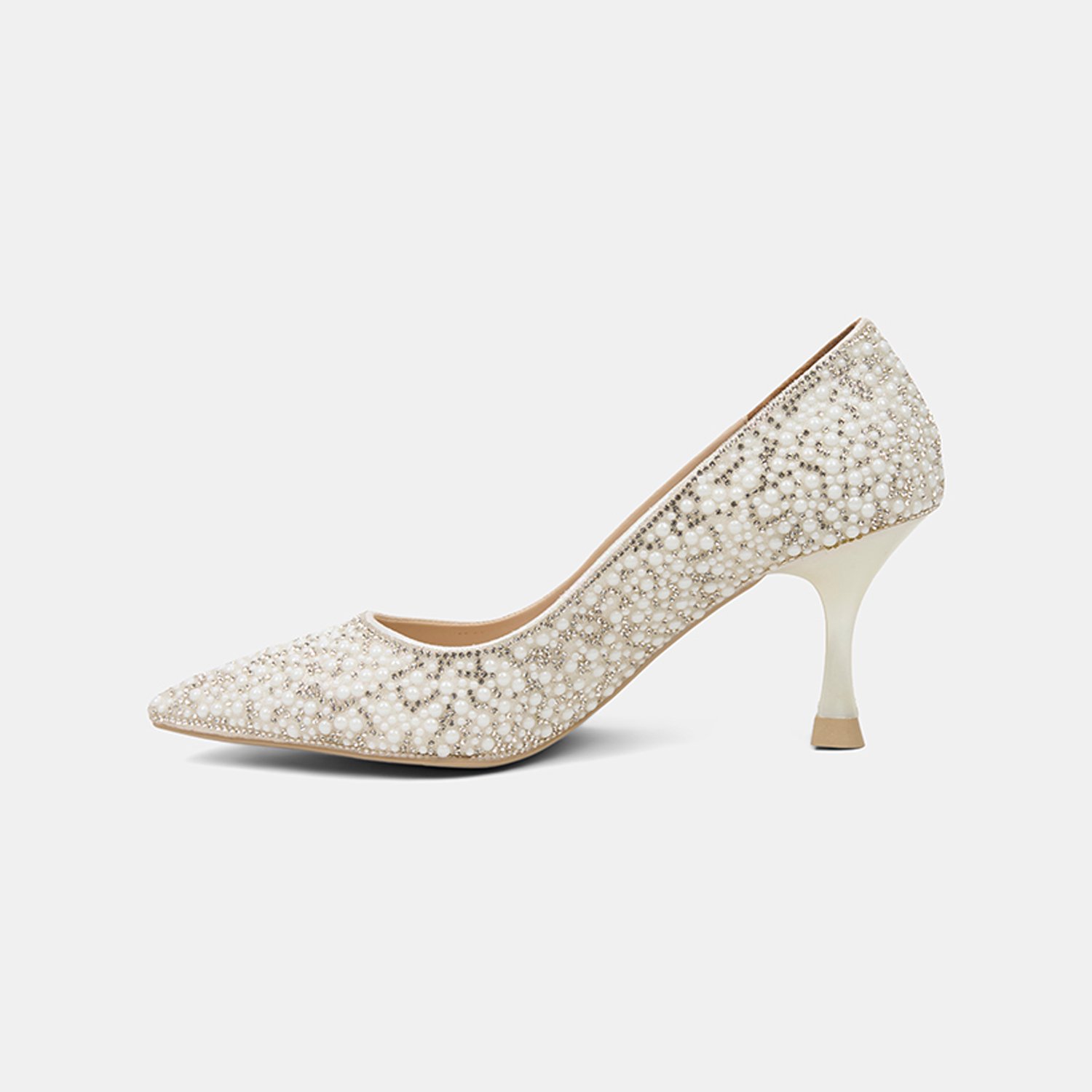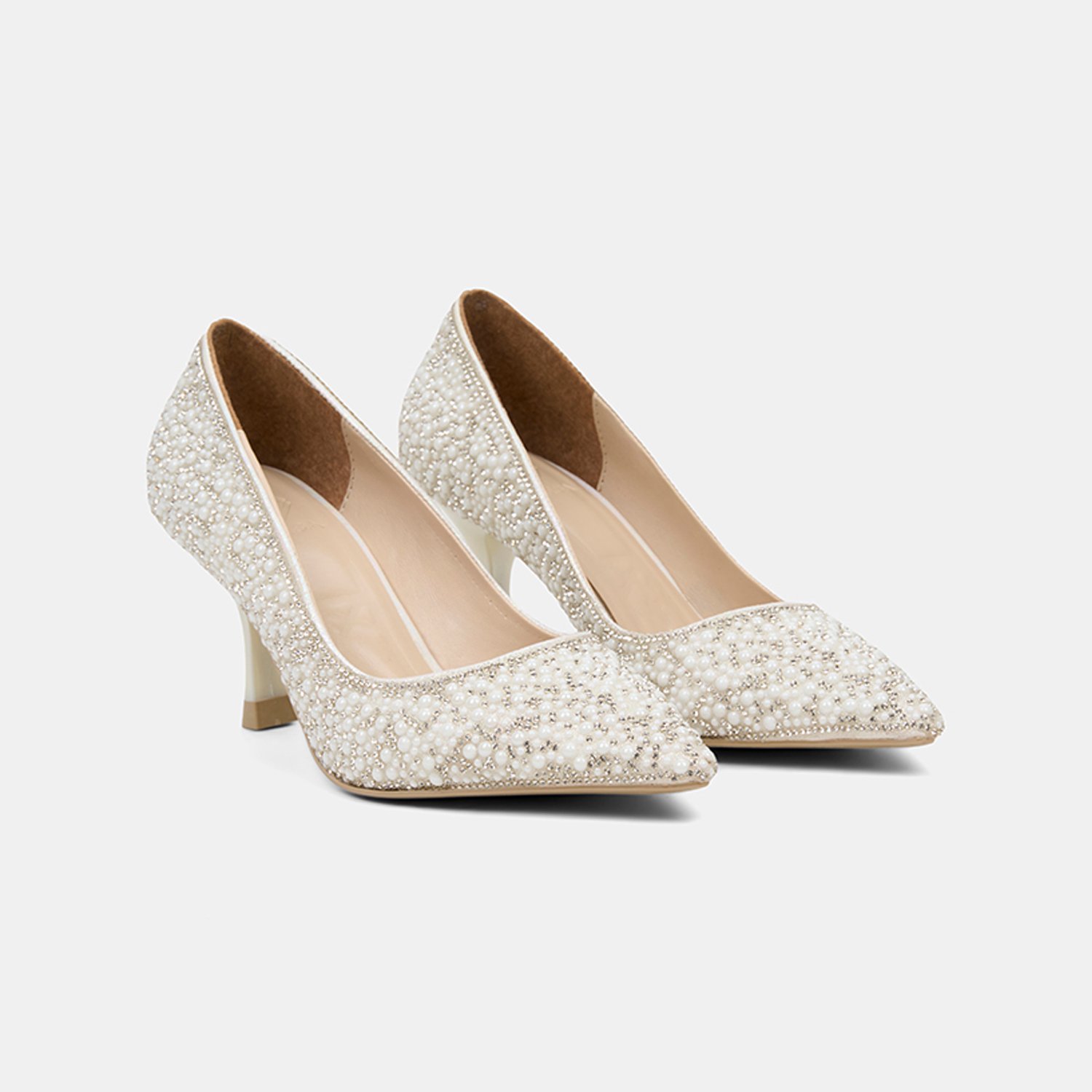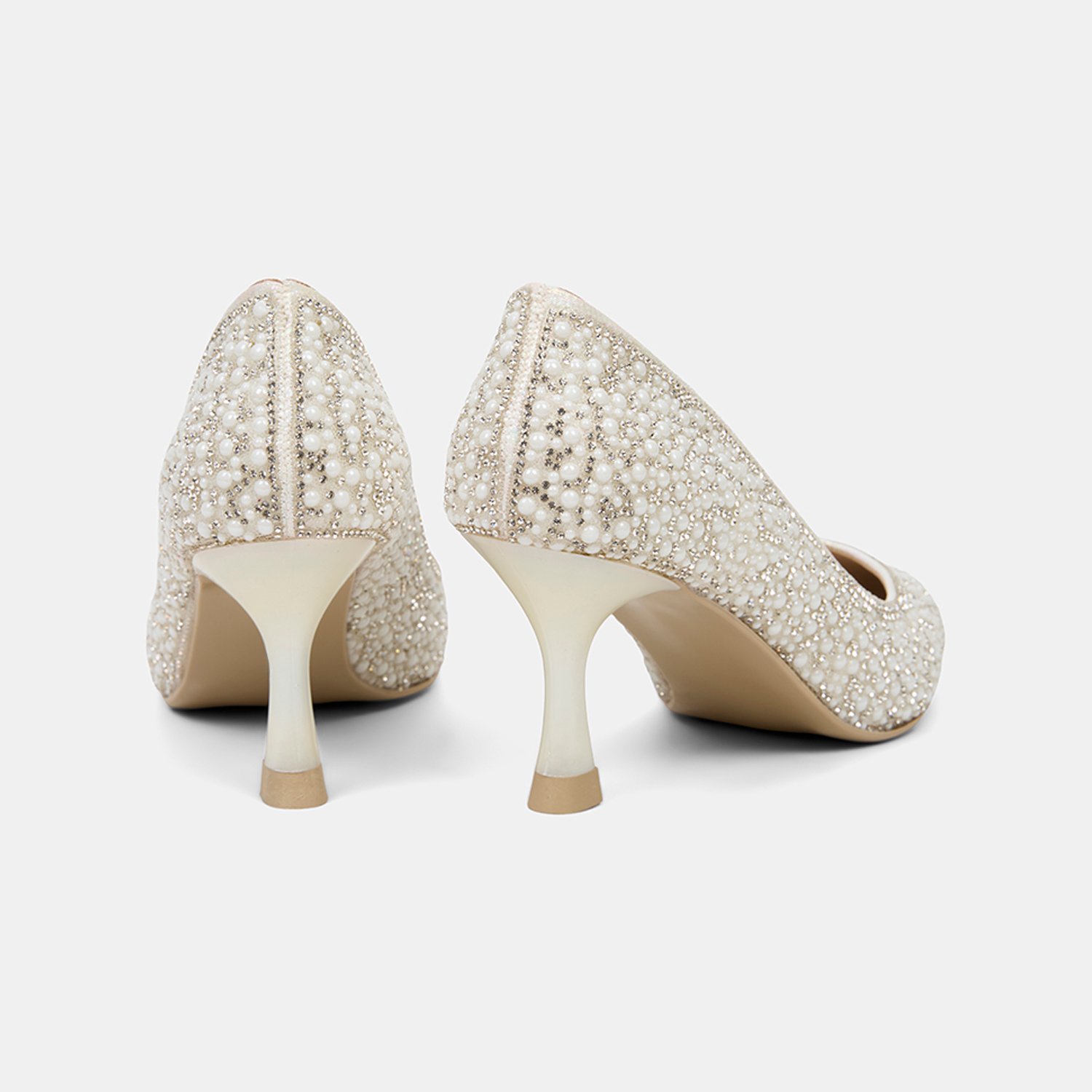 Kadın Kırık Beyaz Taş İşlemeli Topuklu Gelin Ayakkabısı