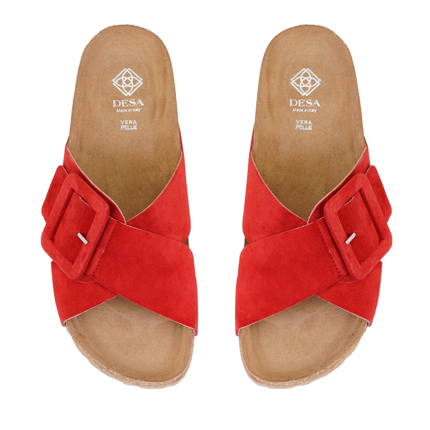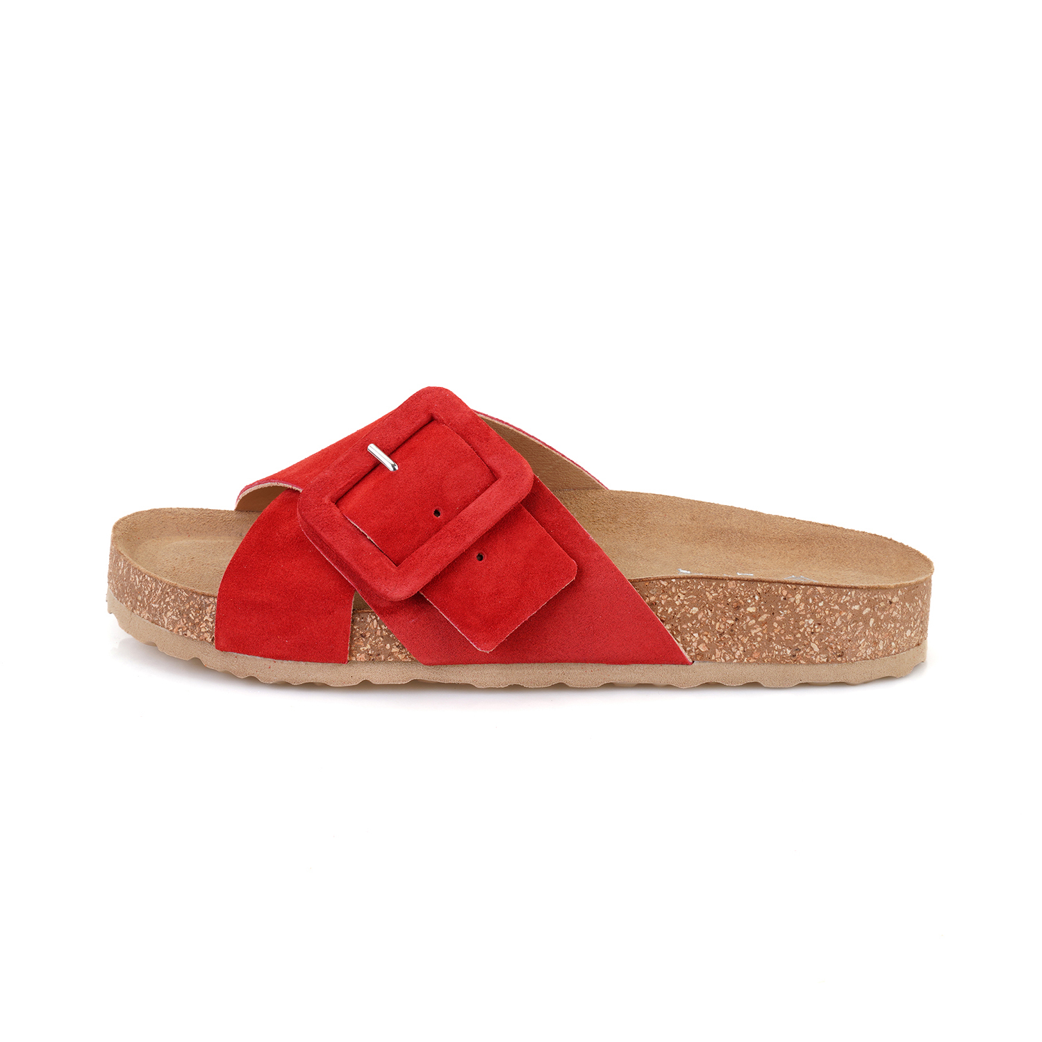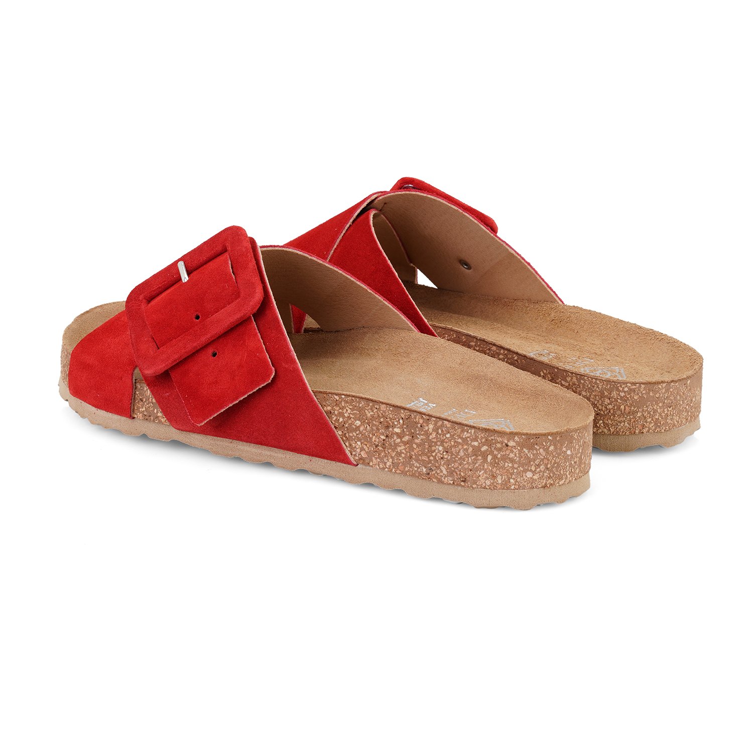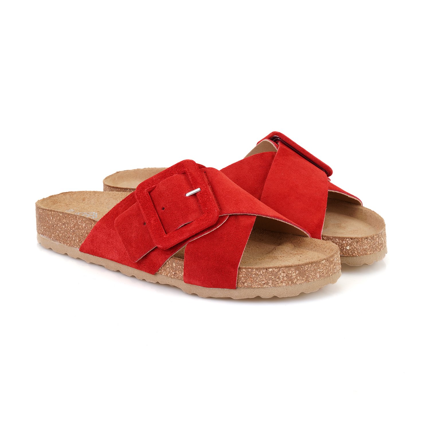 Kadın Kırmızı Ayarlanabilir Tokalı Süet Deri Terlik