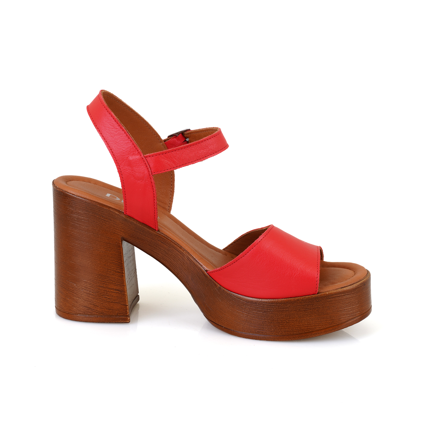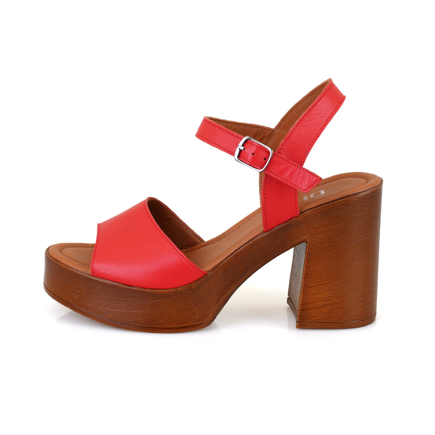 Kadın Kırmızı Ayarlanabilir Tokalı Topuklu Deri Sandalet