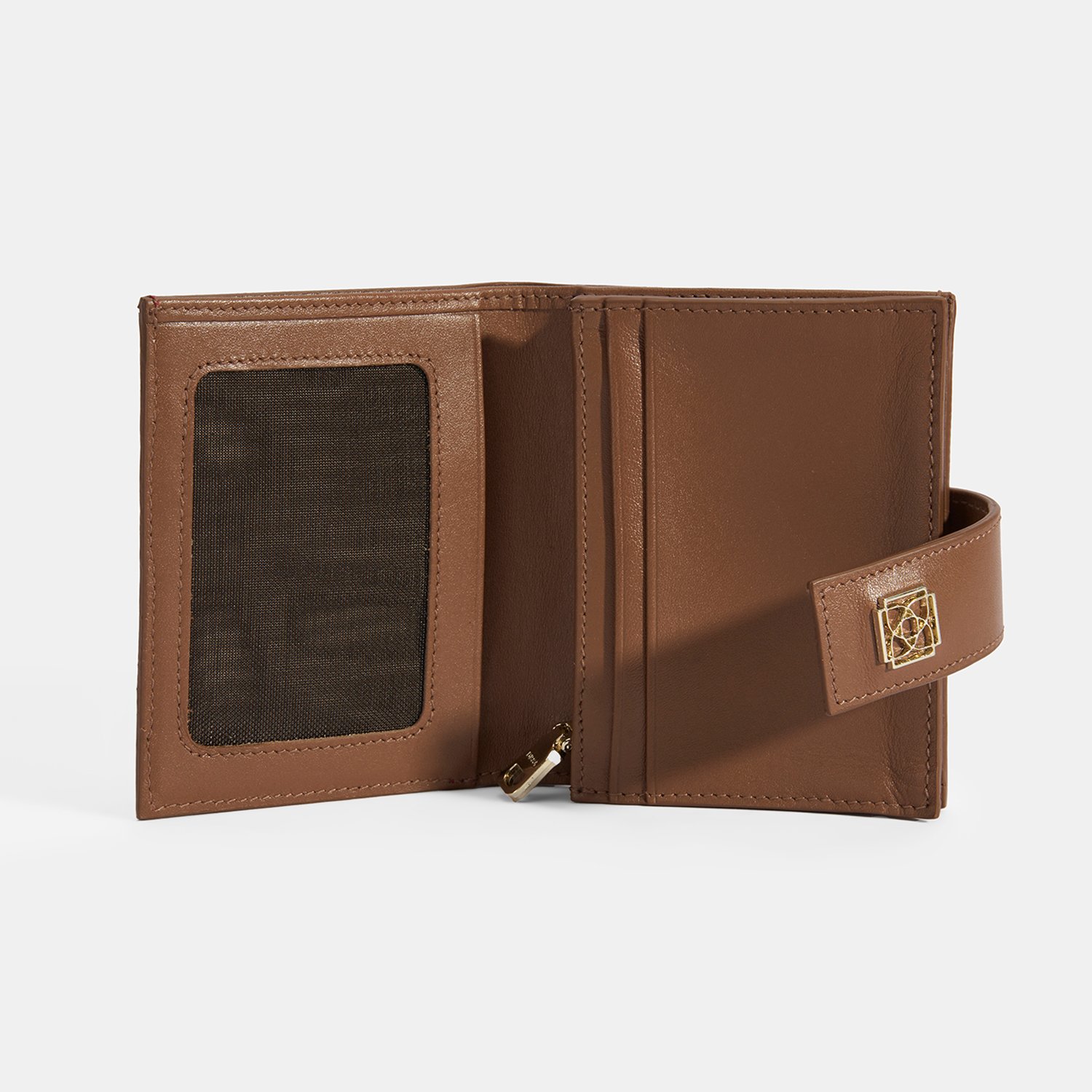 %100 deri, çıtçıt kapatmalı, düz renkli, logolu deri cüzdan; 4 kart gözü, 1 adet kağıt para yeri ve 1 fermuarlı bozuk para cebi bulunmaktadır.