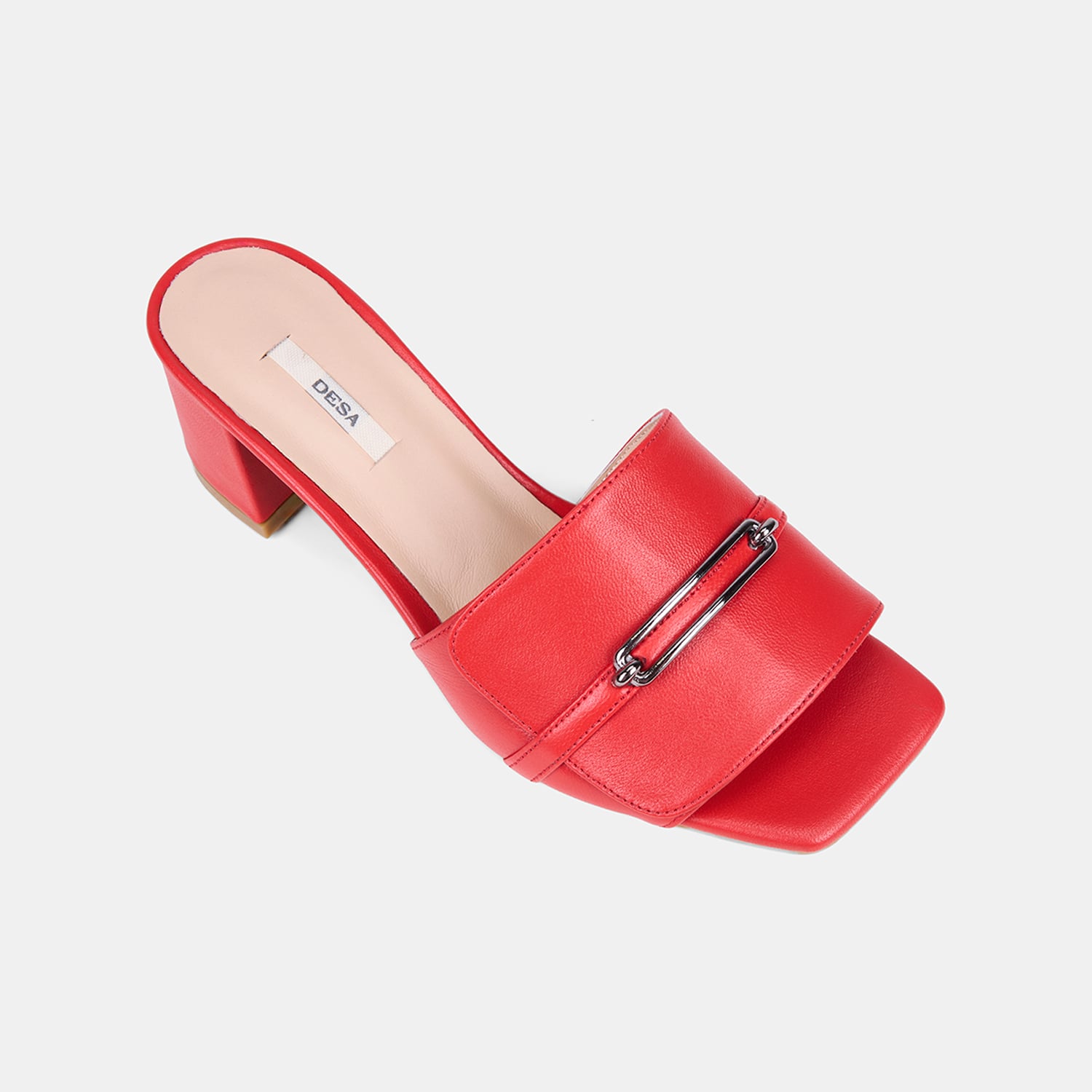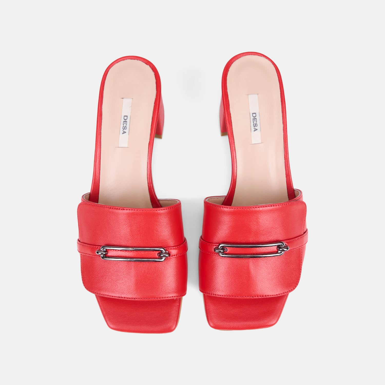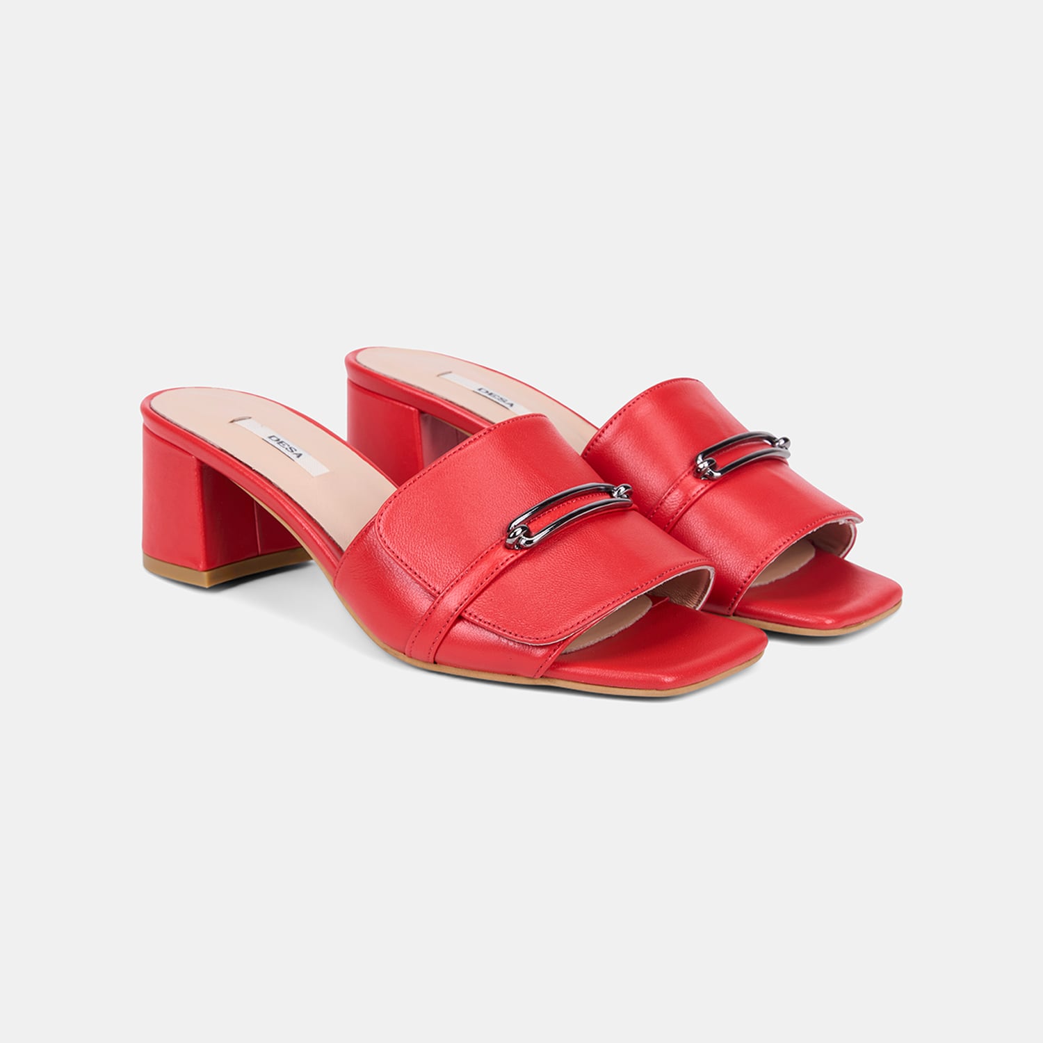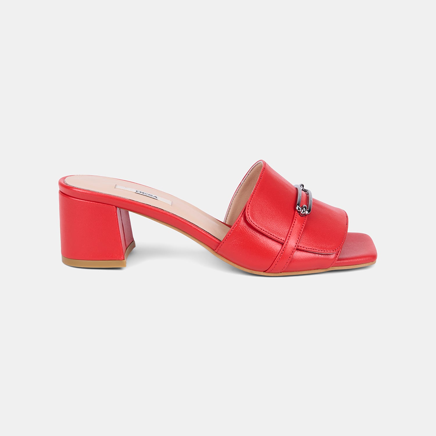 Kadın Kırmızı Metal Tokalı Topuklu Deri Terlik