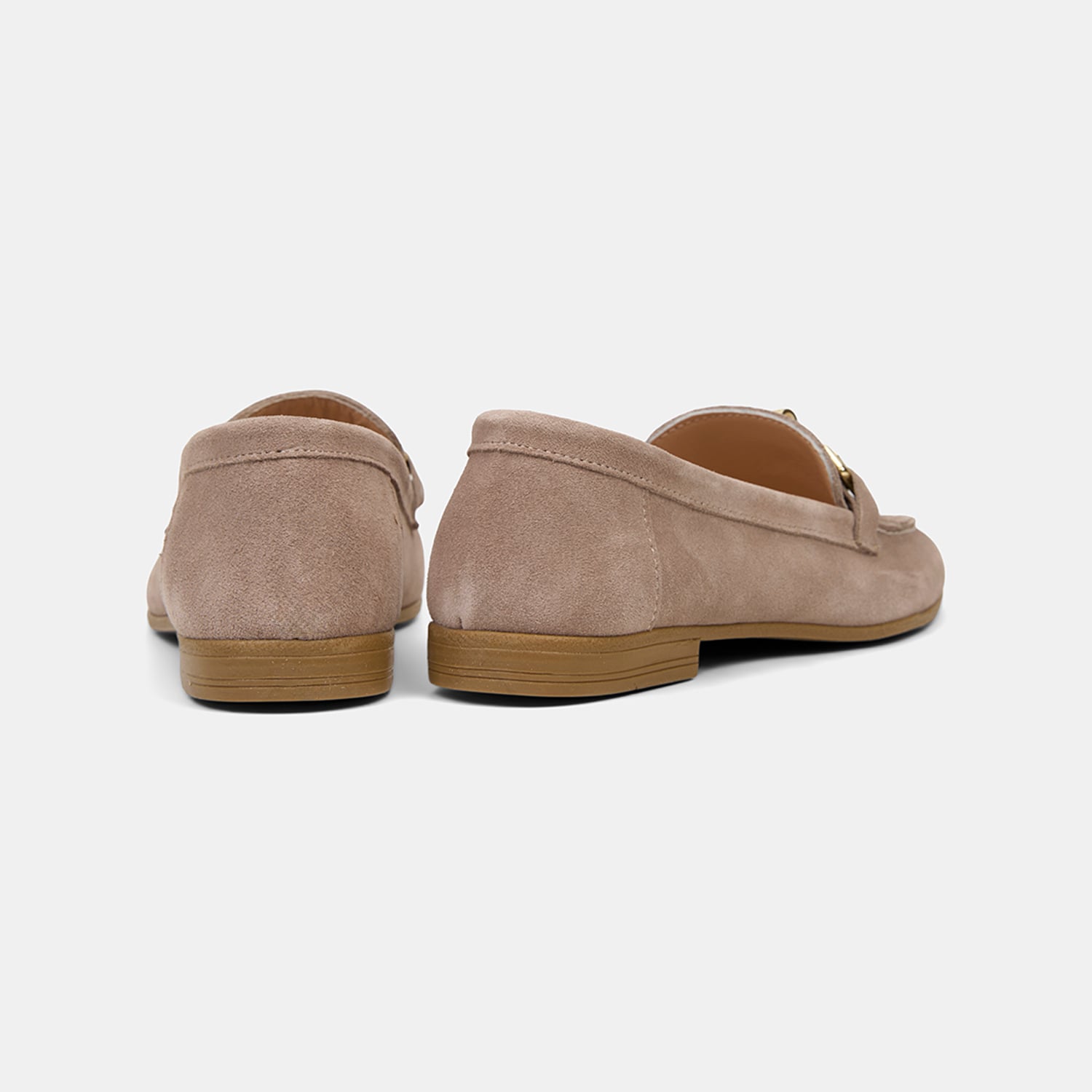 Kadın Koyu Bej Metal Aksesuarlı Süet Loafer