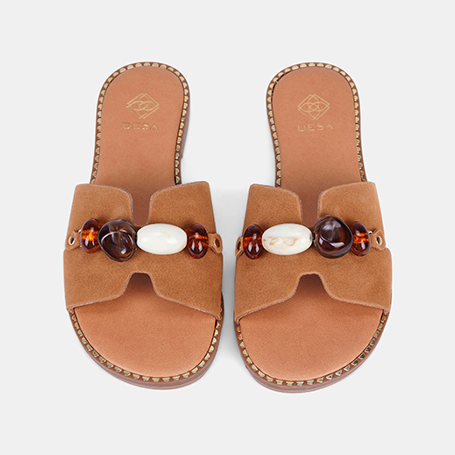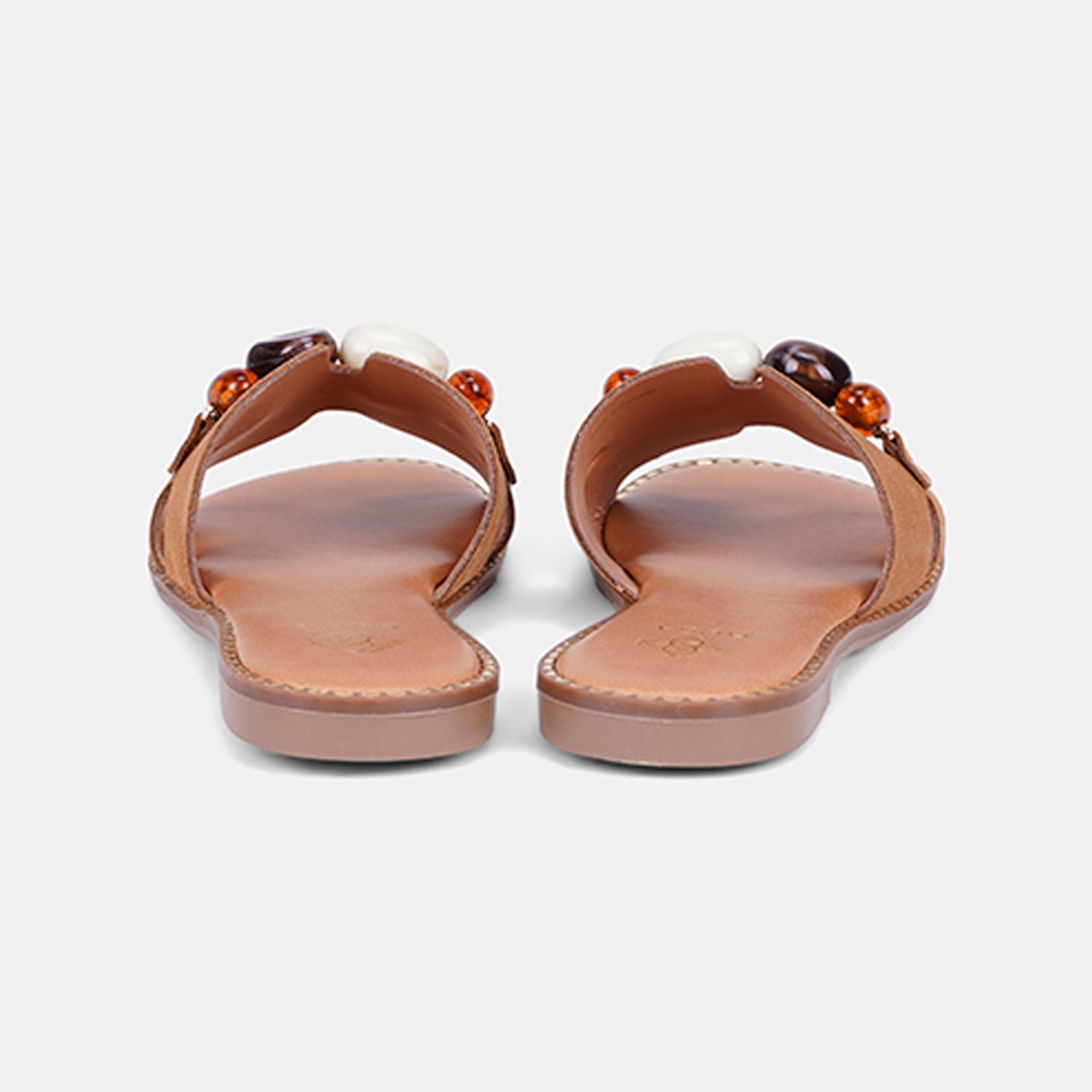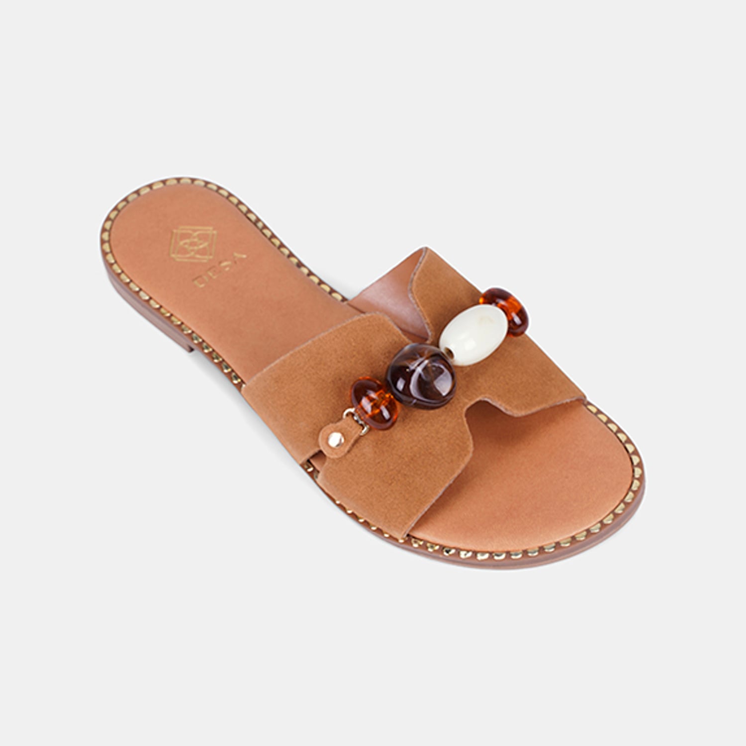 Kadın Koyu Bej Renkli Taş Aksesuarlı Süet Terlik