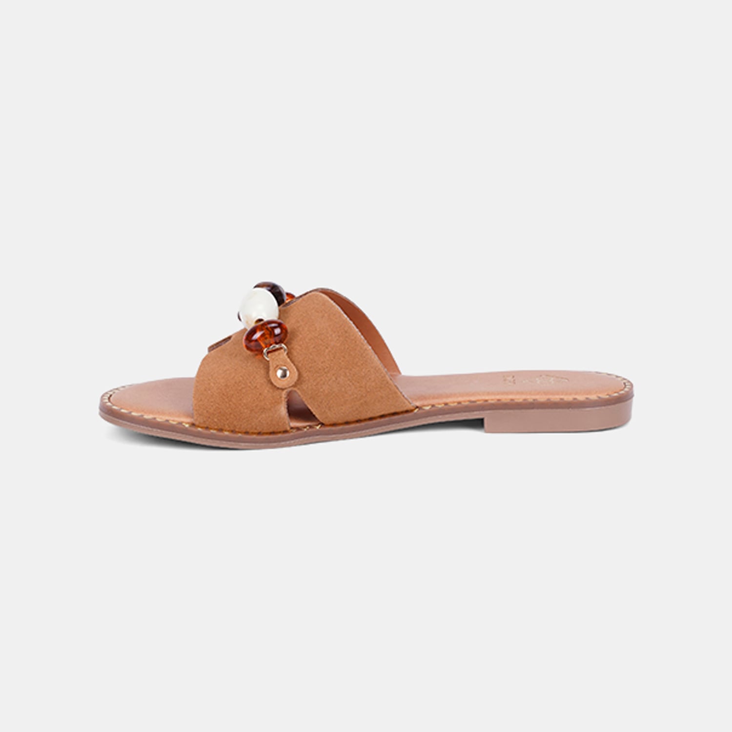 Kadın süet terlik, %100 dana derisinden üretilmiş süet dış yüzeyi ile yumuşak dokulu ve doğal bir görünüm sunar.
