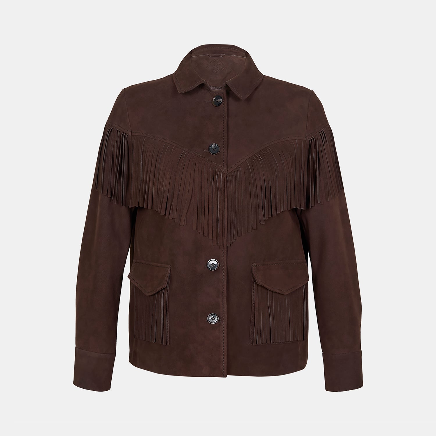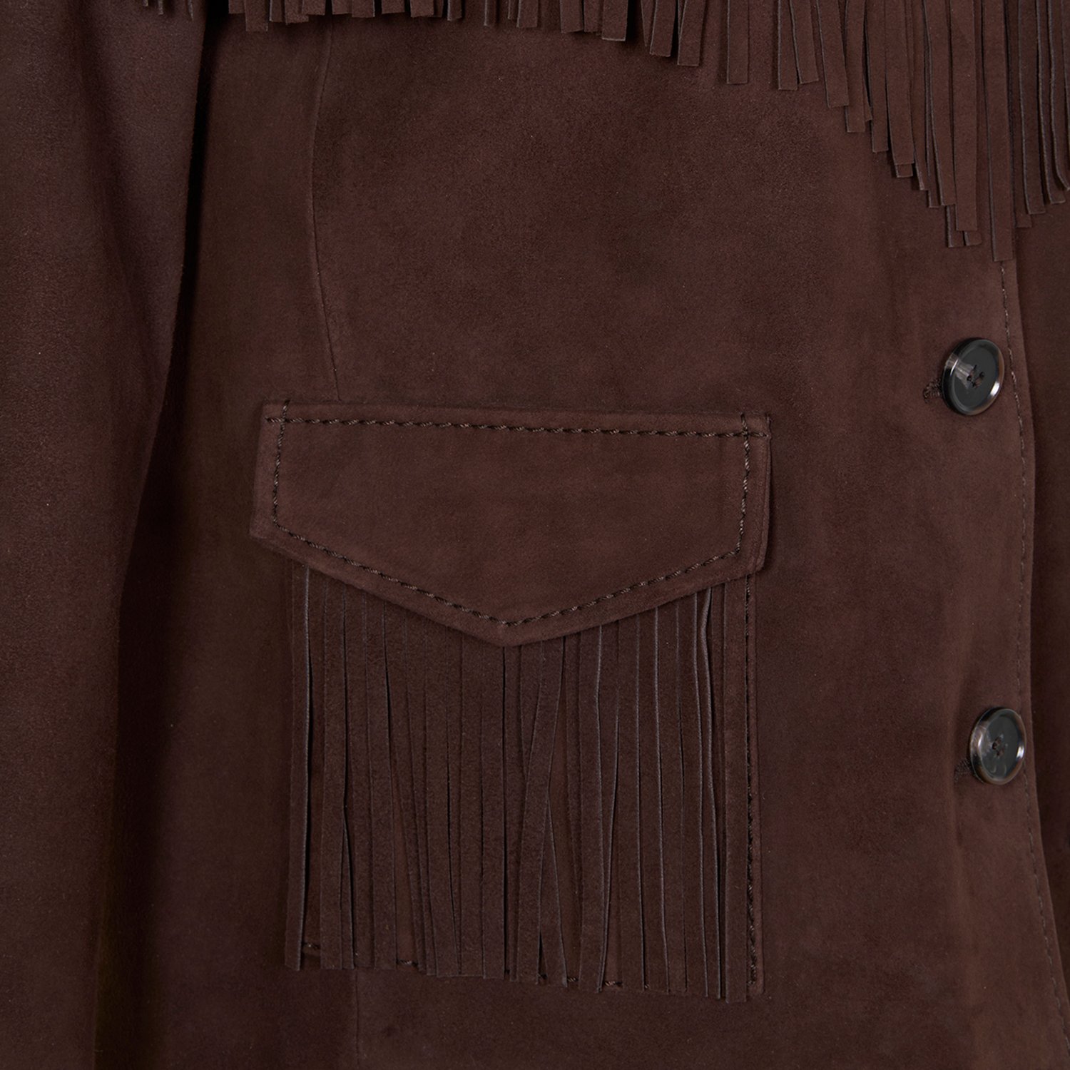 Kadın Koyu Kahve Gömlek Yakalı Püskül Detaylı Süet Ceket