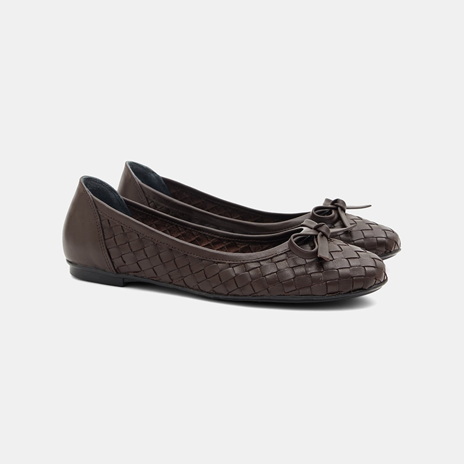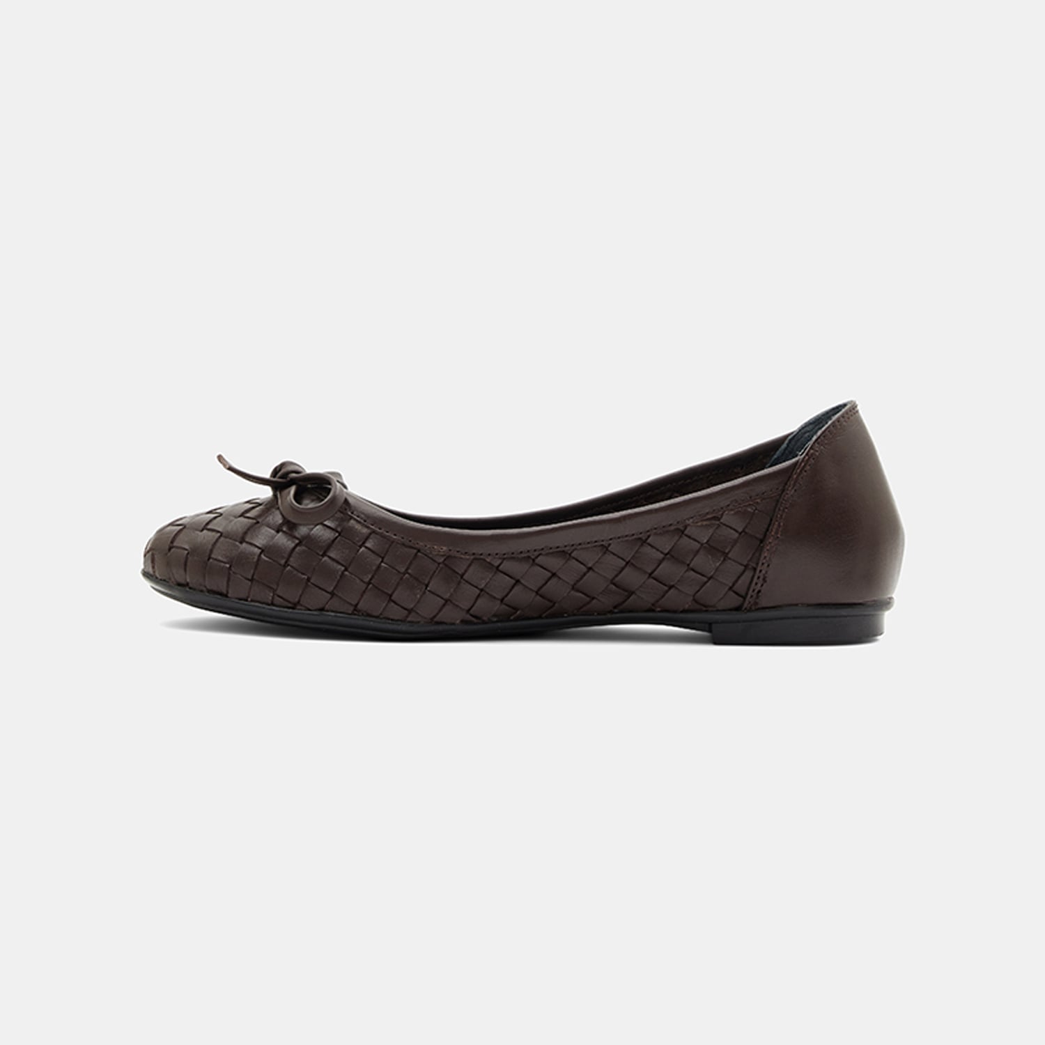 Kadın Koyu Kahve Örgülü Fiyonk Detaylı Deri Babet