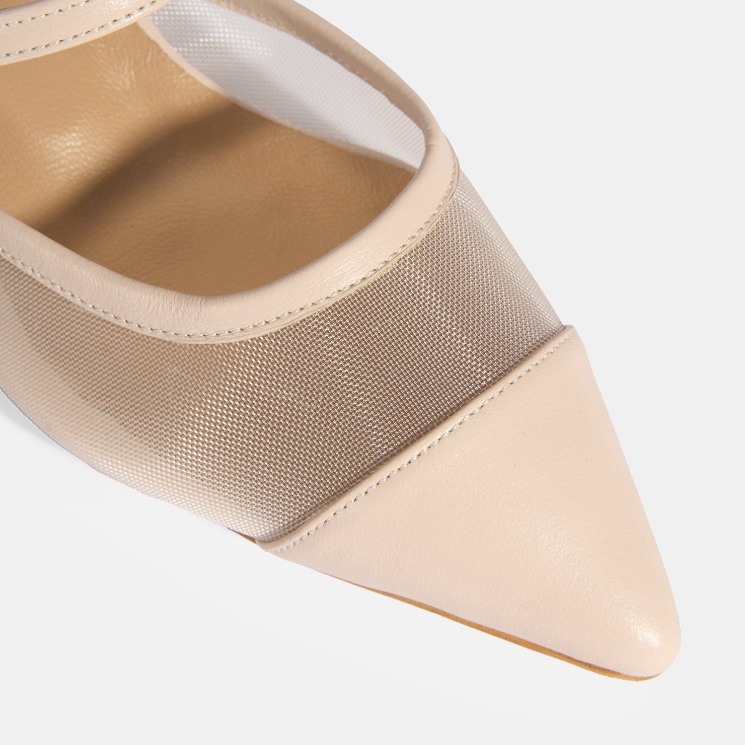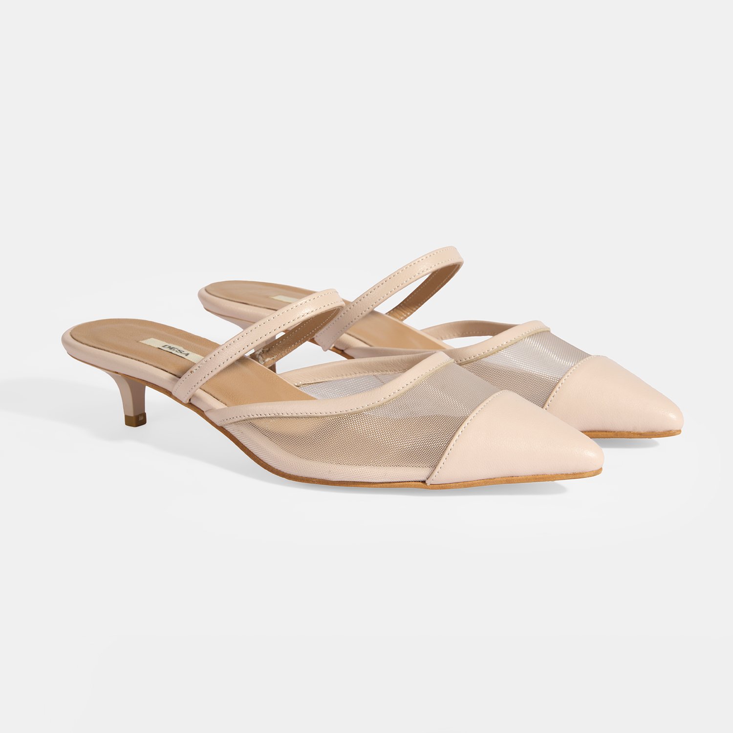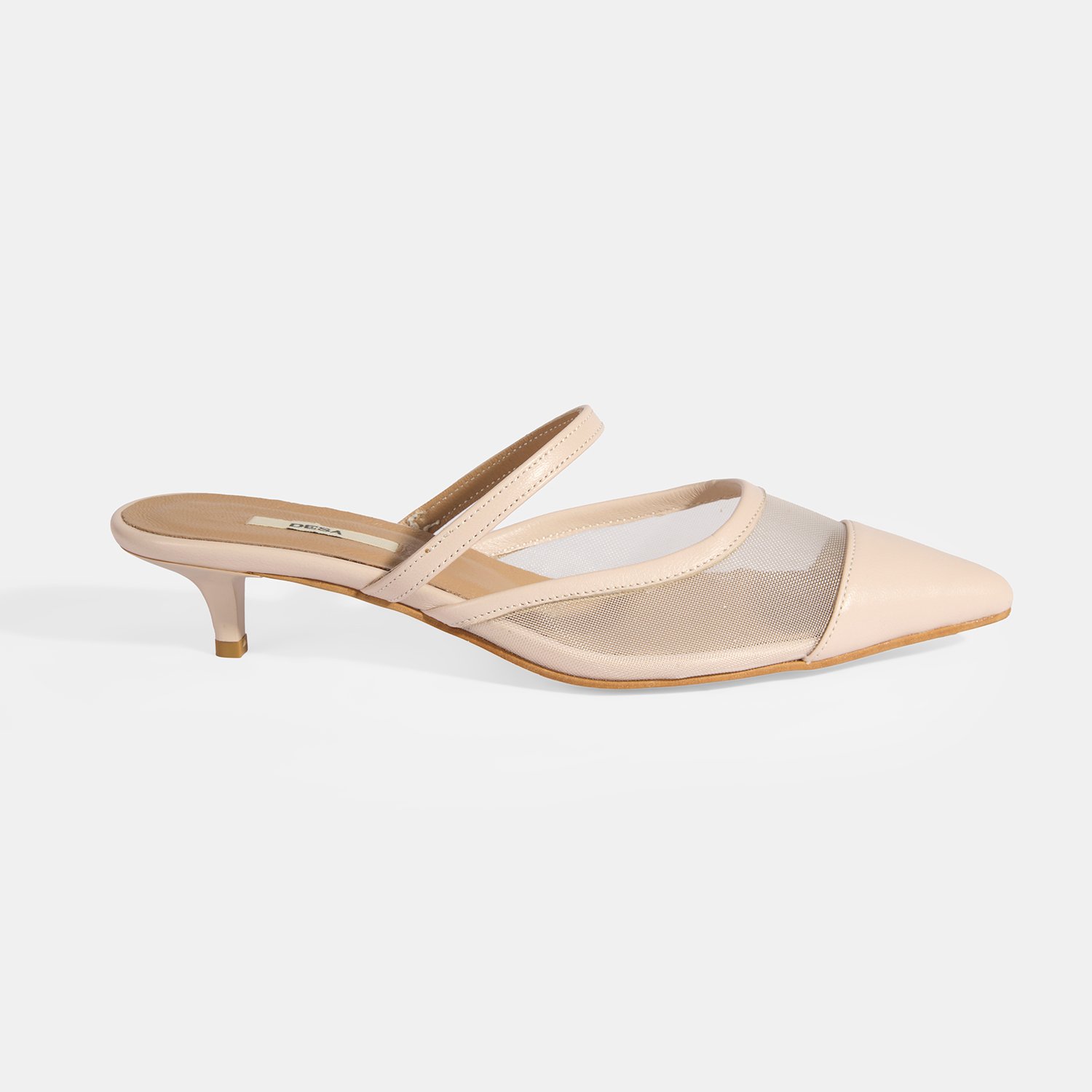 Kadın Krem Fileli Deri Topuklu Terlik Kadın Siyah Fileli Deri Topuklu Terlik