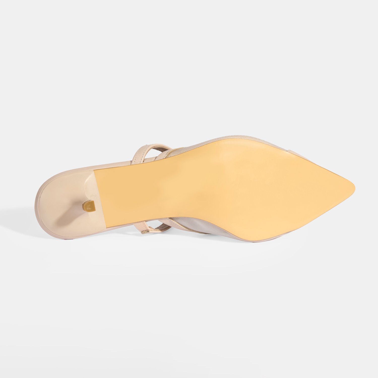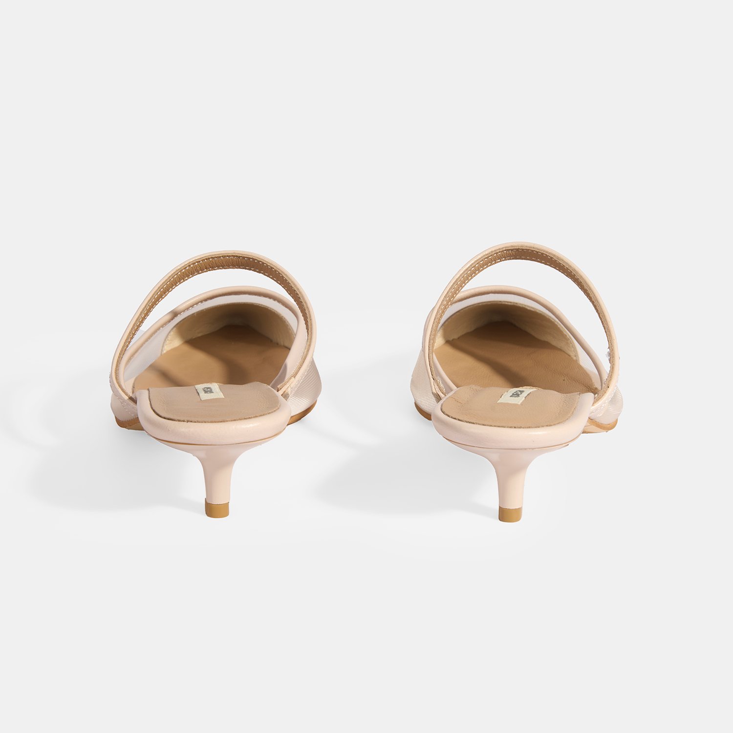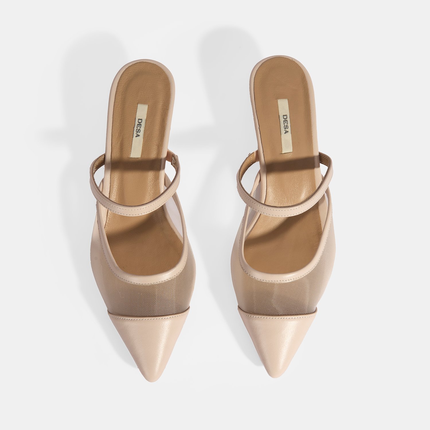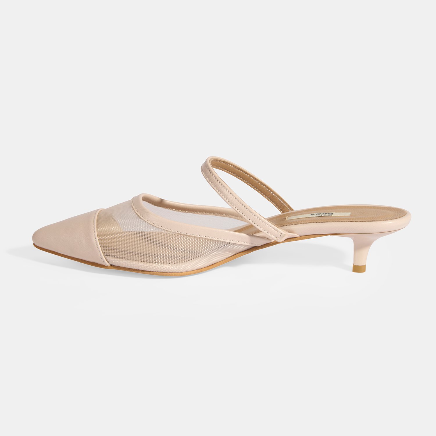 Kadın Krem Fileli Deri Topuklu Terlik Kadın Siyah Fileli Deri Topuklu Terlik