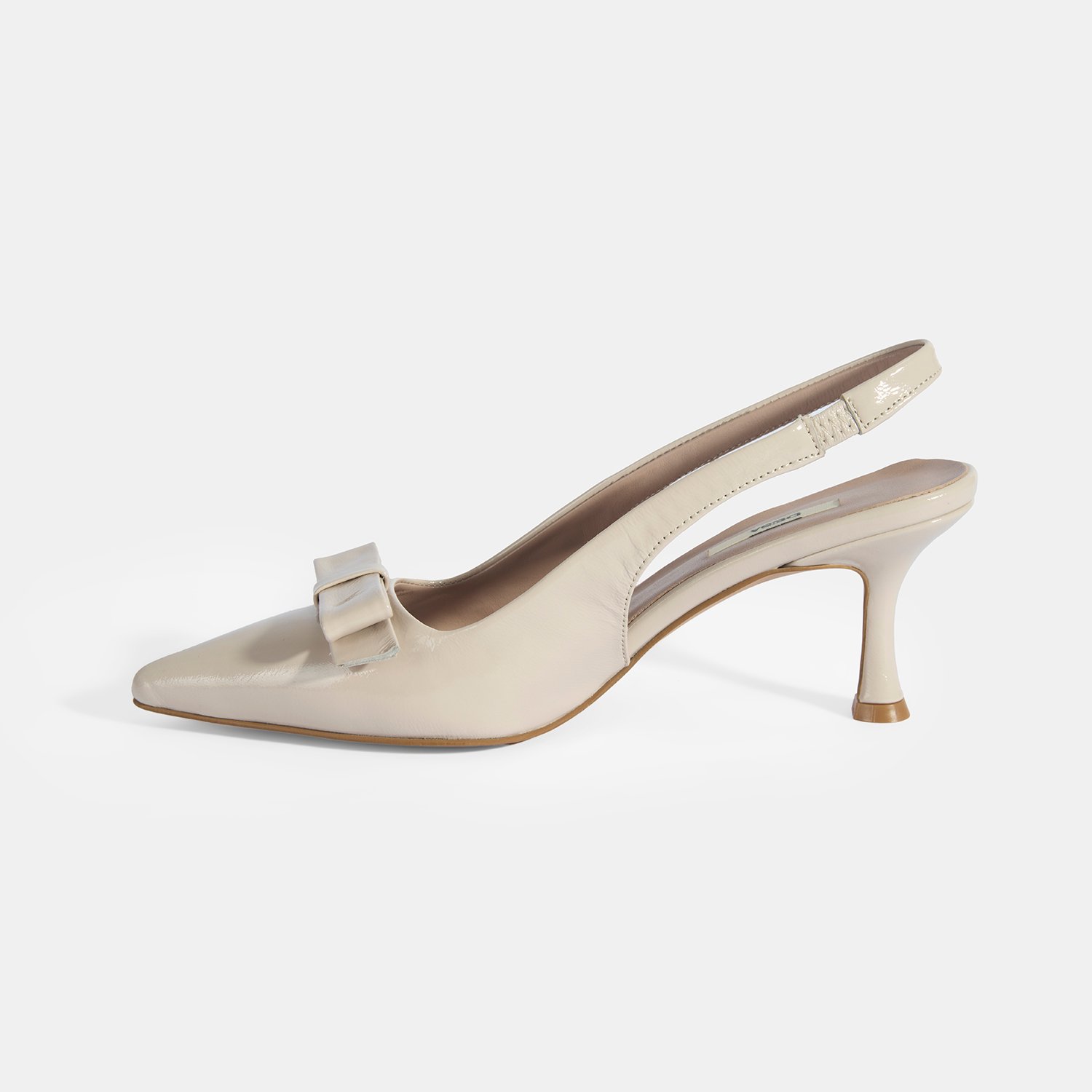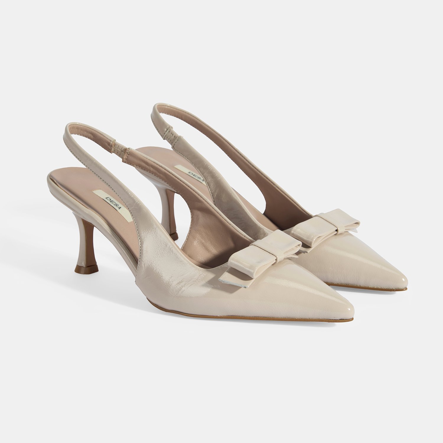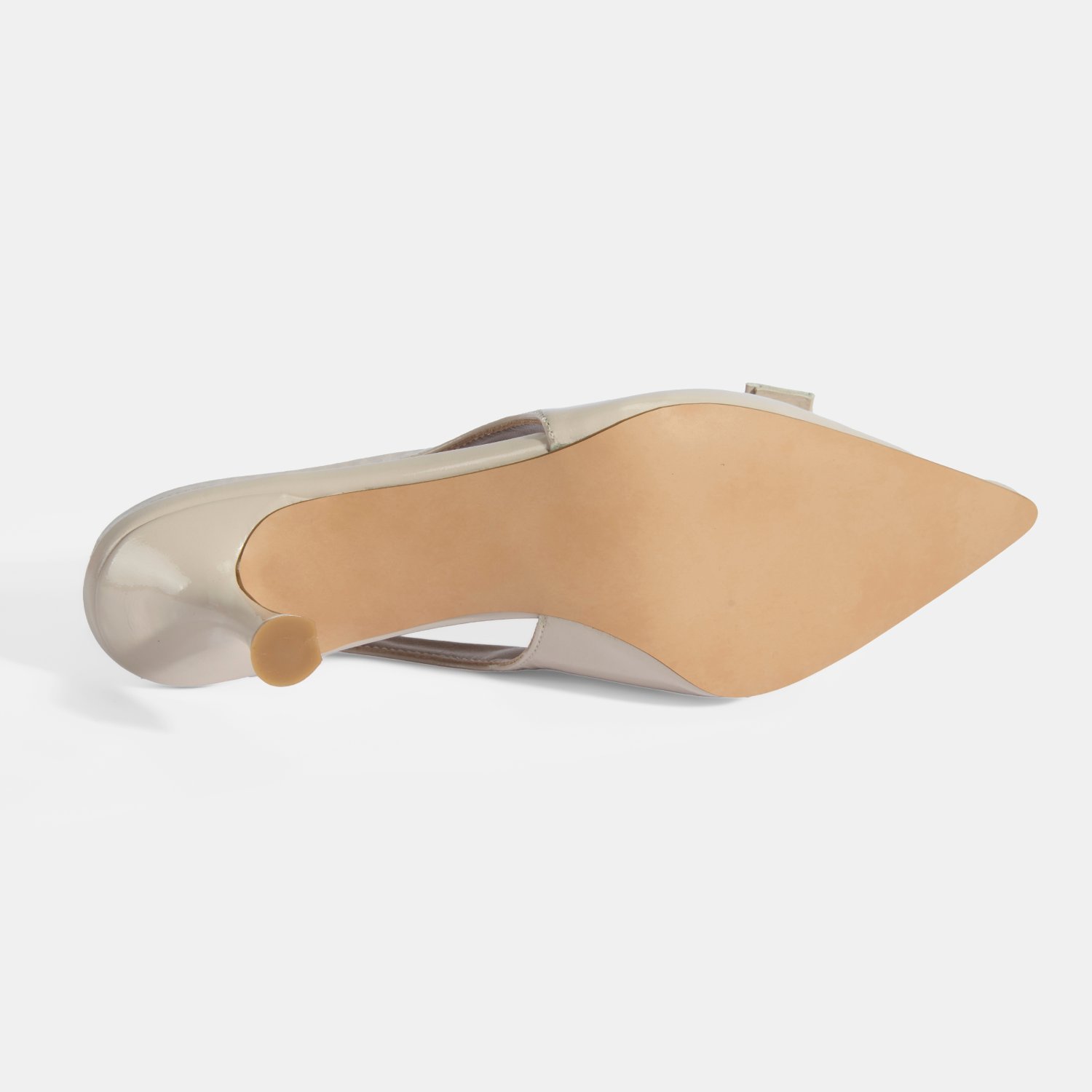 Kadın Krem Fiyonk Detaylı Rugan Topuklu Klasik Ayakkabı