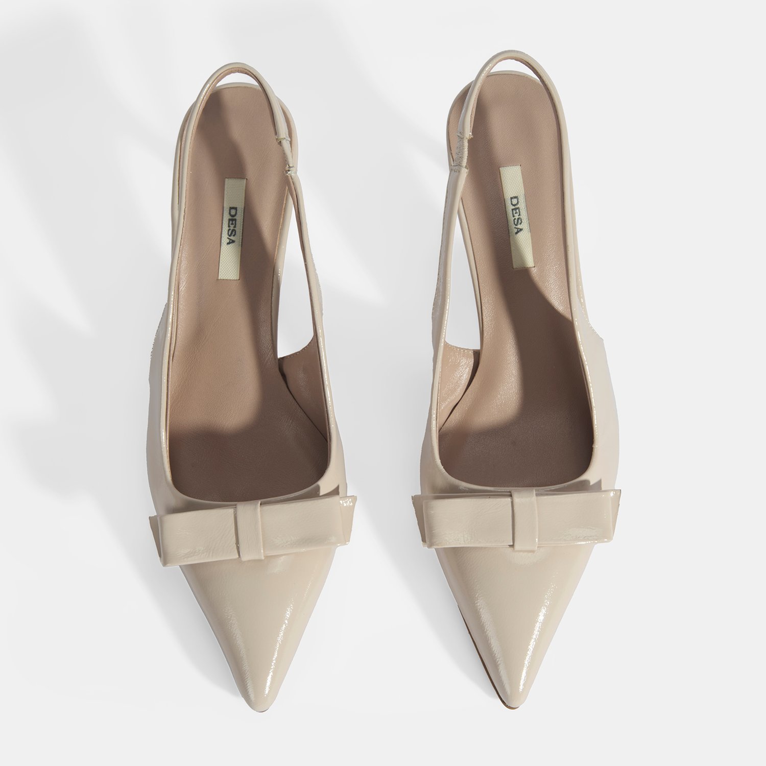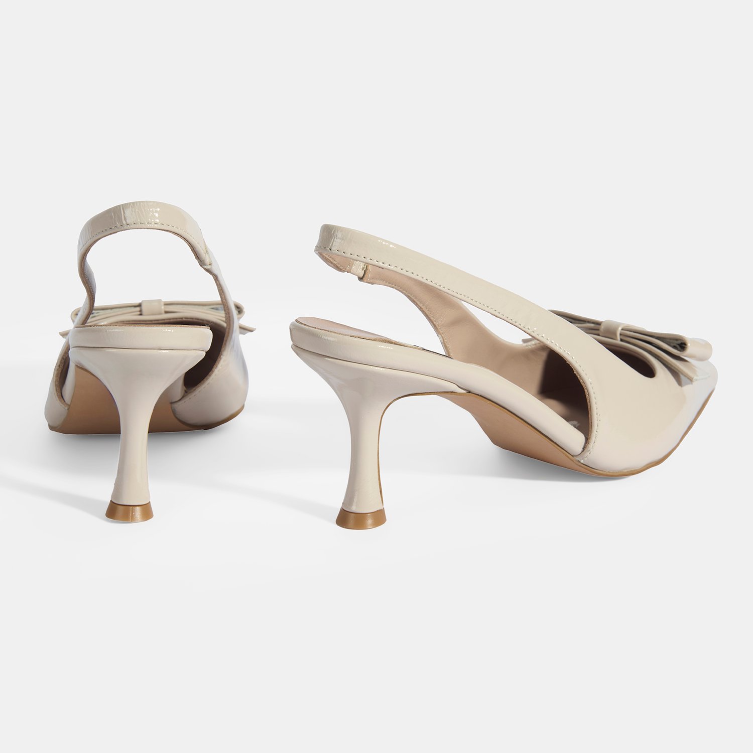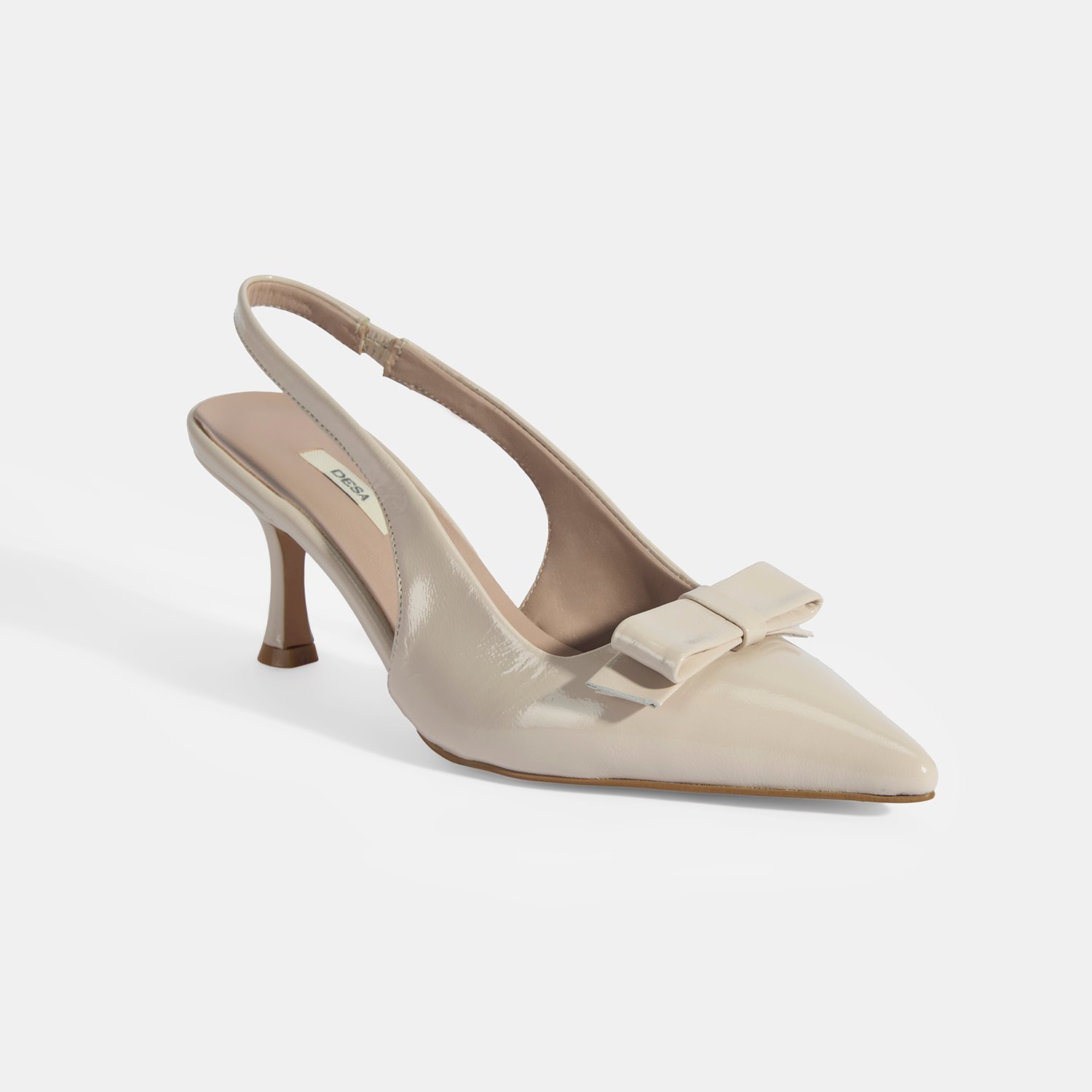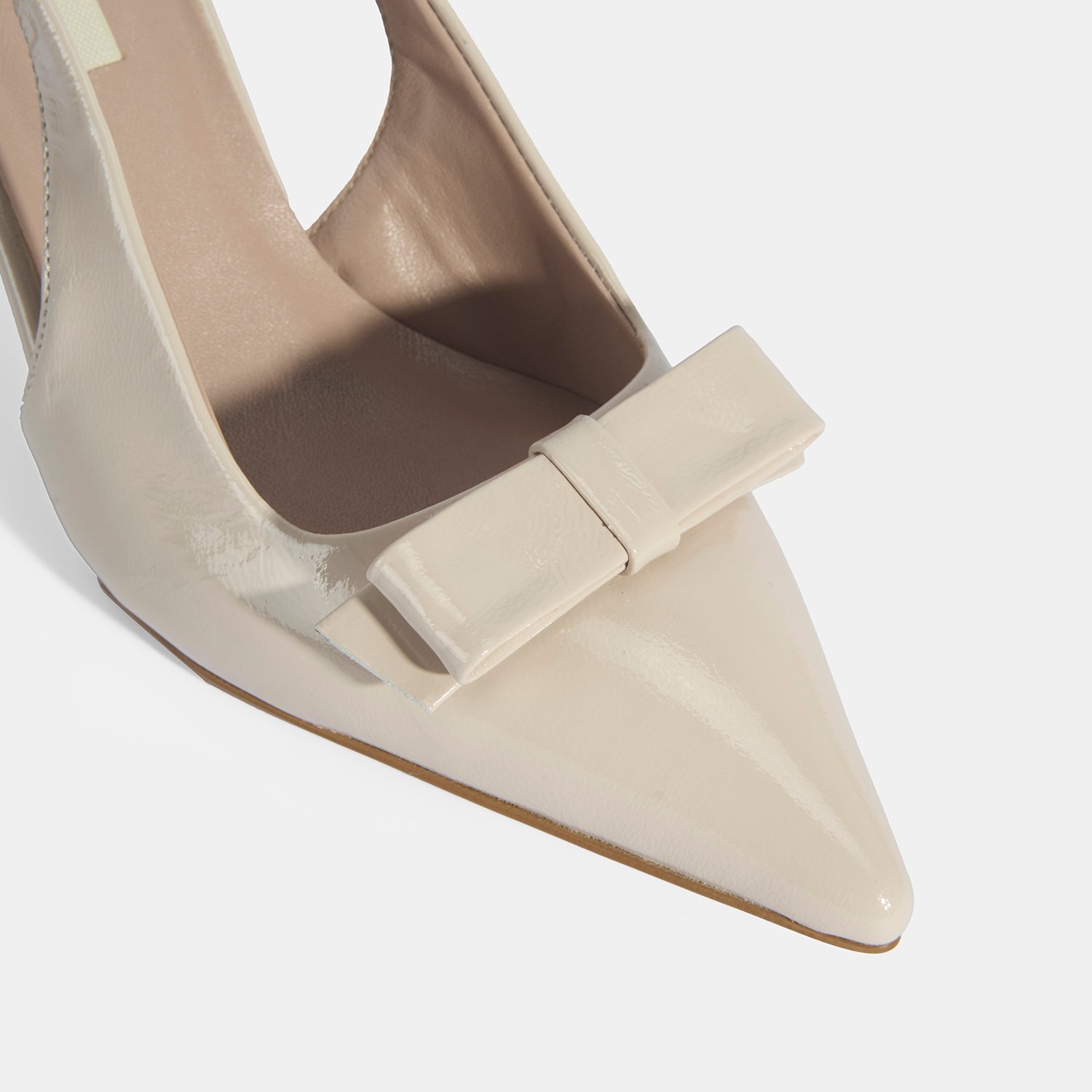 Kadın Krem Fiyonk Detaylı Rugan Topuklu Klasik Ayakkabı
