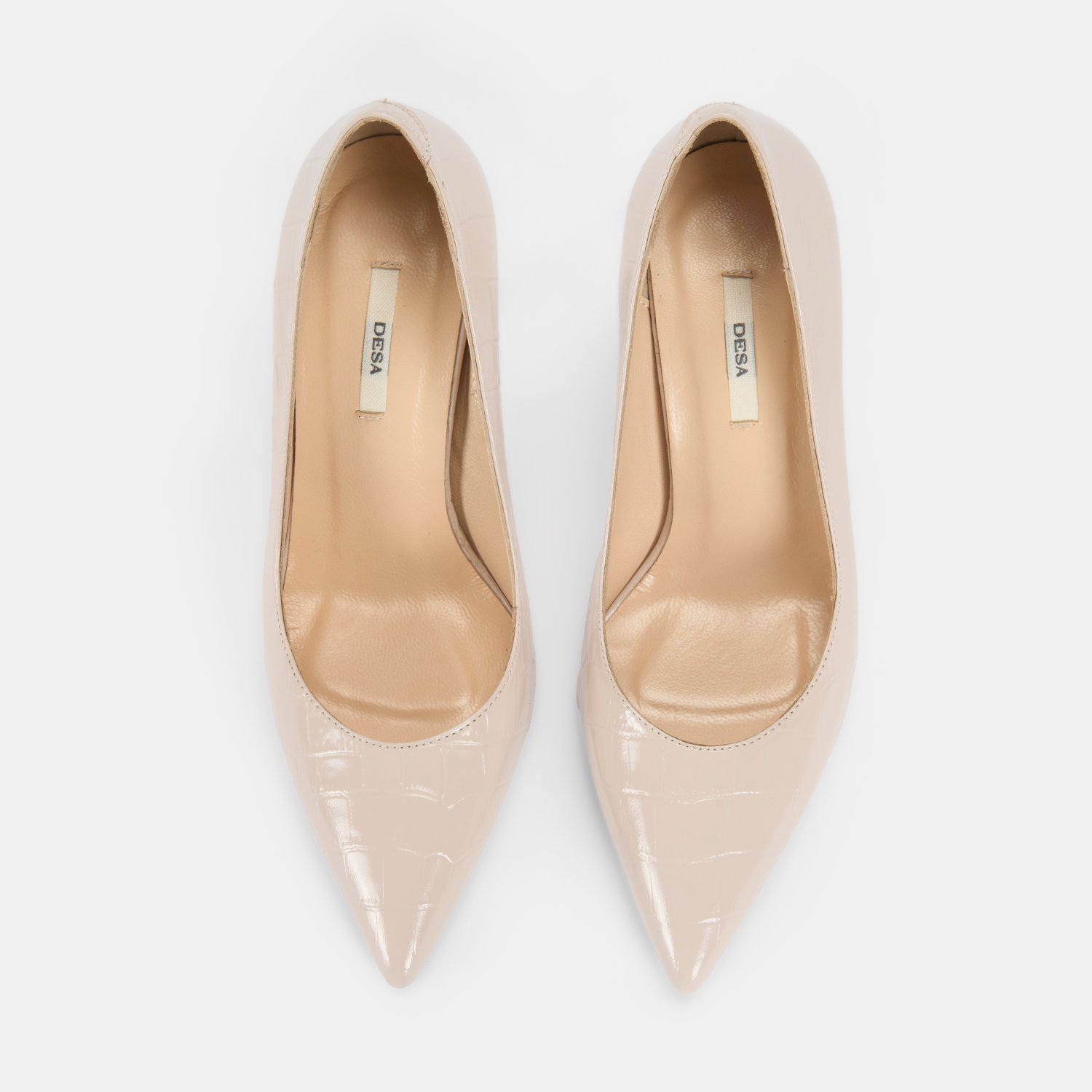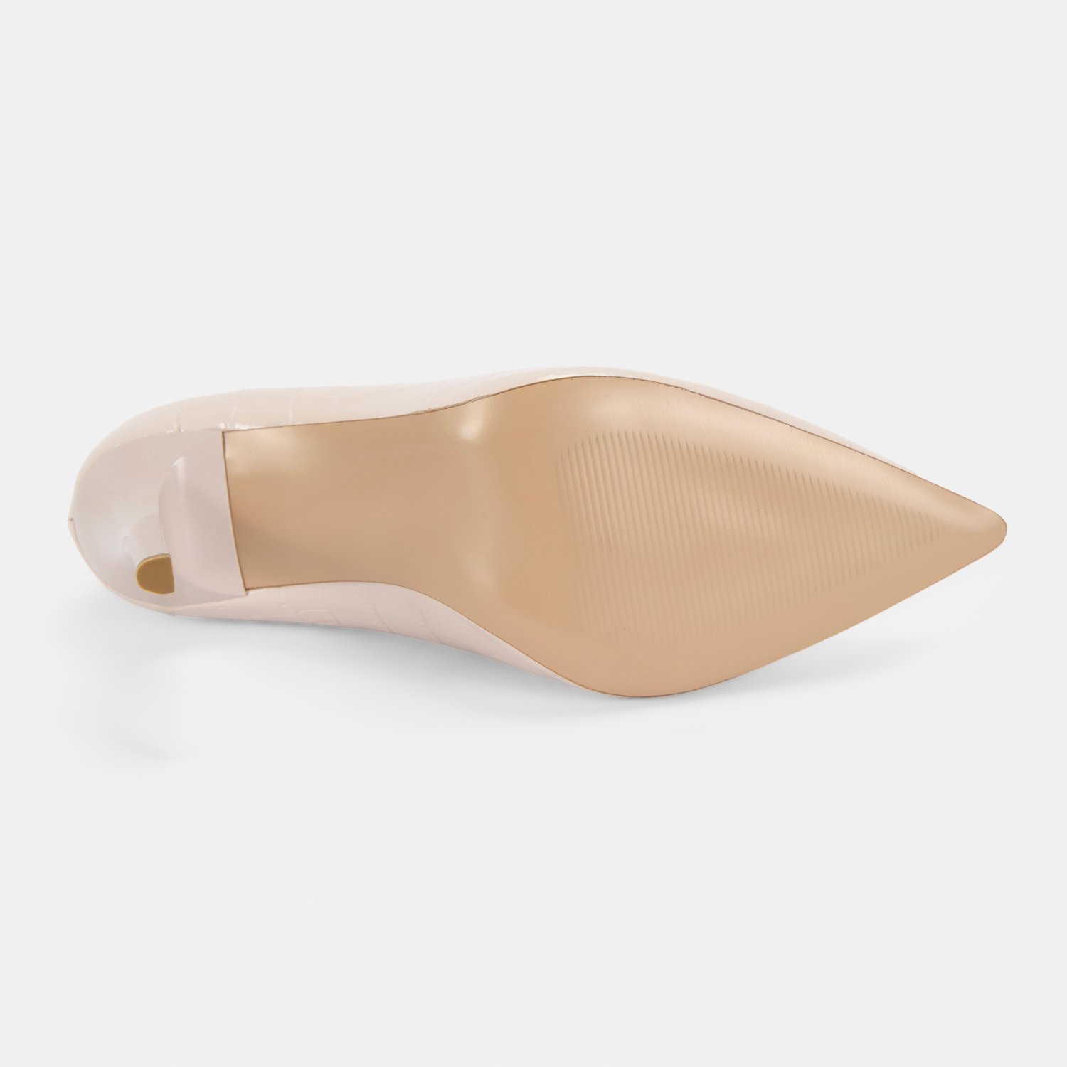 Kadın Krem Kroko Baskılı Deri Klasik Ayakkabı