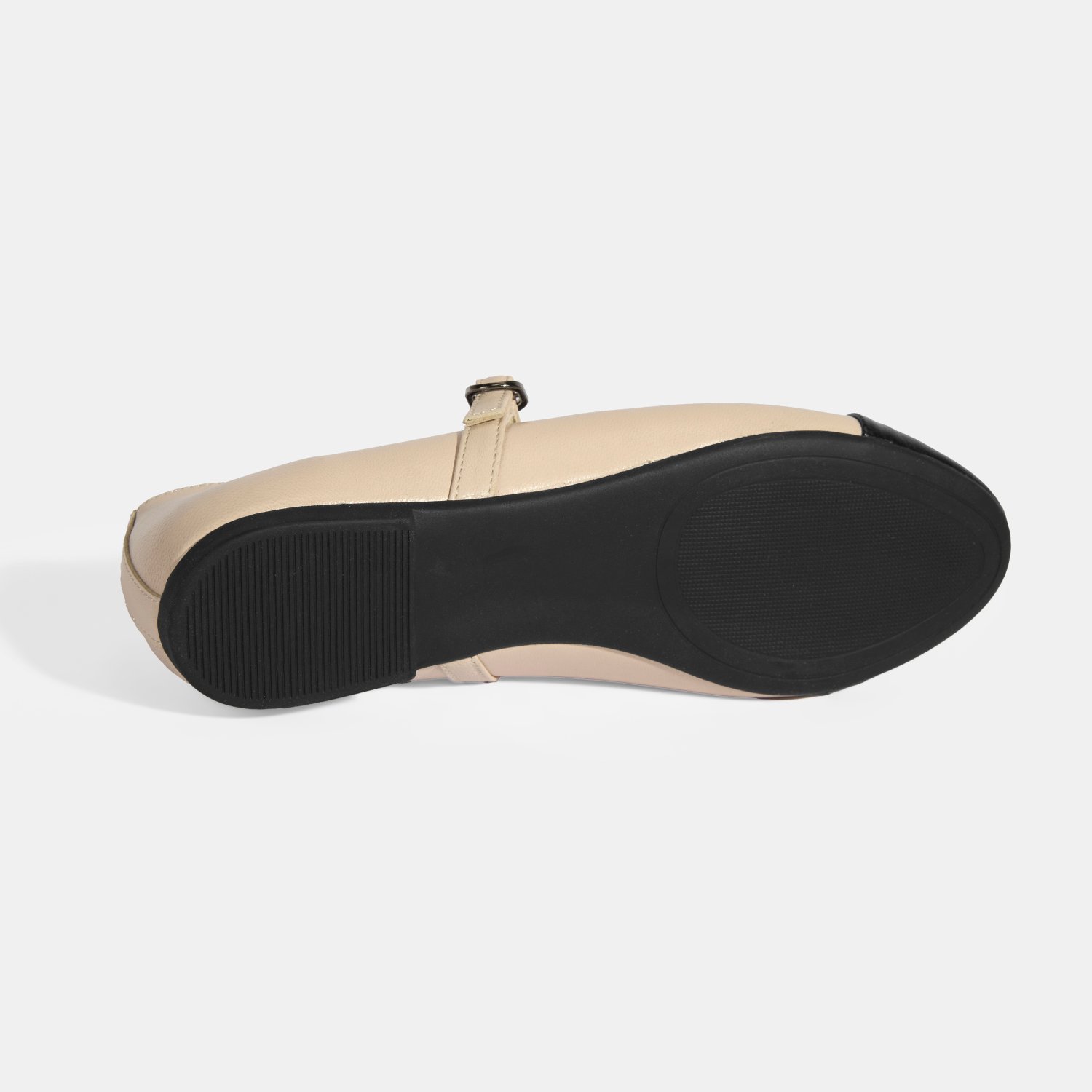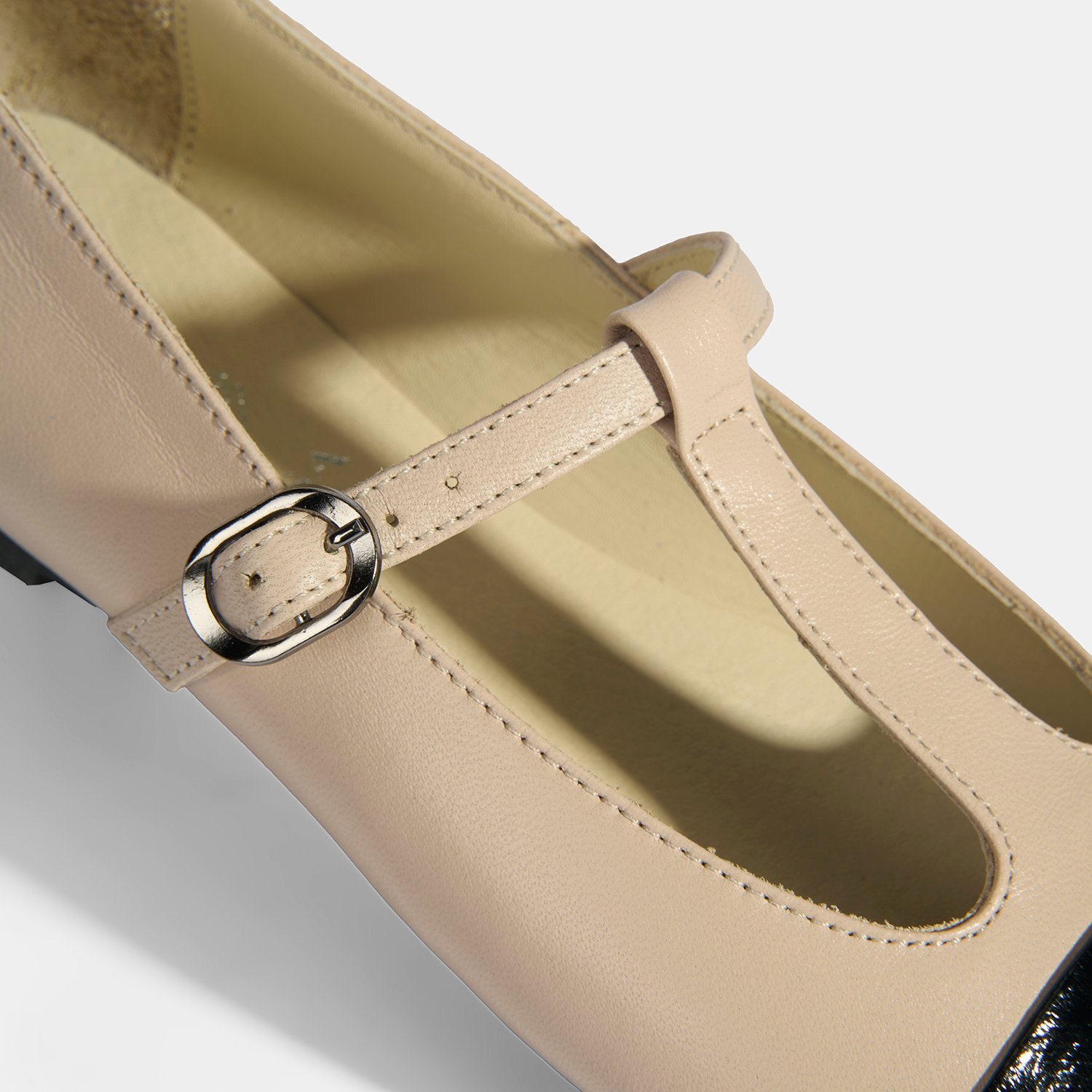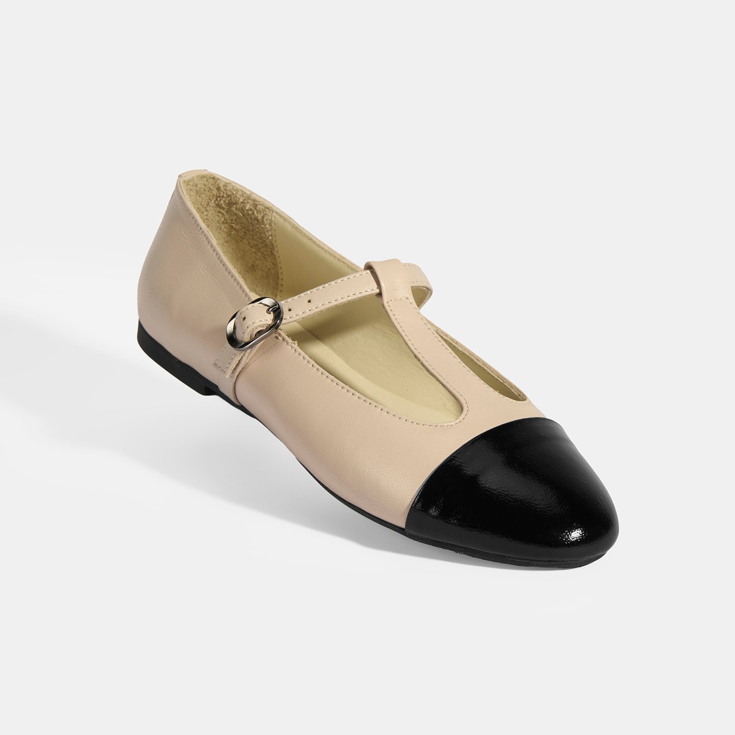 Kadın Krem Rugan T-Bant Mary Jane Babet