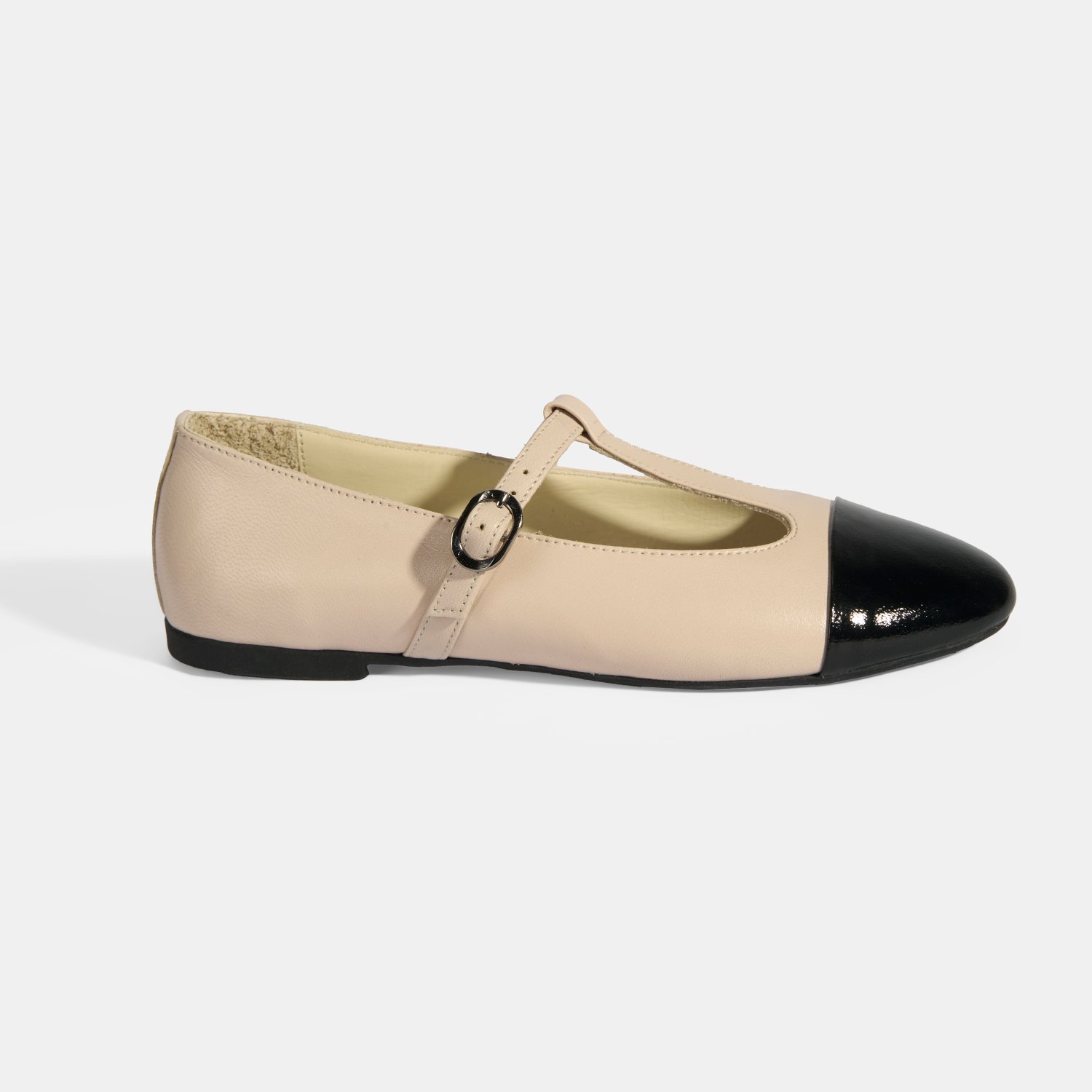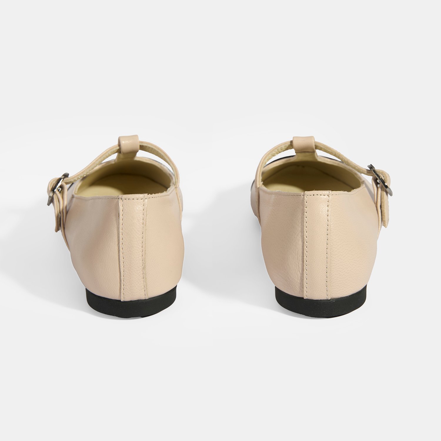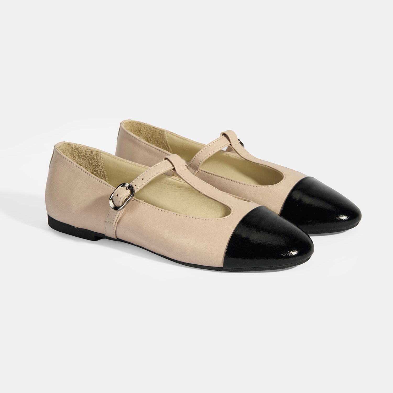 Kadın Krem Rugan T-Bant Mary Jane Babet