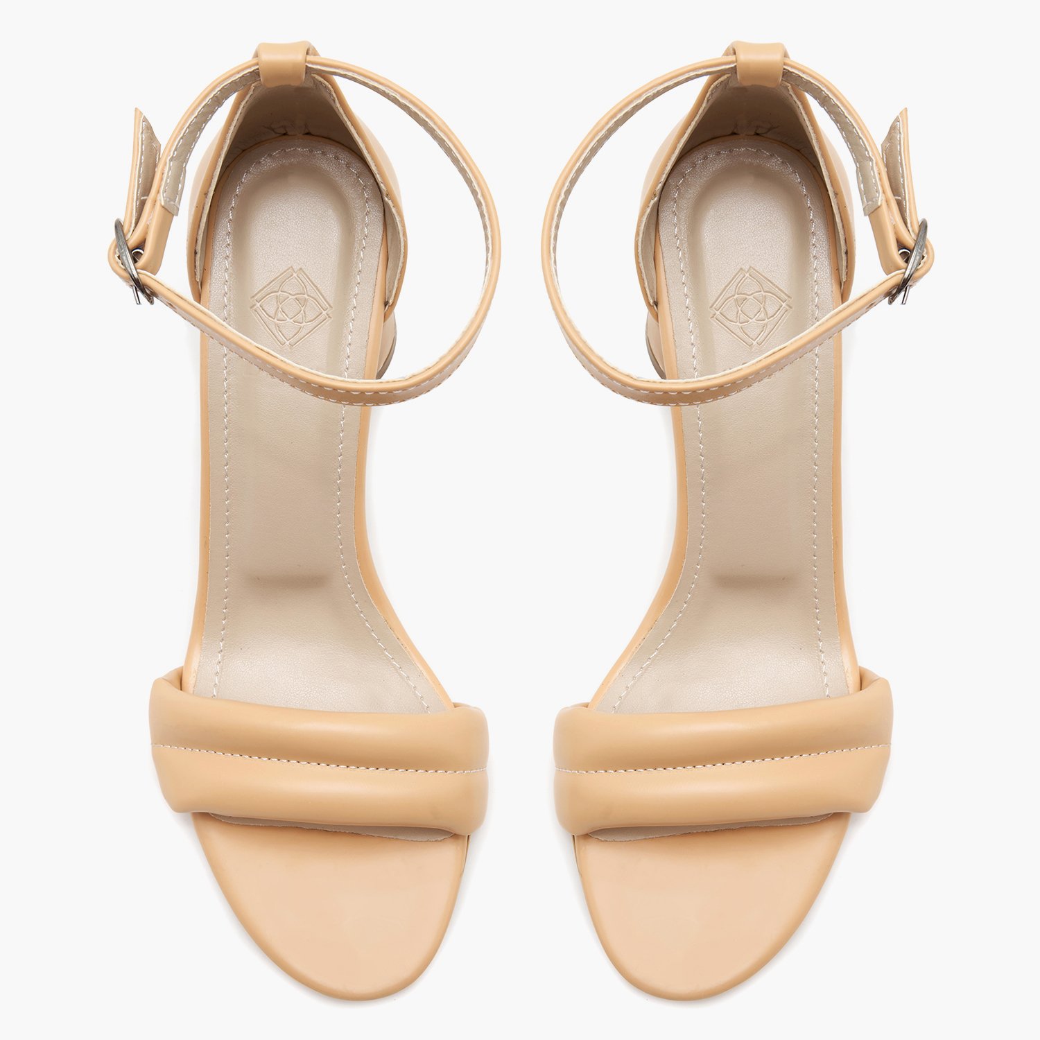 Kapitone detaylı banttan oluşan ,ayarlanabilir metal aksesuarlı,neolit tabanlı ,pu materyalden üretilmiş, kadın sandalet.