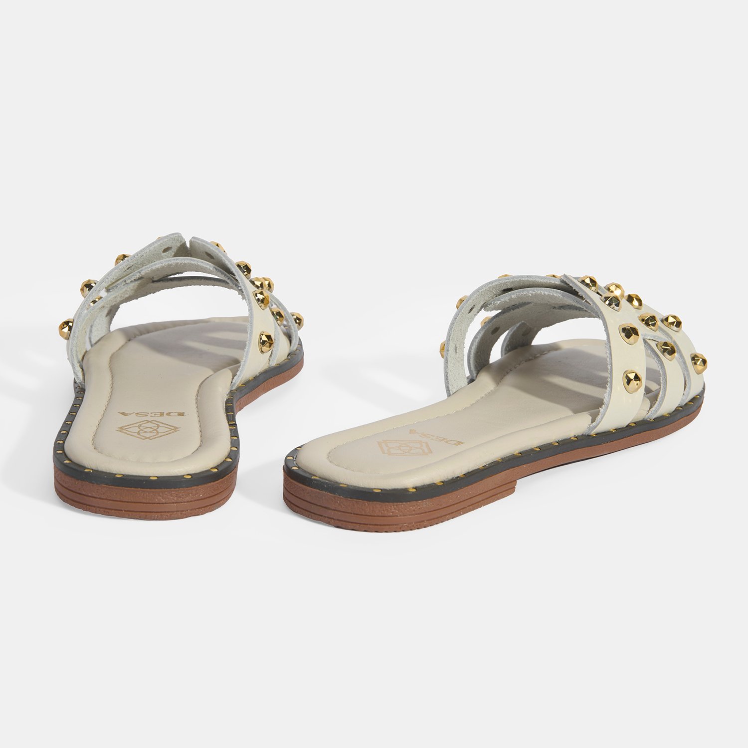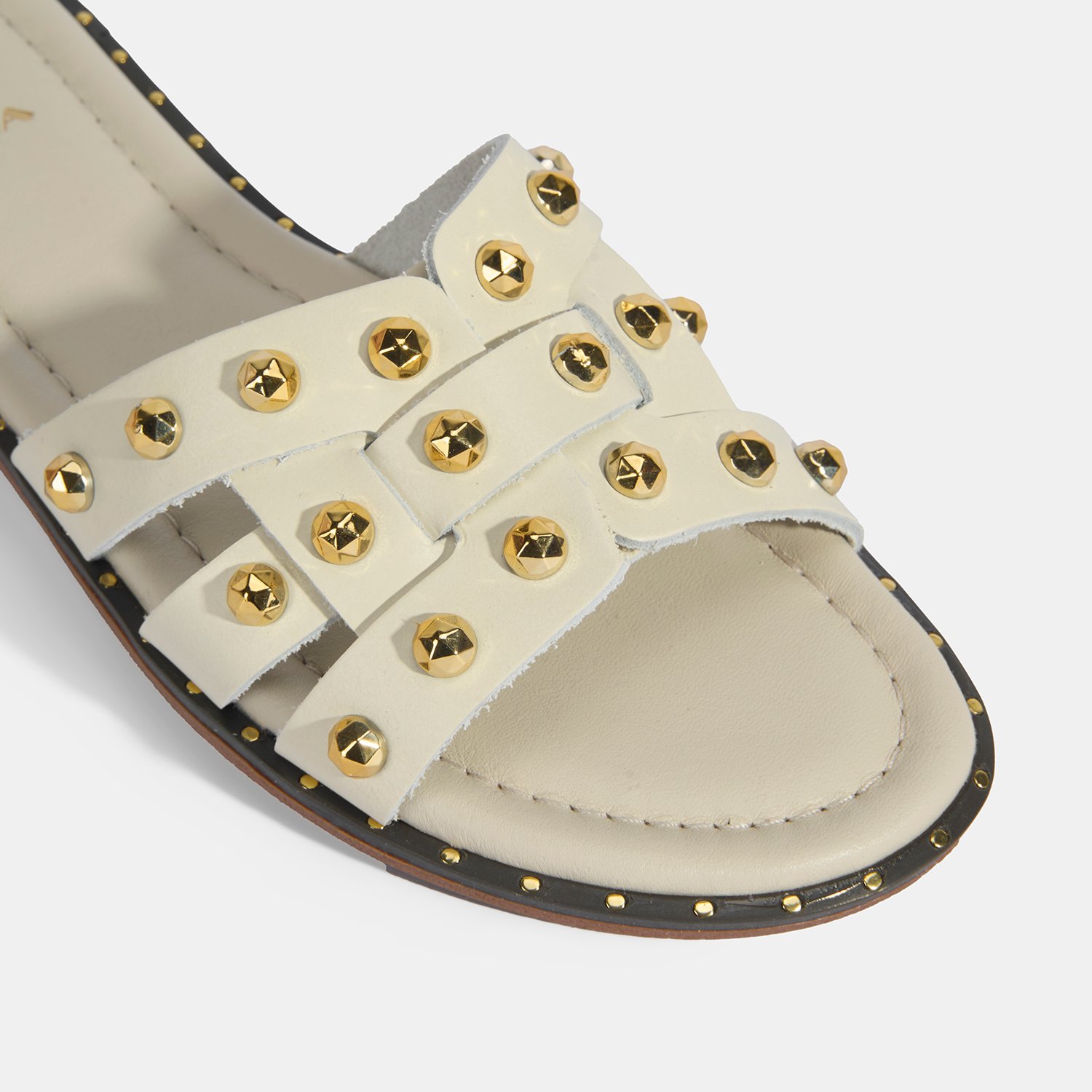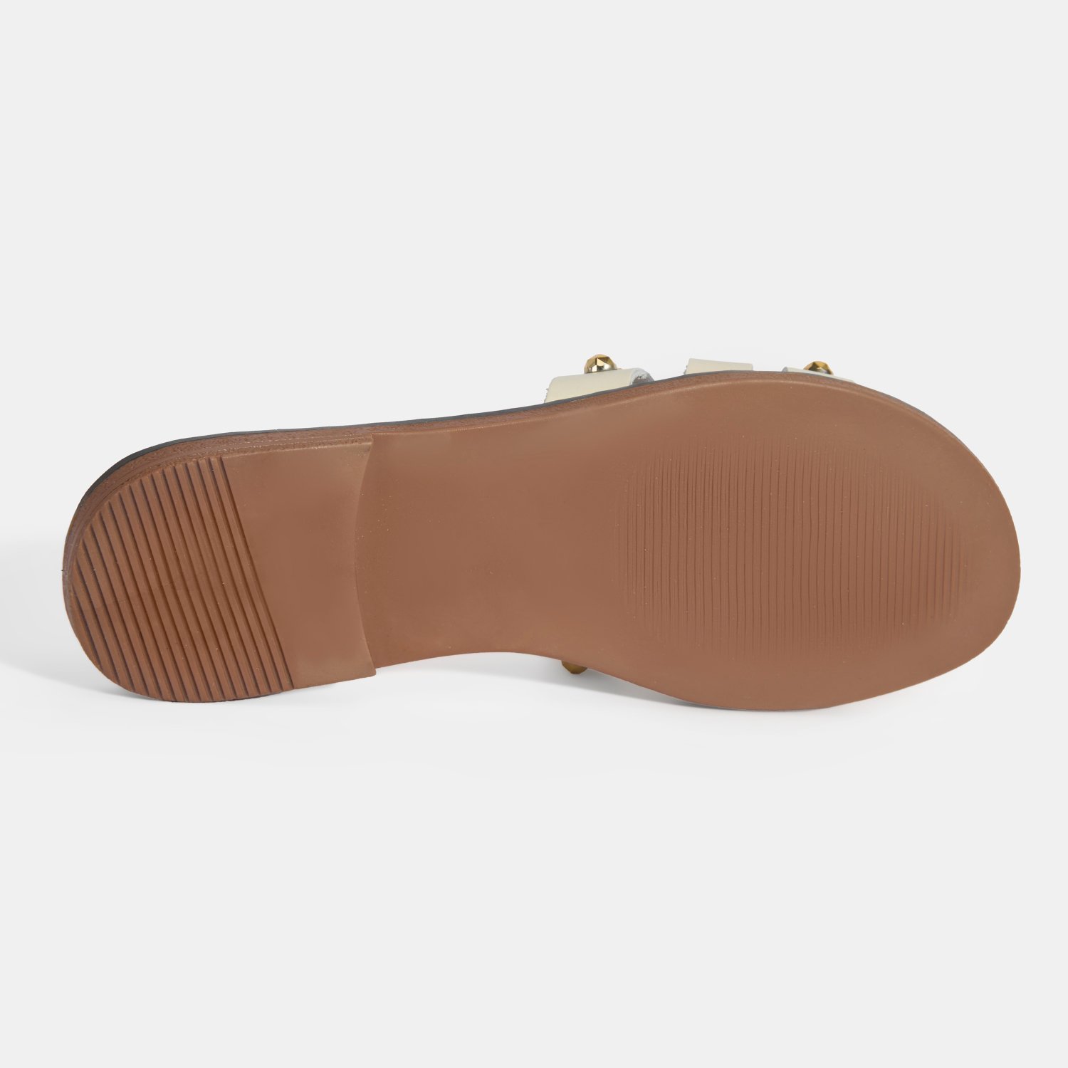 Kadın Krem Zımba Detaylı Deri Terlik