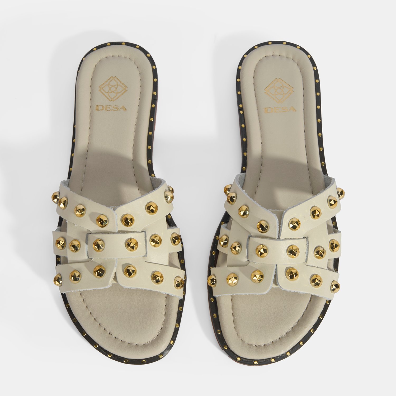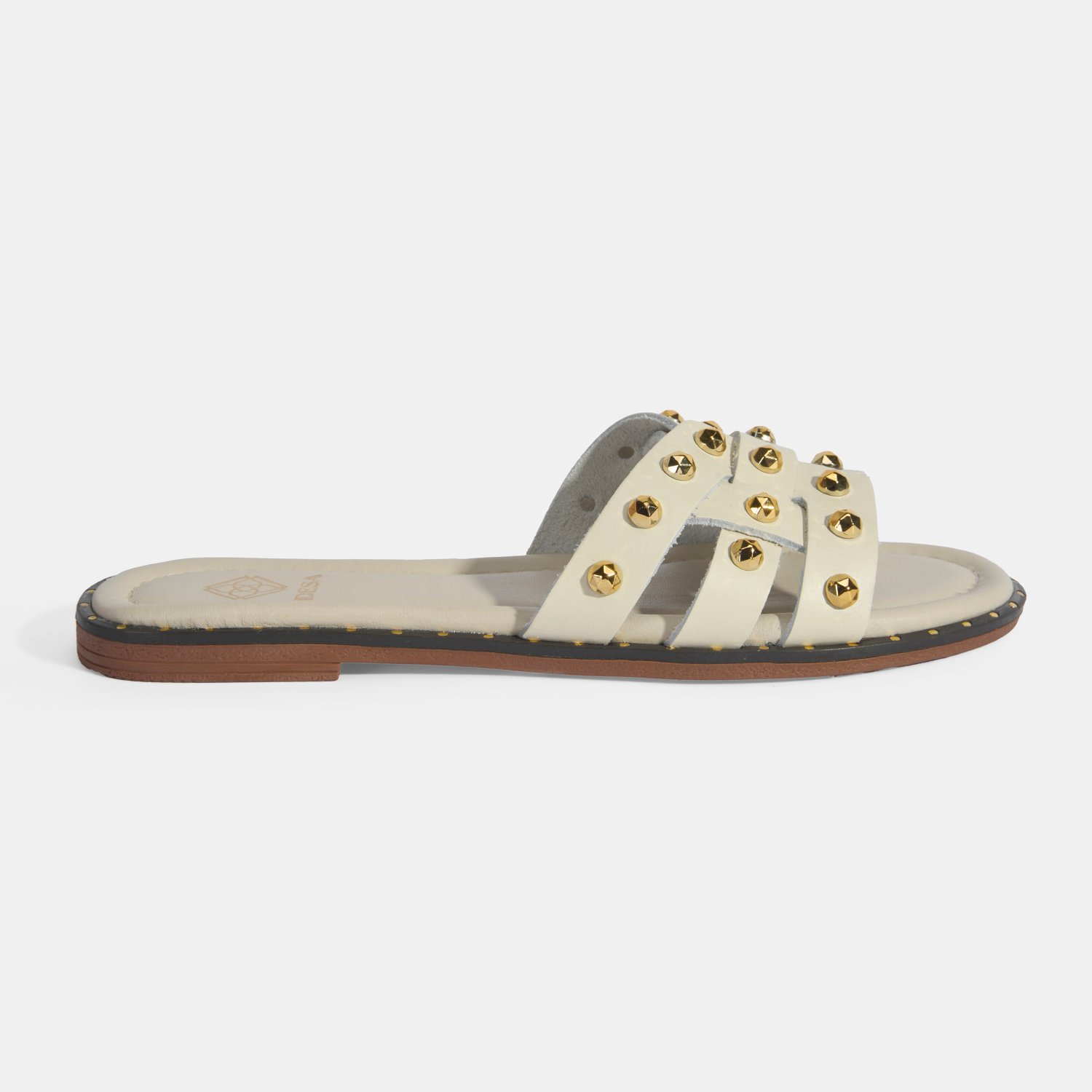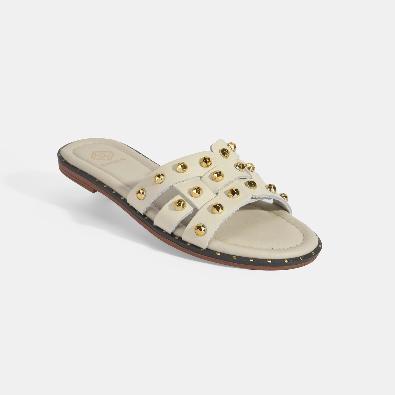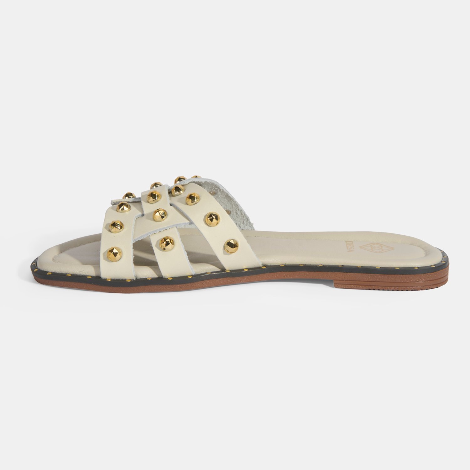 Kadın Krem Zımba Detaylı Deri Terlik