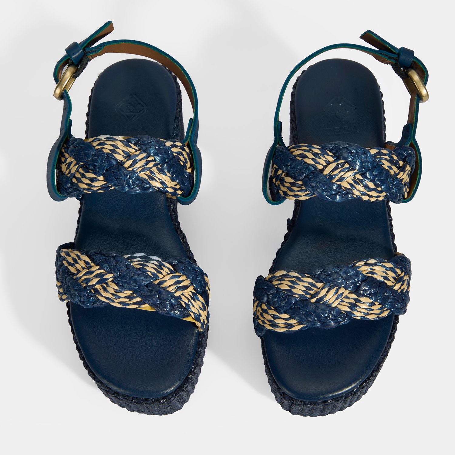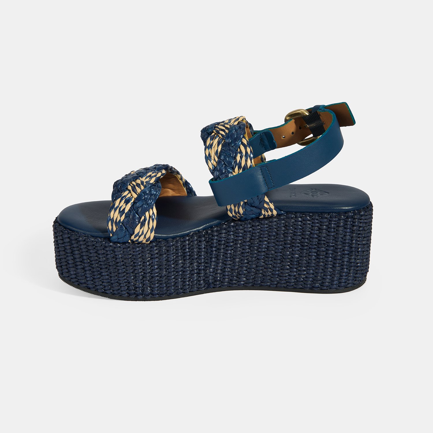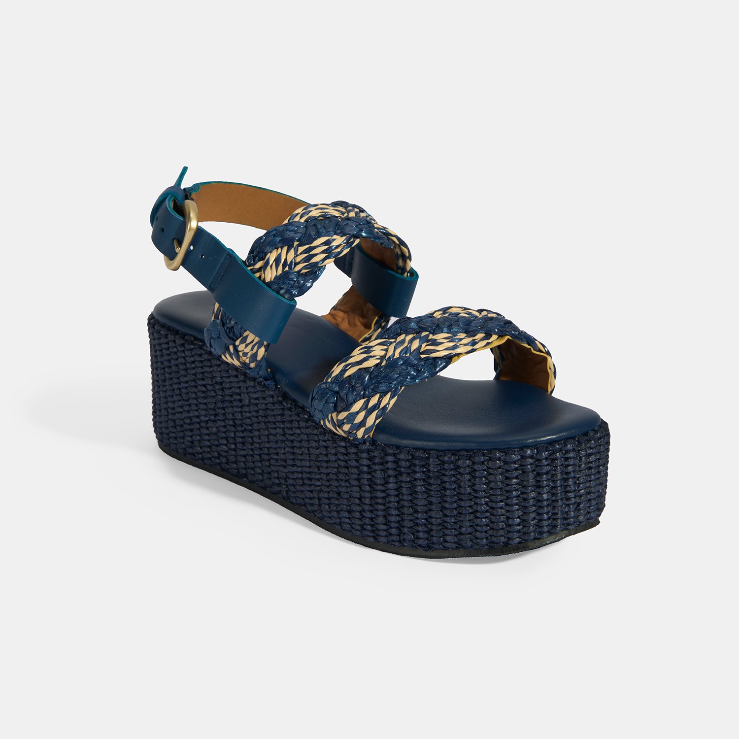 Kadın Lacivert Ayarlanabilir Tokalı Hasır Detaylı Sandalet