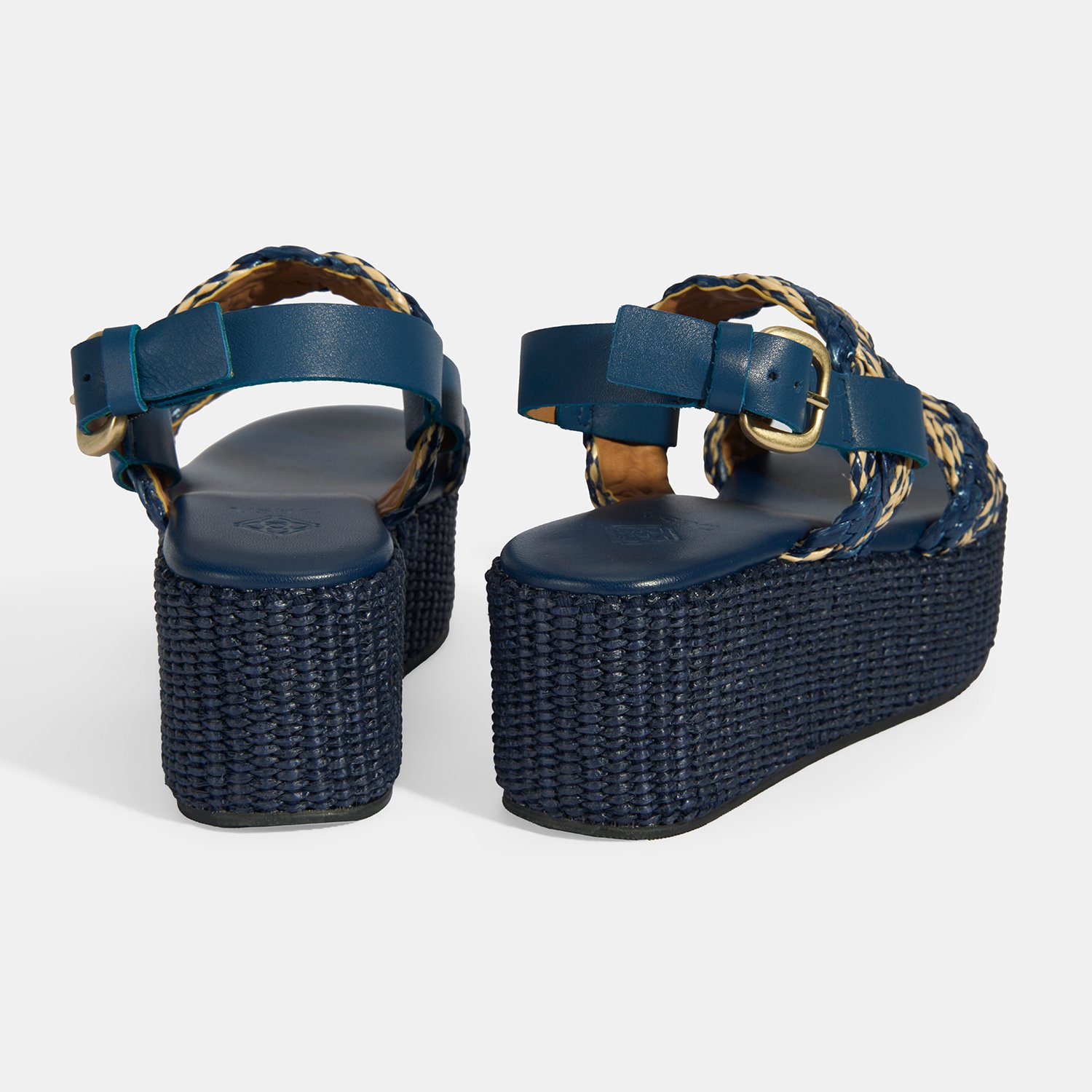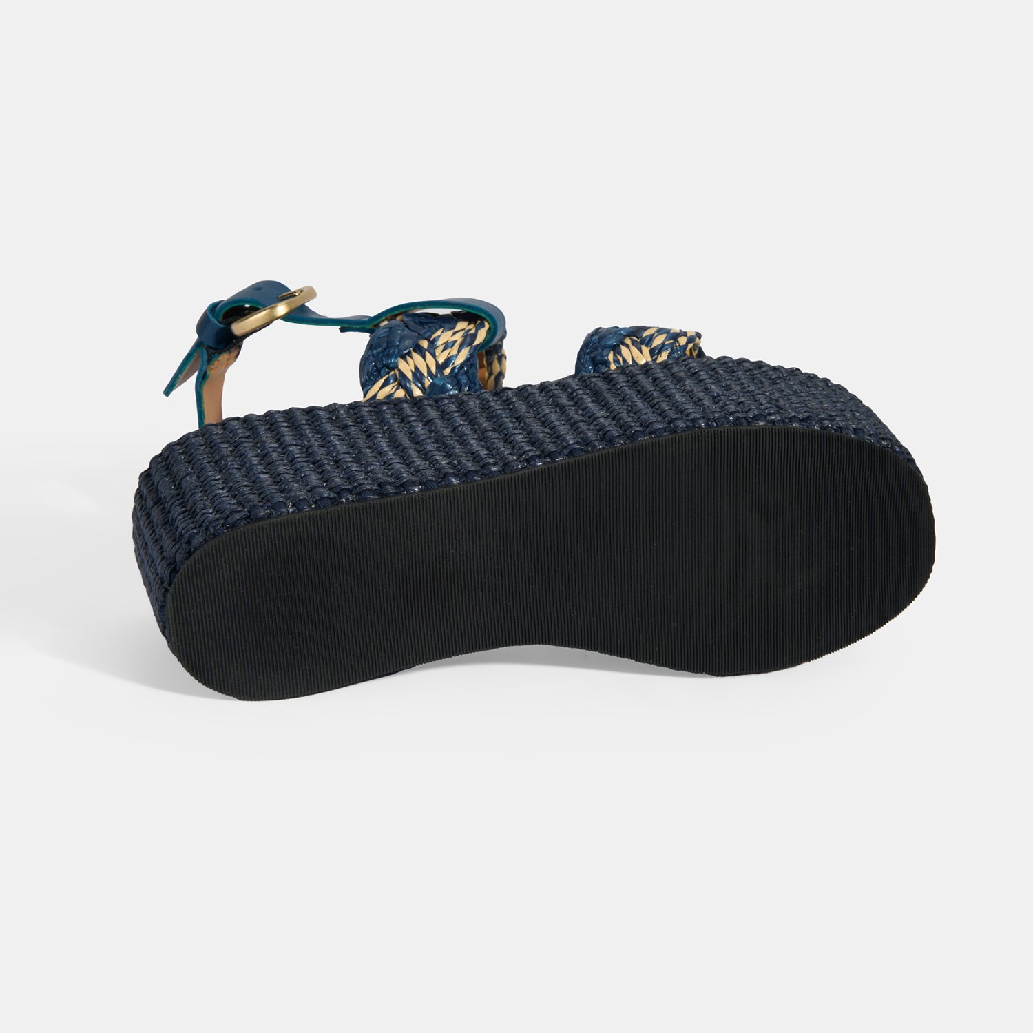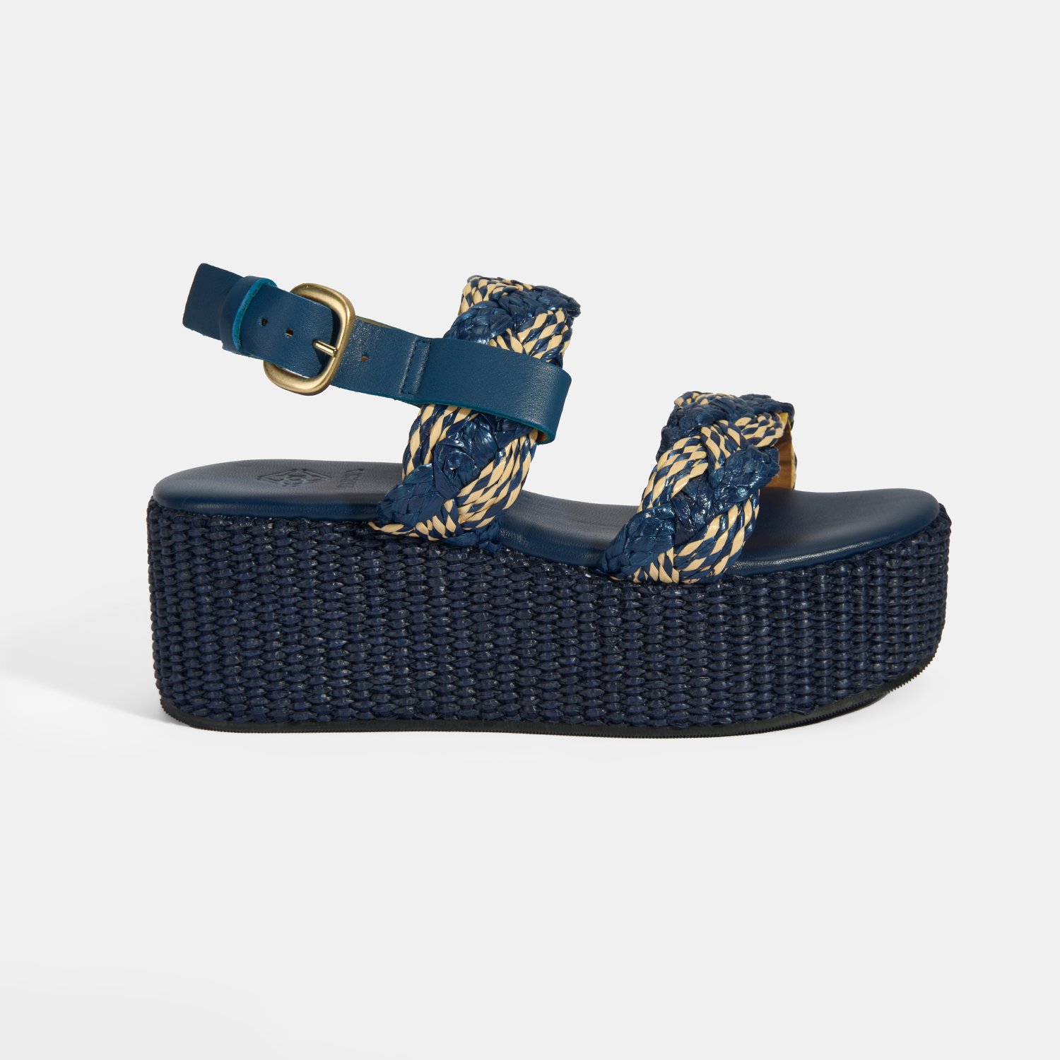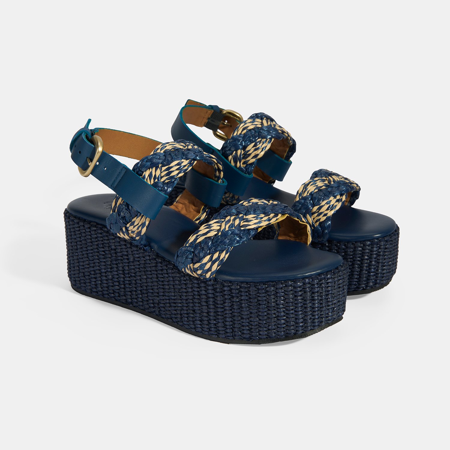 Kadın Lacivert Ayarlanabilir Tokalı Hasır Detaylı Sandalet
