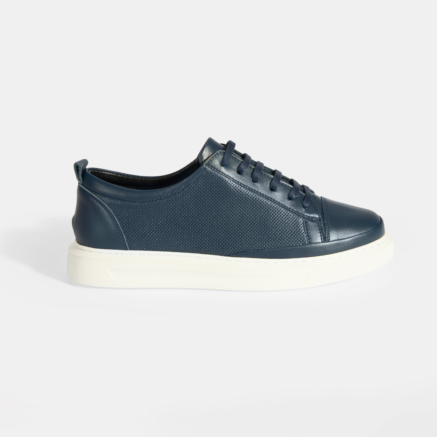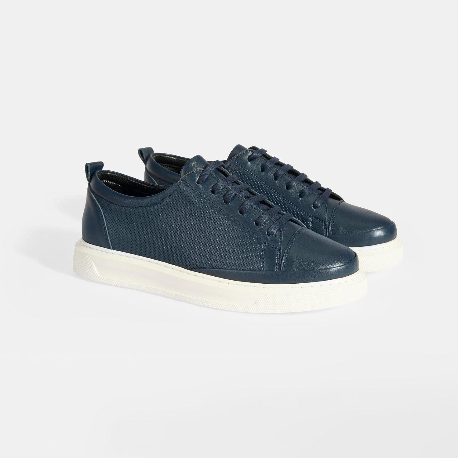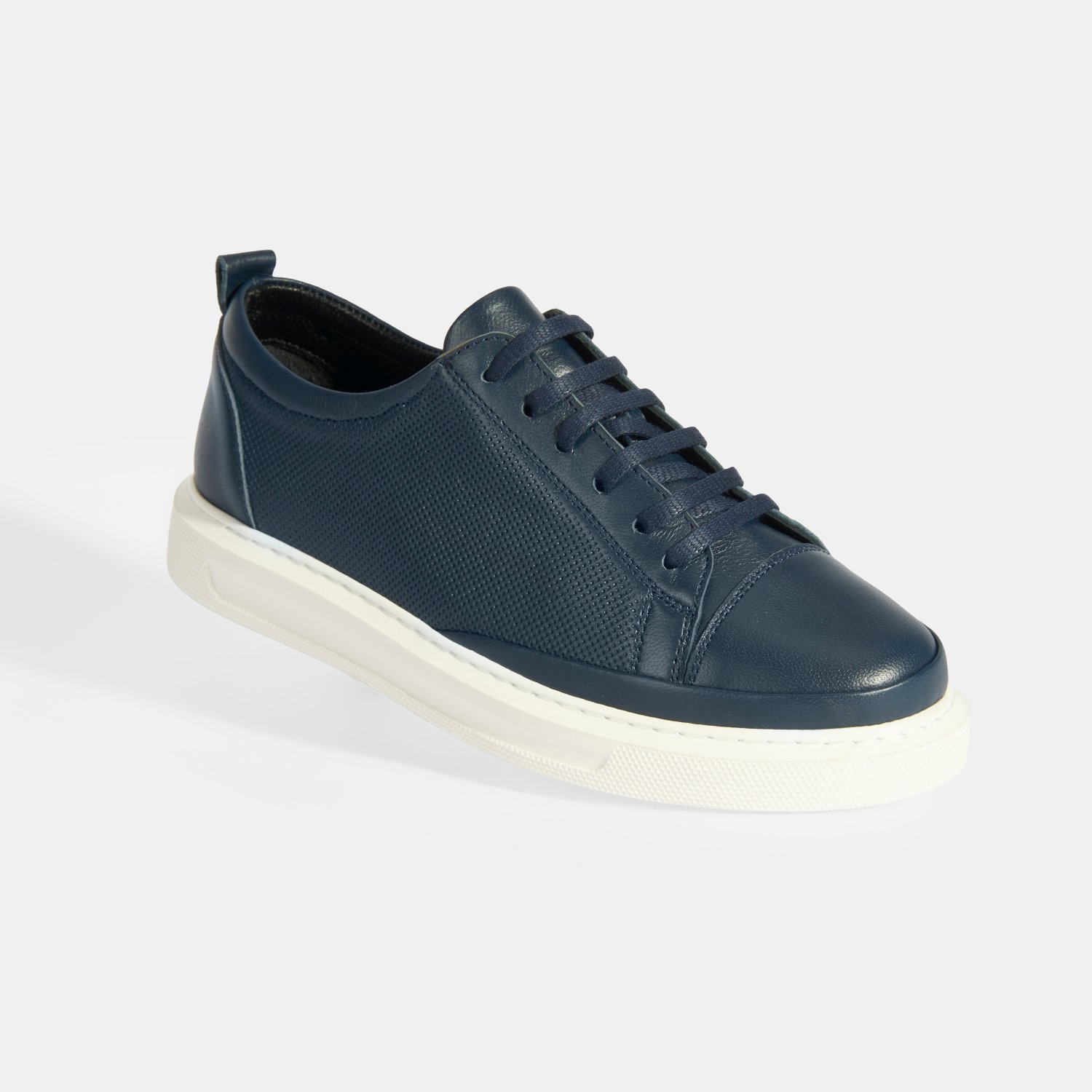 Kadın Lacivert Deri Bağcıklı Spor Ayakkabı