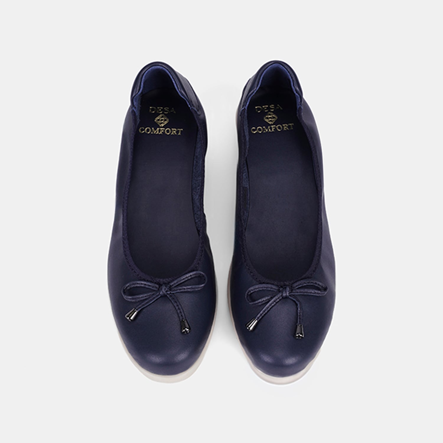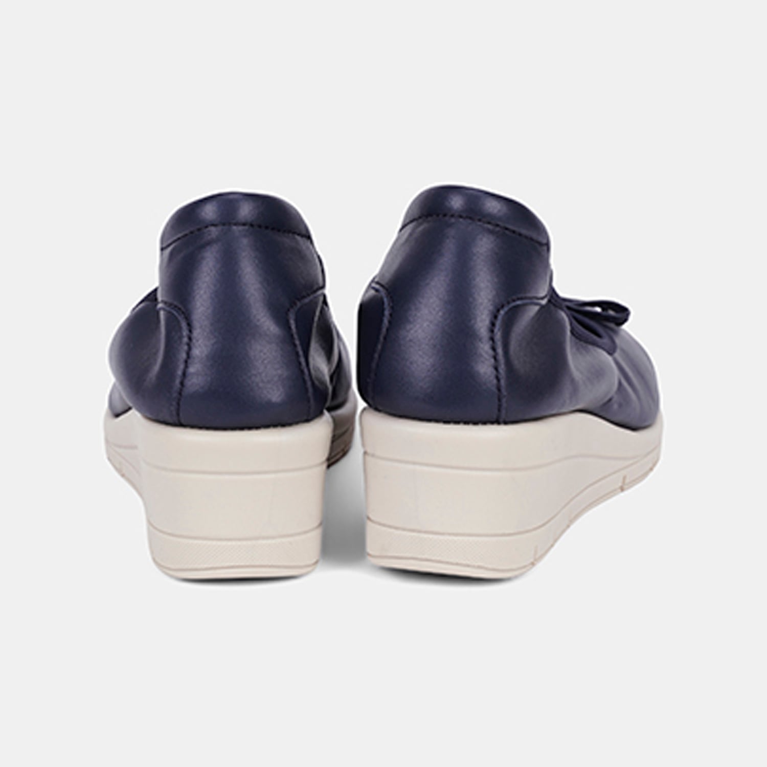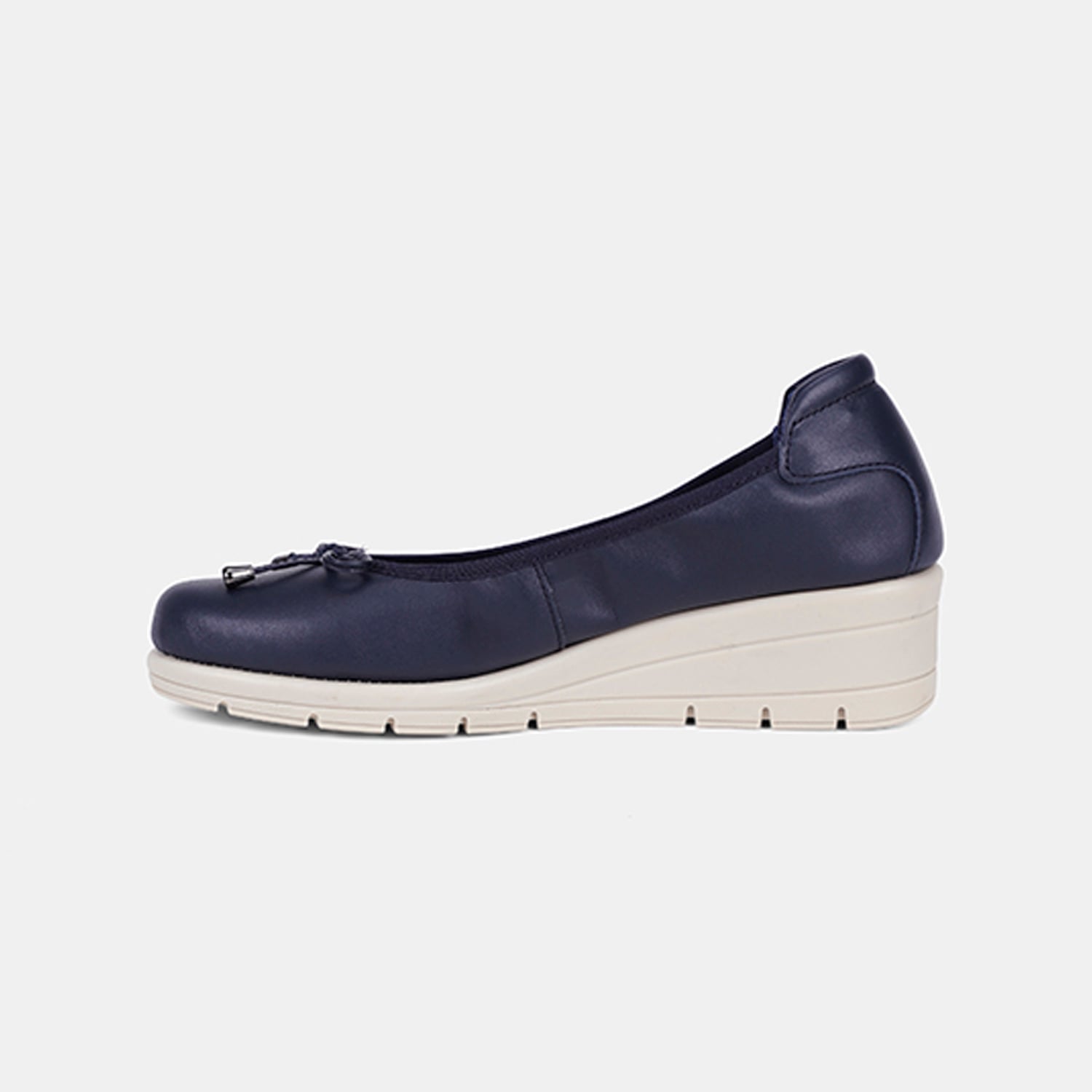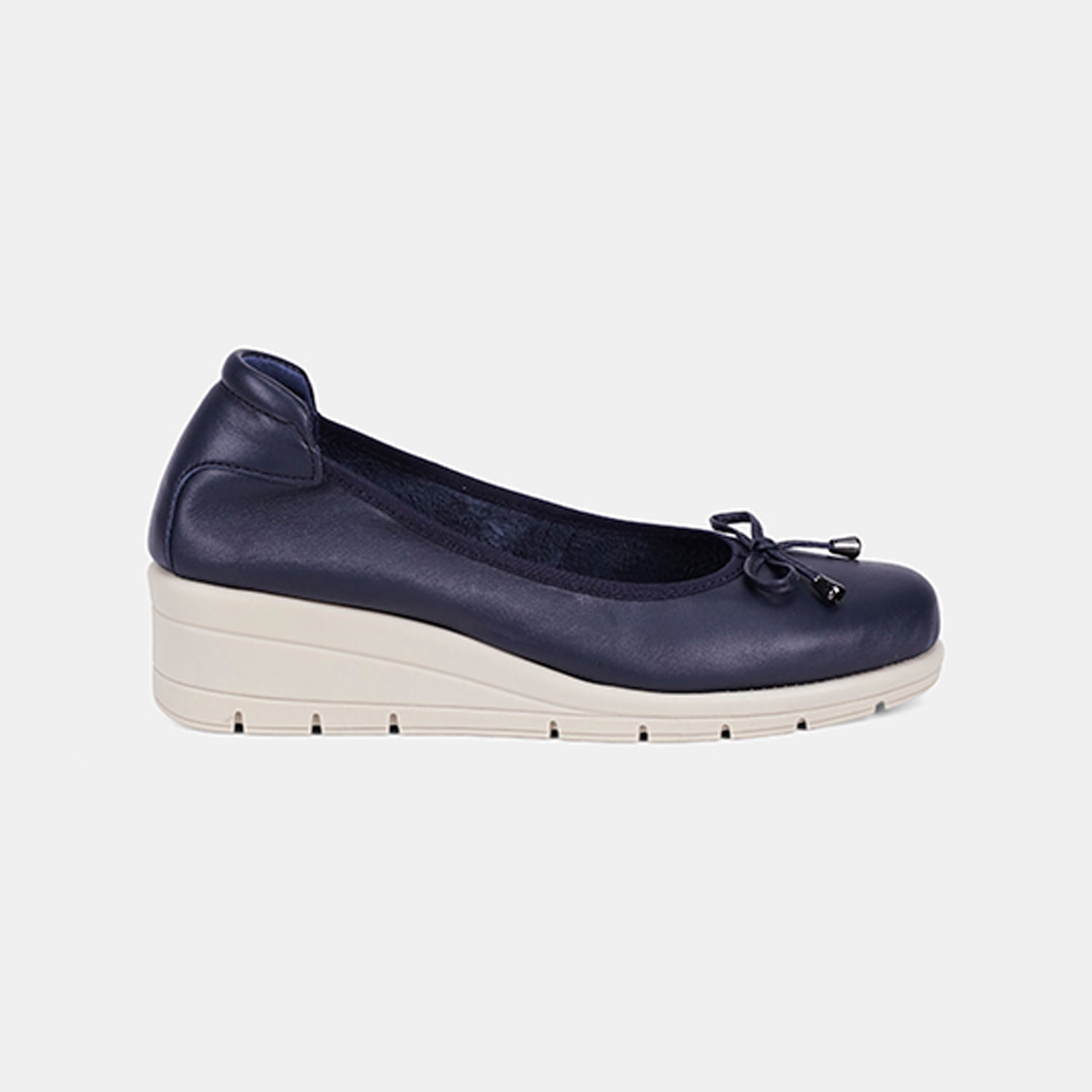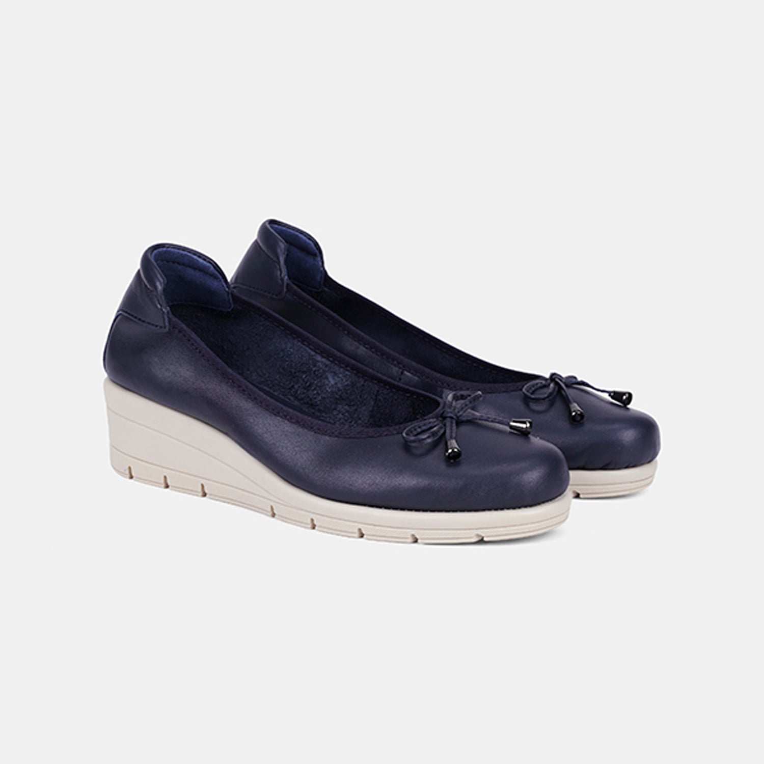 Kadın Lacivert DesaComfort Fiyonklu Dolgu Topuklu Deri Babet