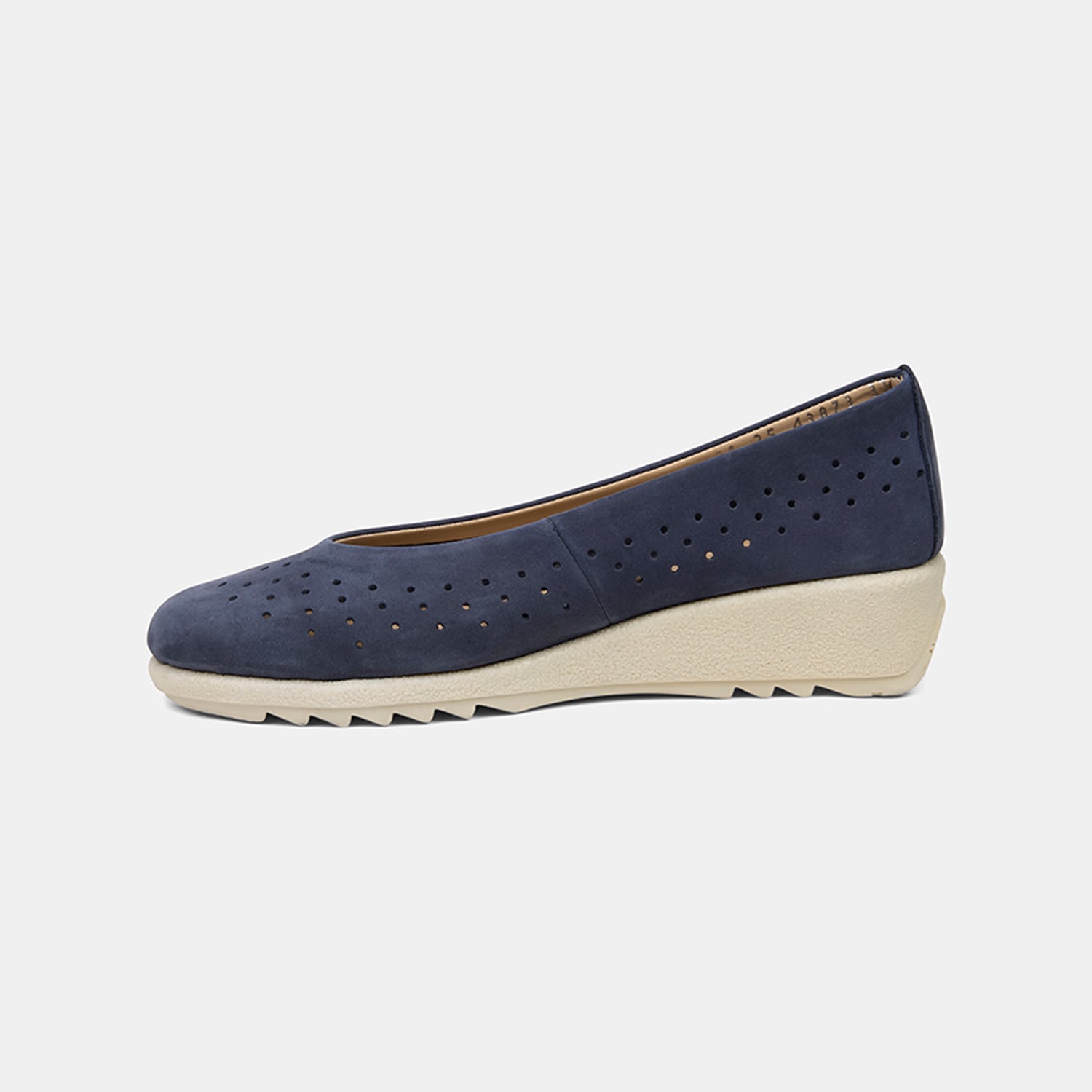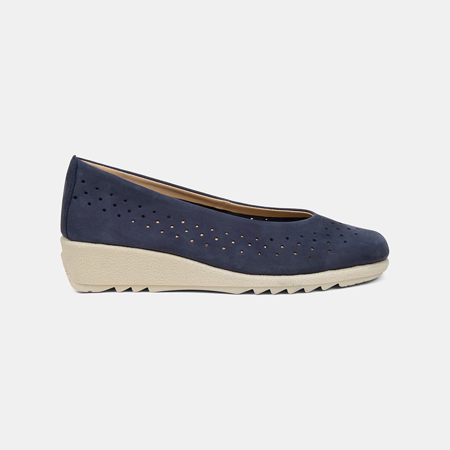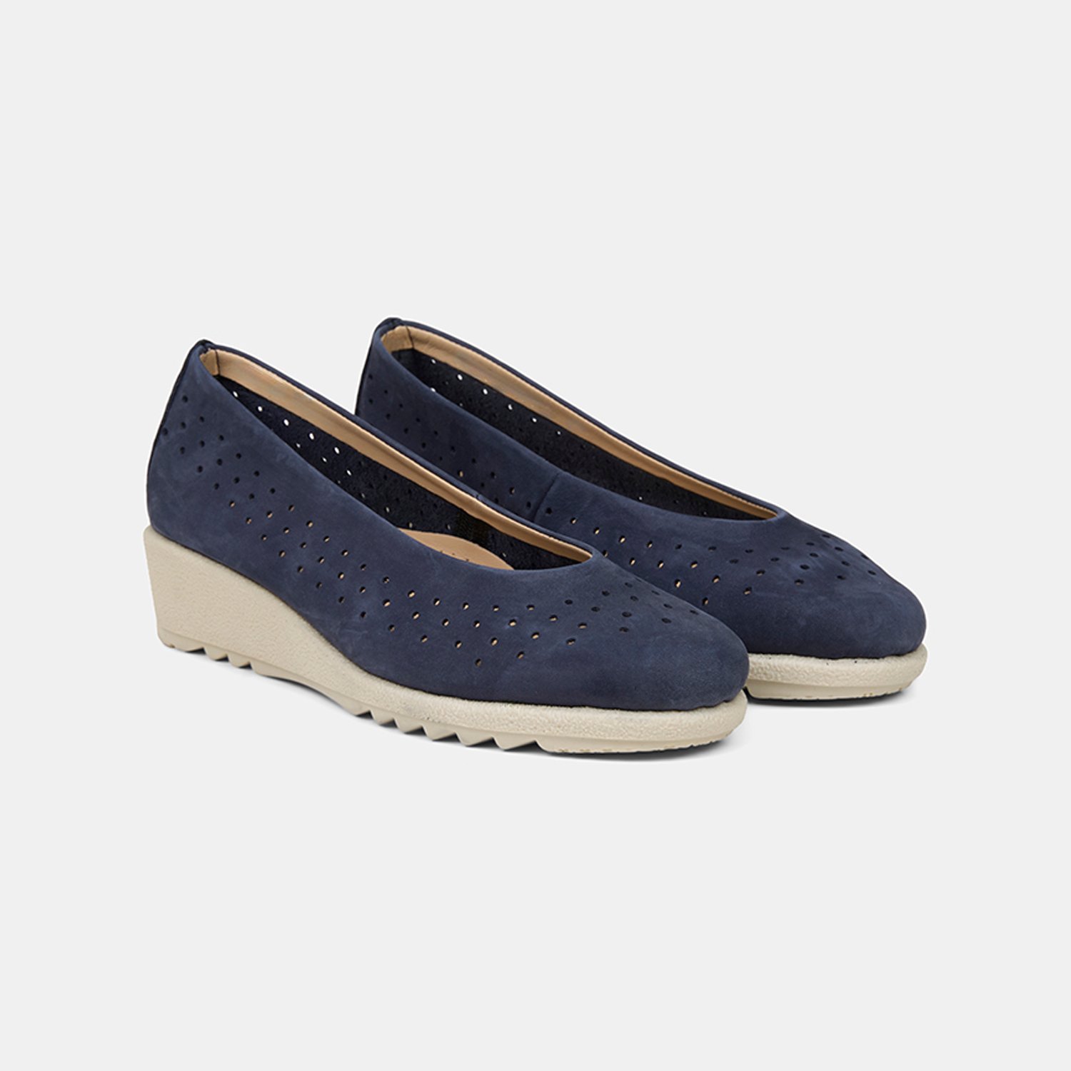Kadın Lacivert DesaComfort Perforeli Dolgu Topuklu Nubuk Deri Ayakkabı