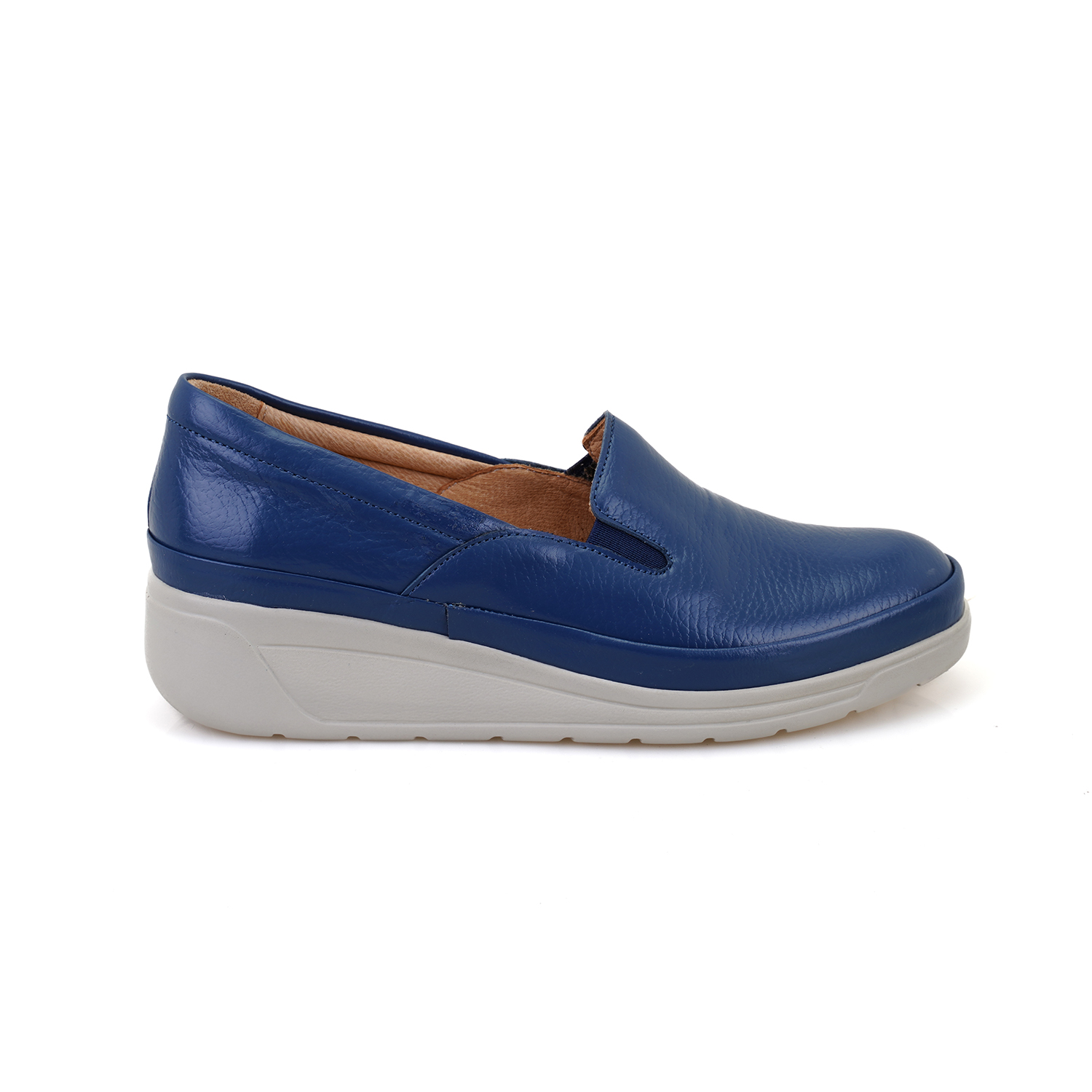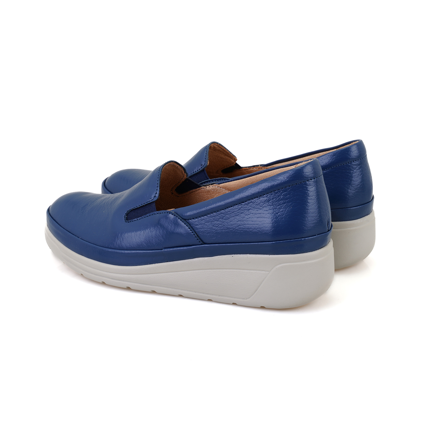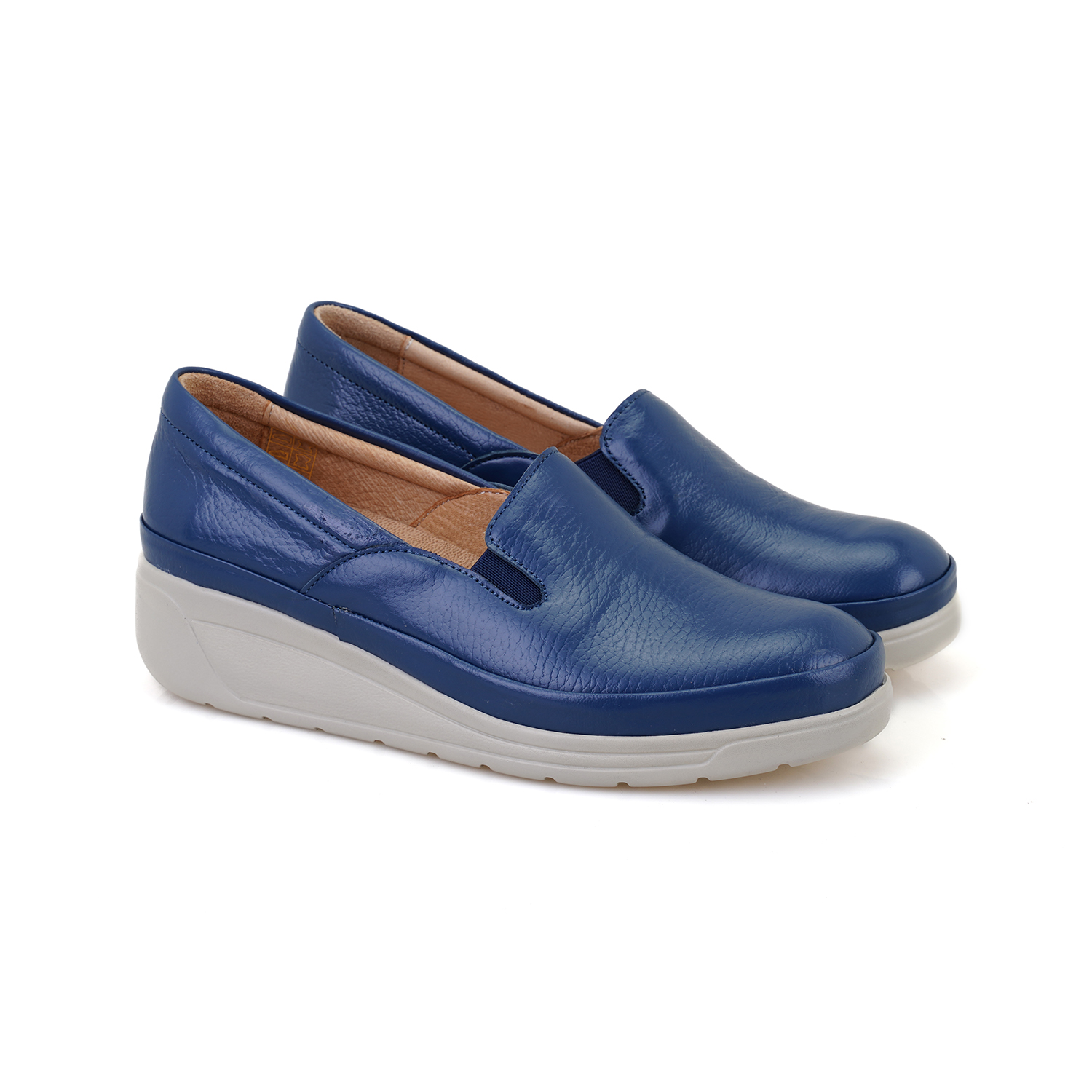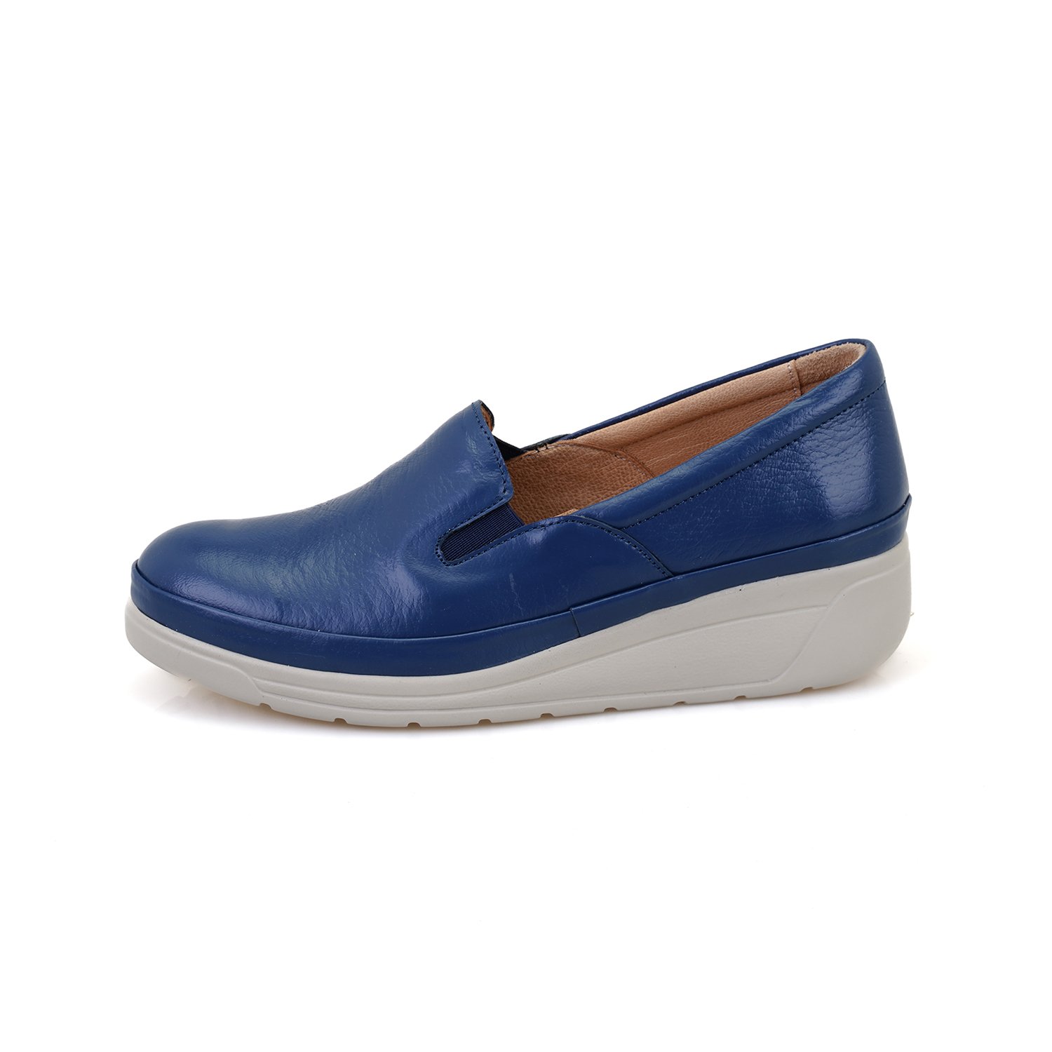 %100 deri, mostra deri, poli taban, kadın dolgu topuklu DesaComfort günlük ayakkabı.