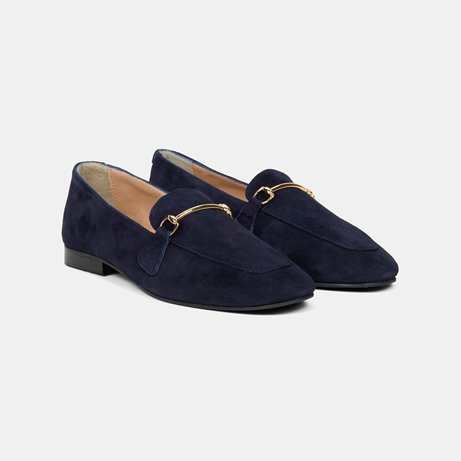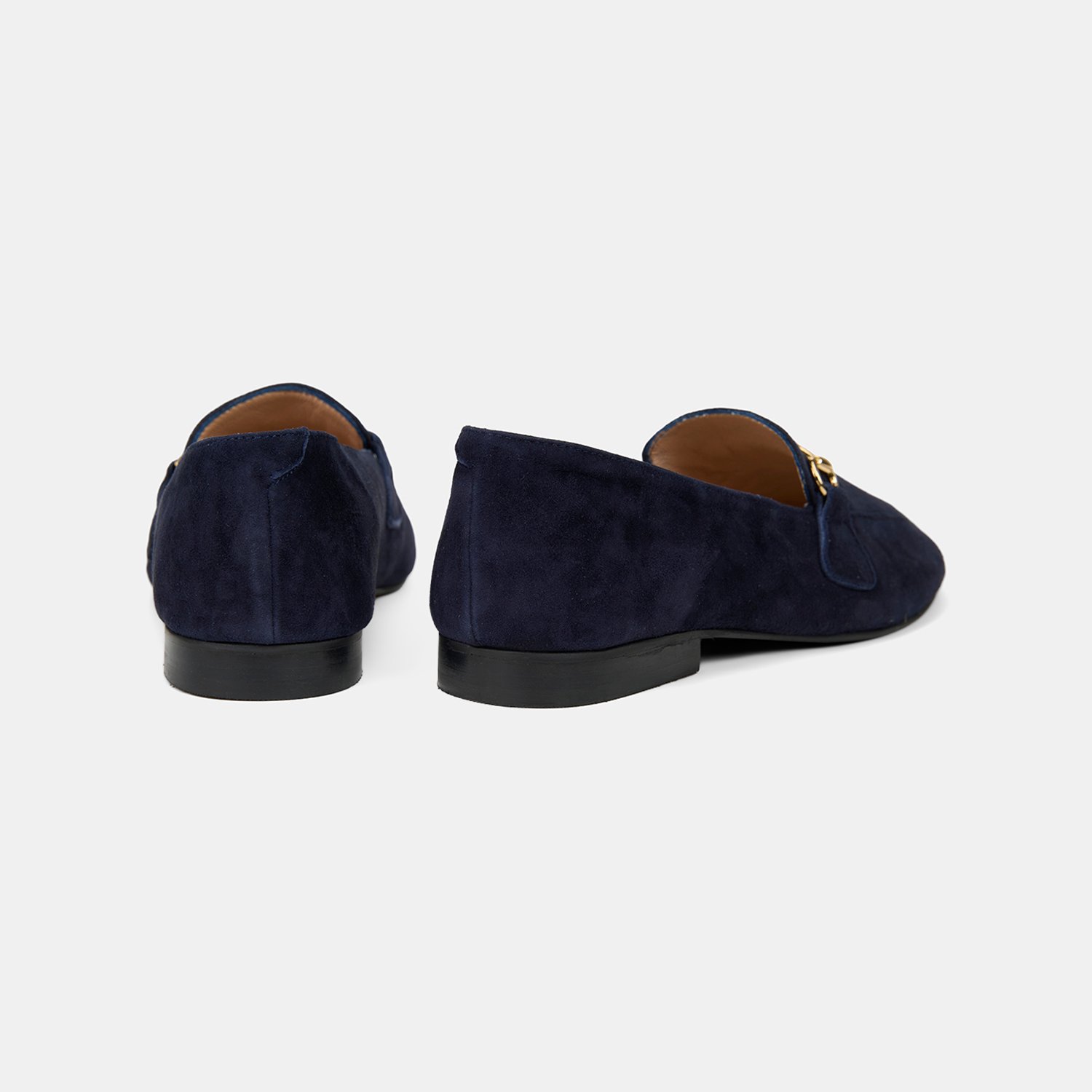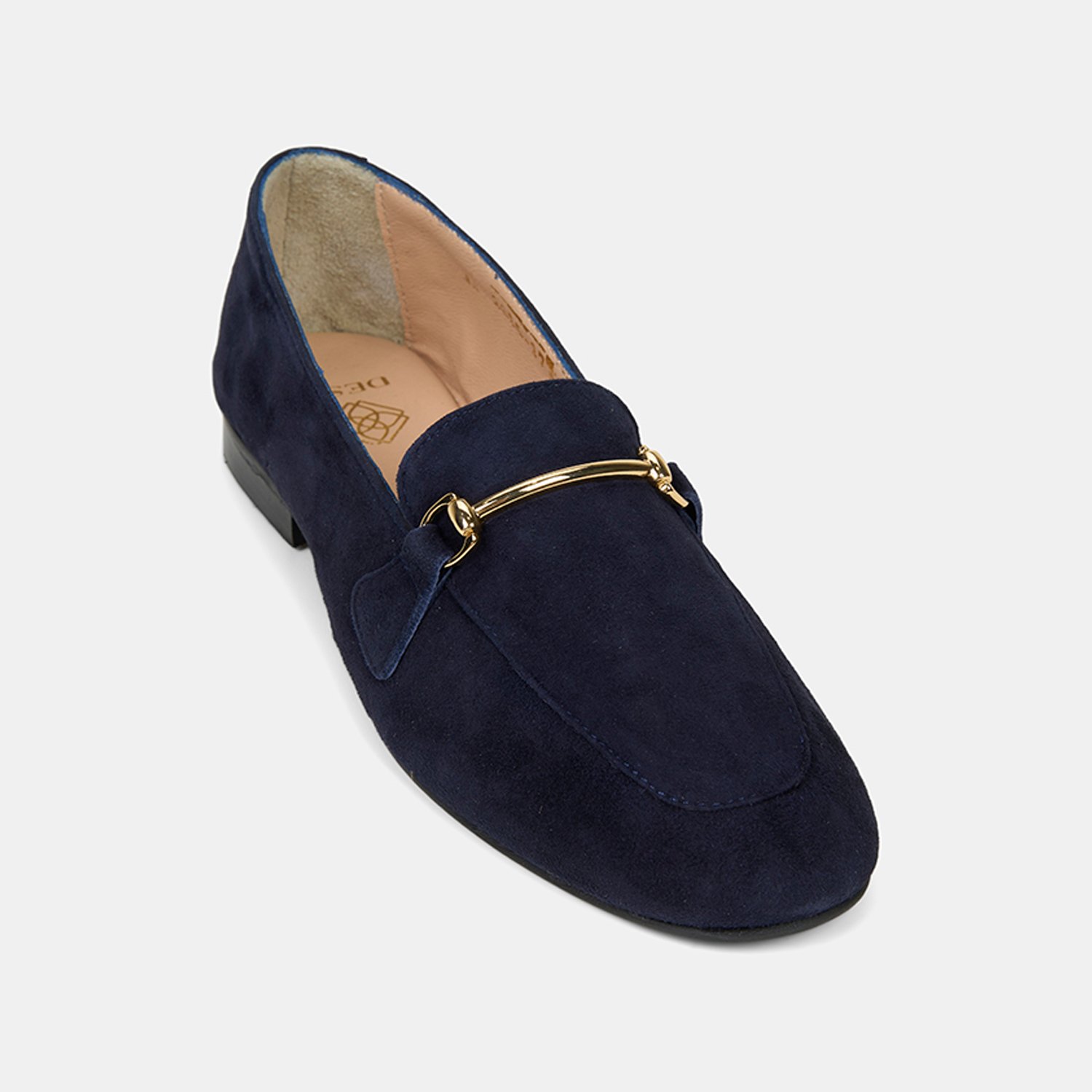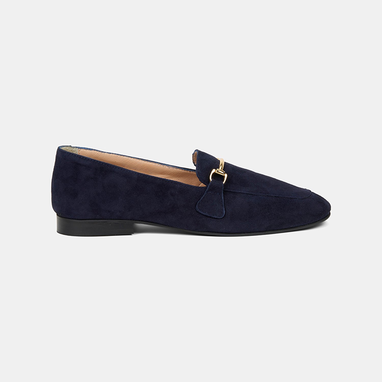 Kadın Lacivert Metal Gold Tokalı Süet Deri Loafer