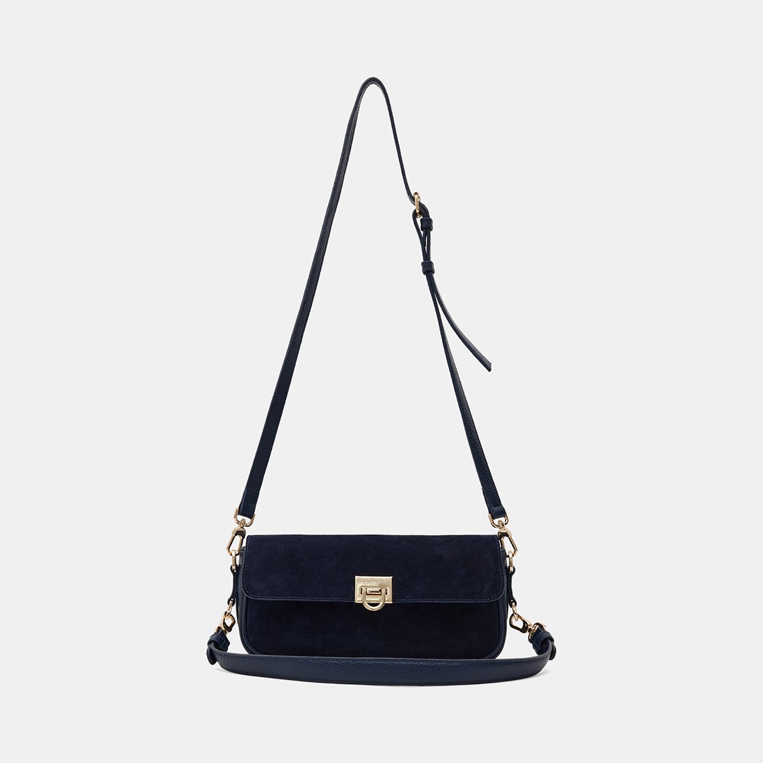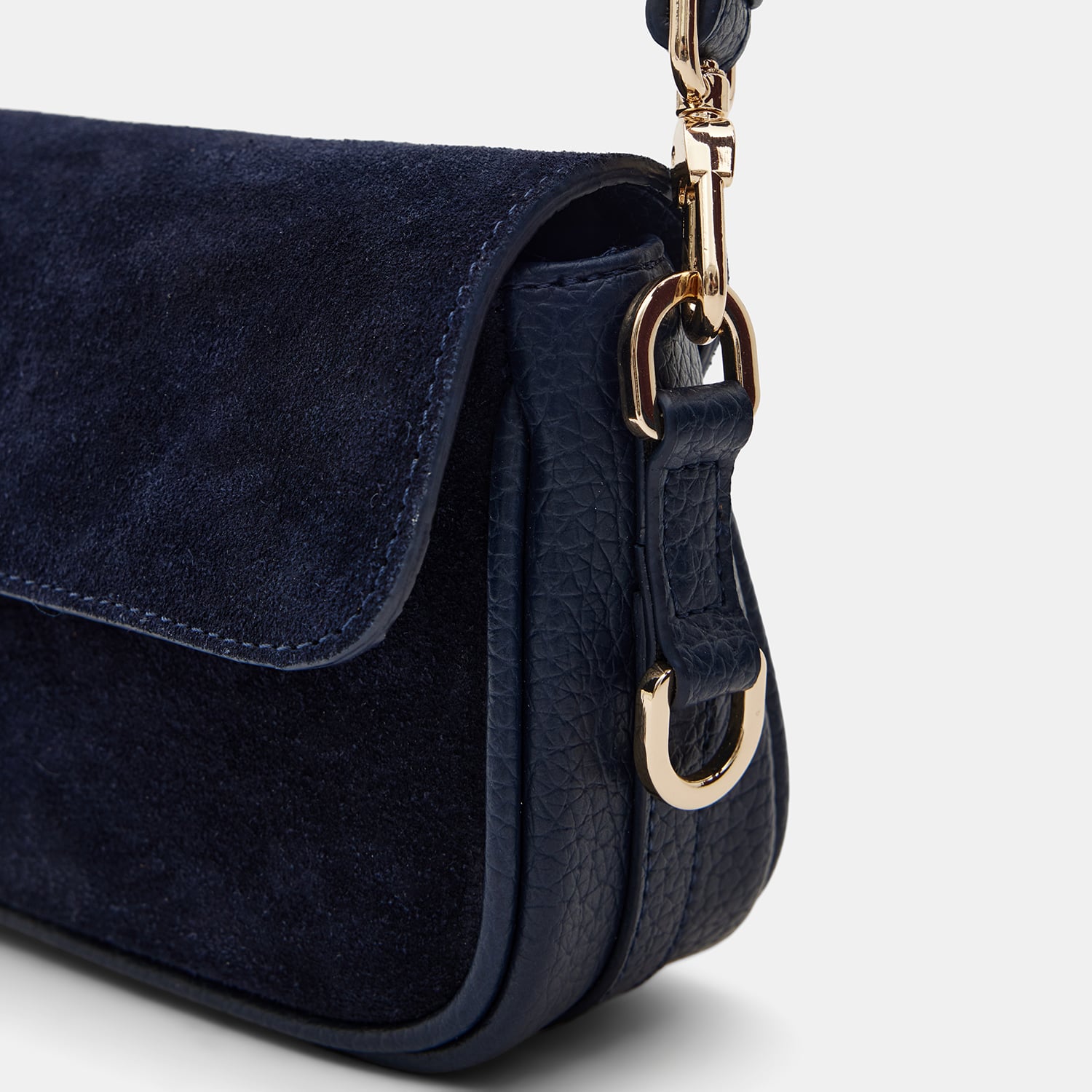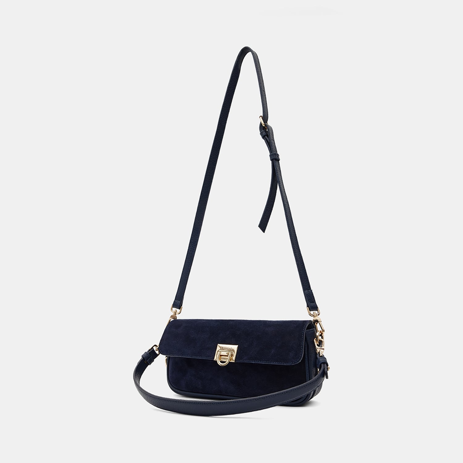 Dana süet dokusuyla sofistike bir görünüm sunarken, ayarlanabilir askısı sayesinde omuzda veya çapraz taşınabilir.