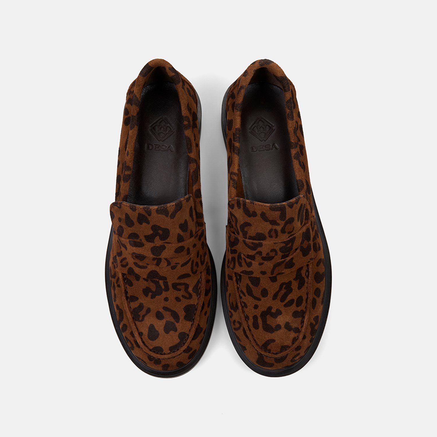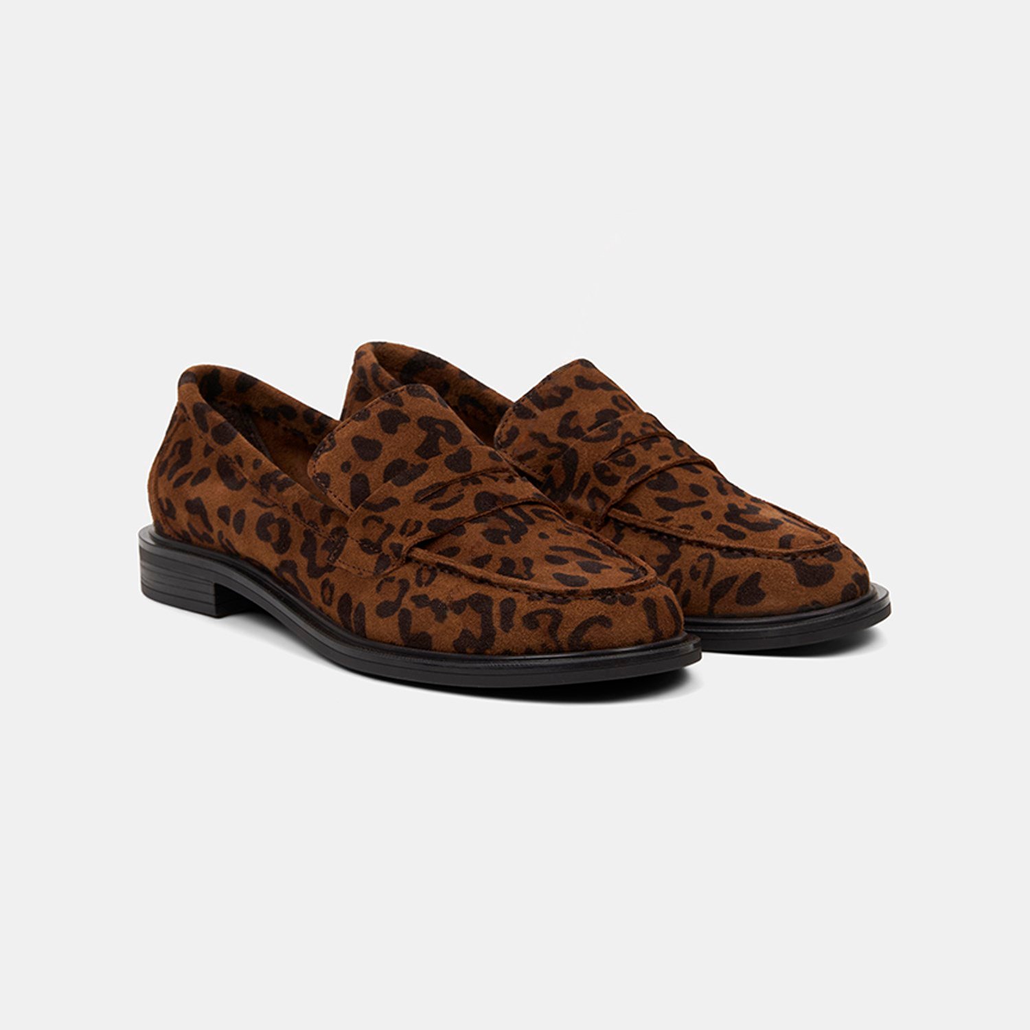 Kadın Leopar Desenli Yuvarlak Burun Süet Deri Loafer