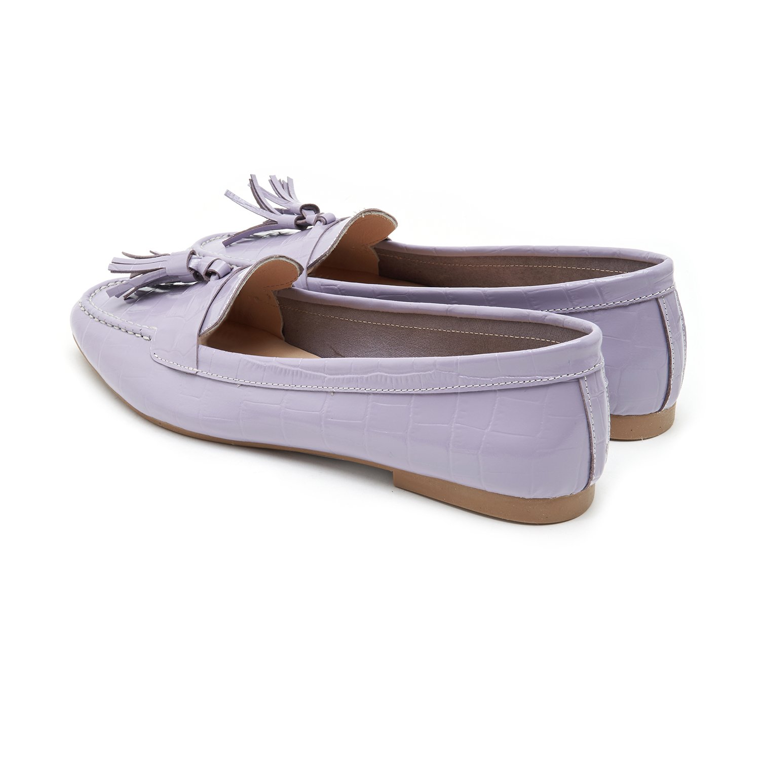 Kadın Lila Kroko Baskılı Deri Loafer