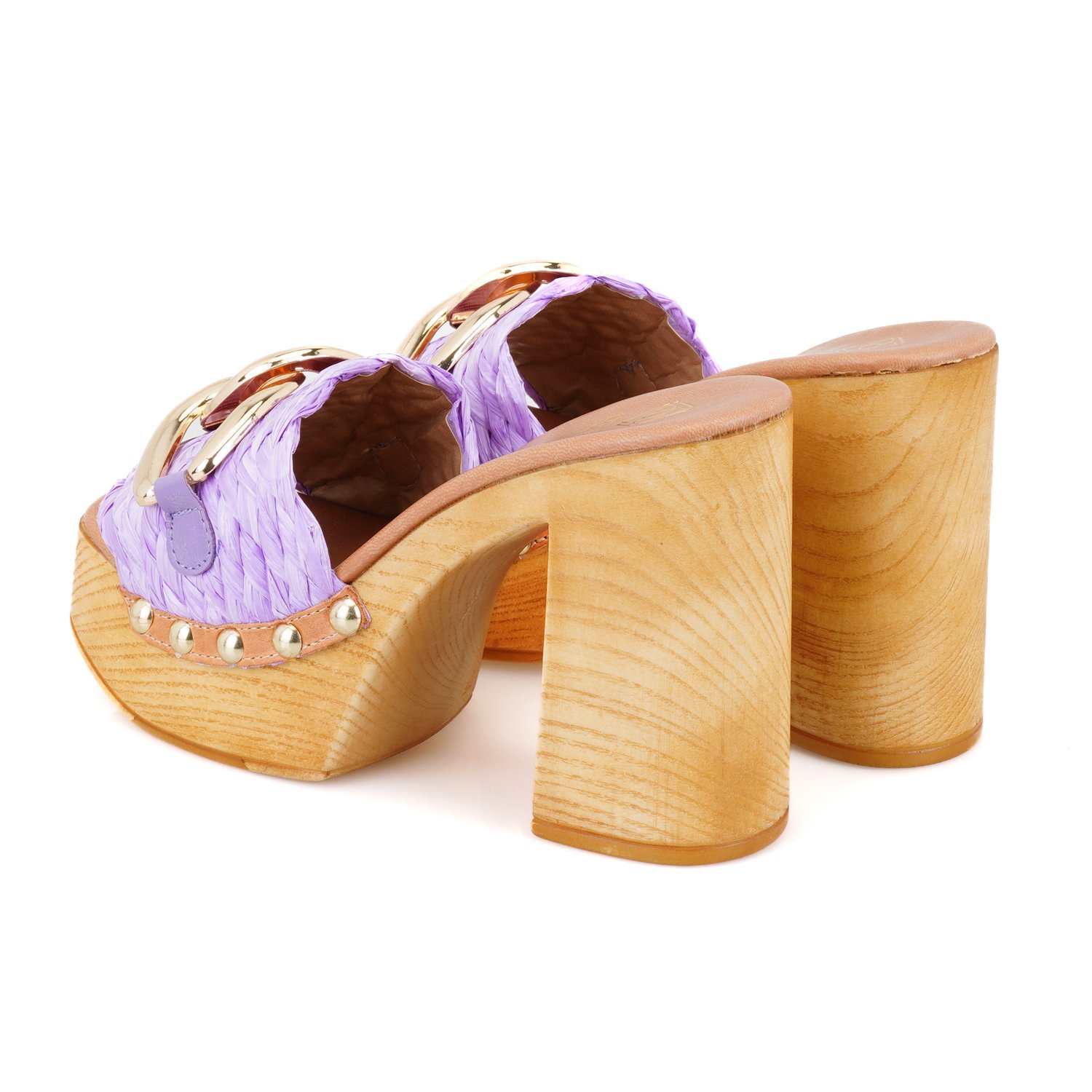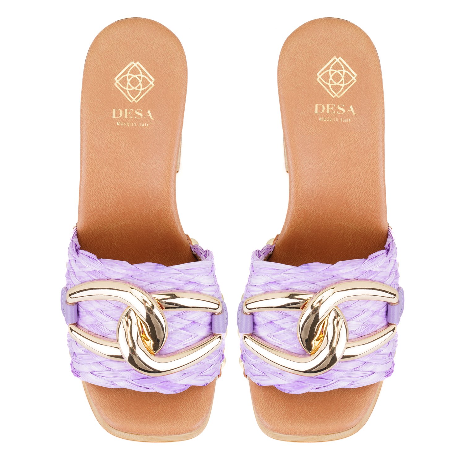 %100 rafya örgü, pu iç astarlı, pu iç tabanlı, pu tabanlı, metal zincir aksesuar detaylı kadın terlik.