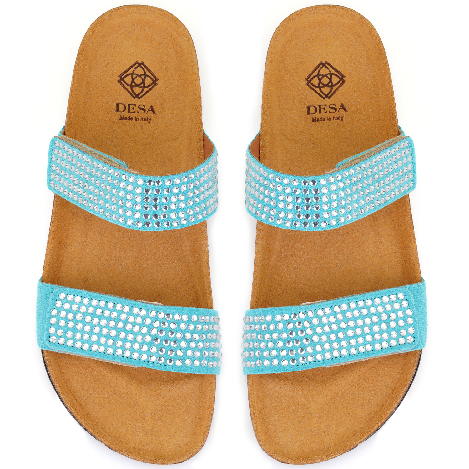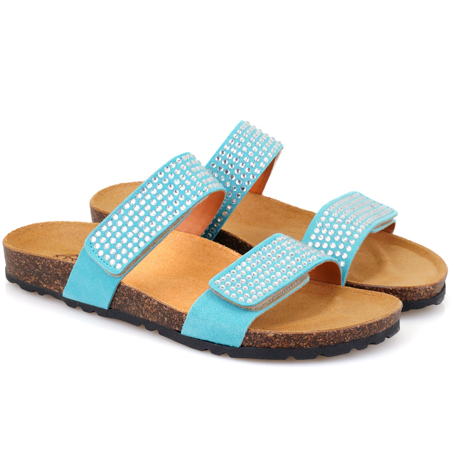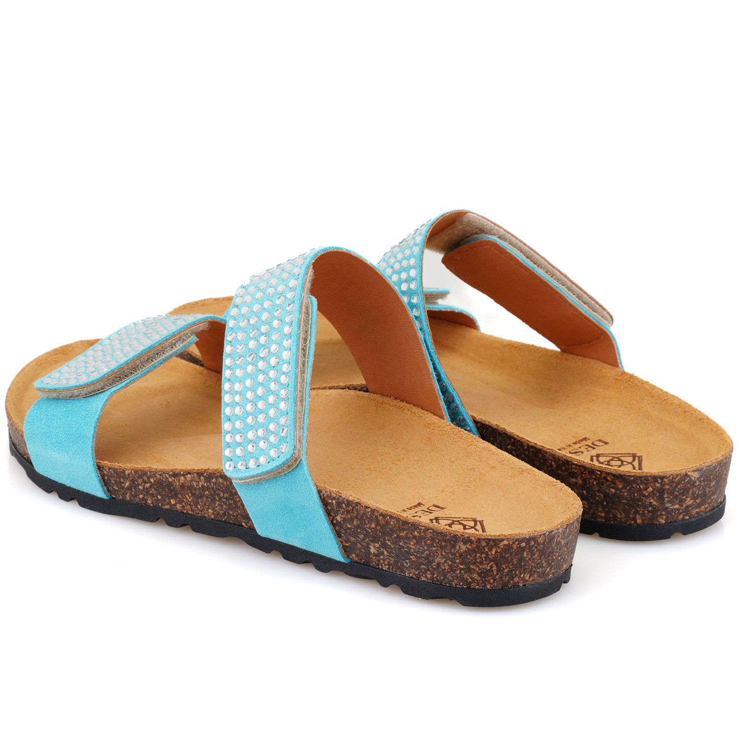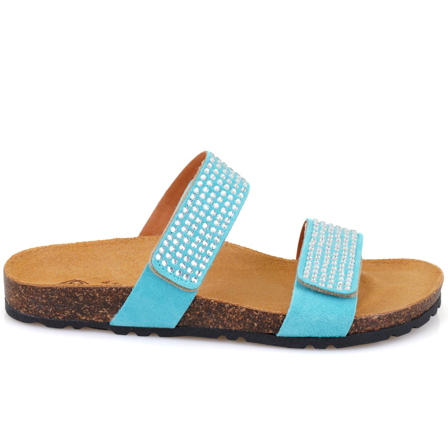 %100 süet, deri iç astarlı, deri iç tabanlı, parlak taş detaylı, mantar pu tabanlı,cırt cırtlı kadın terlik.