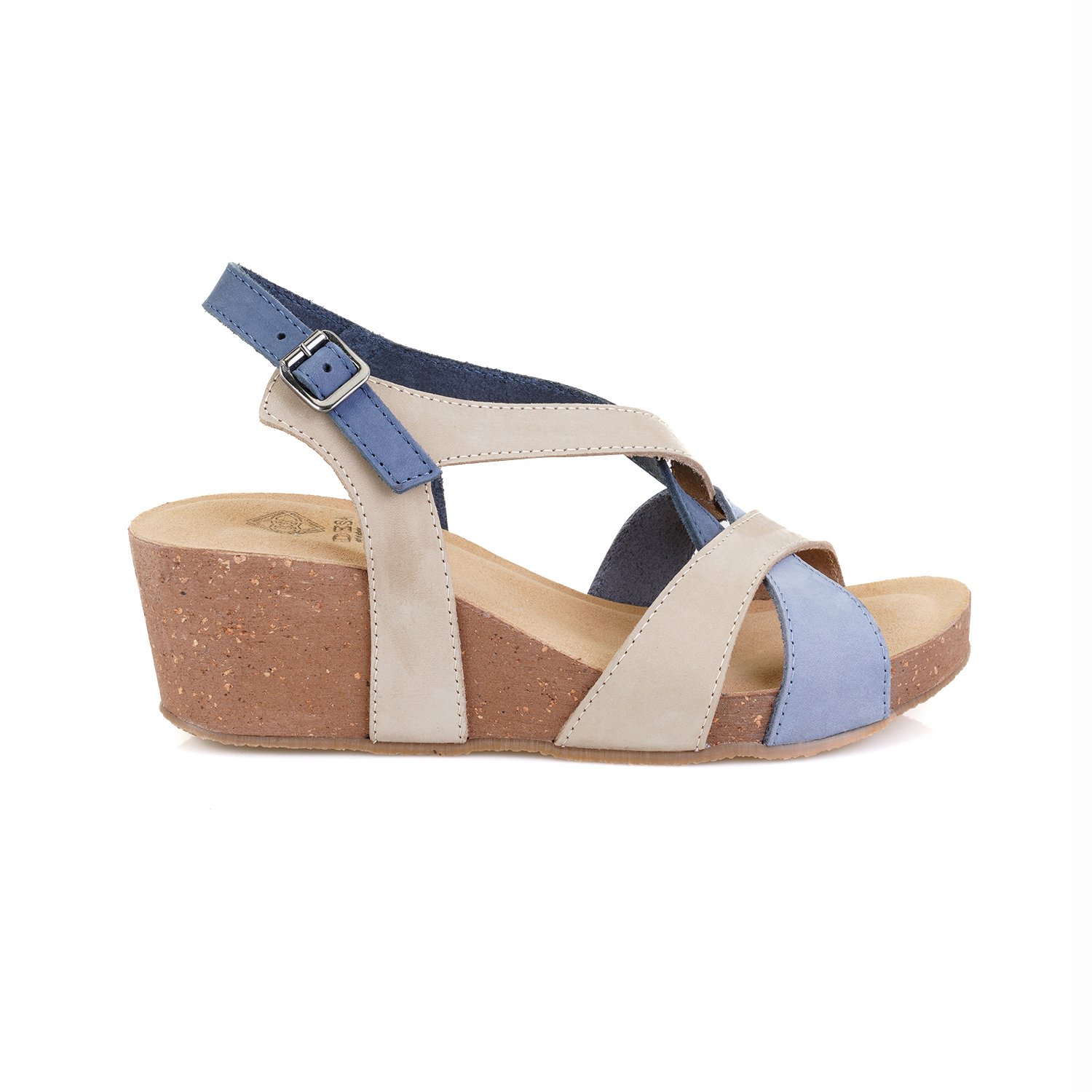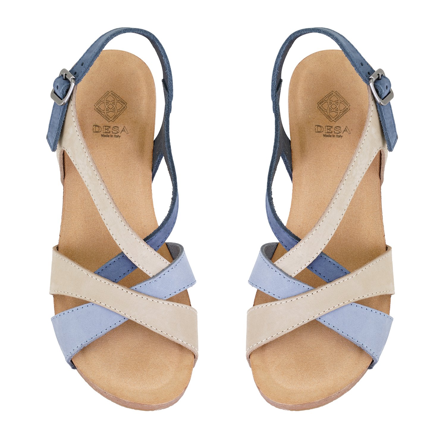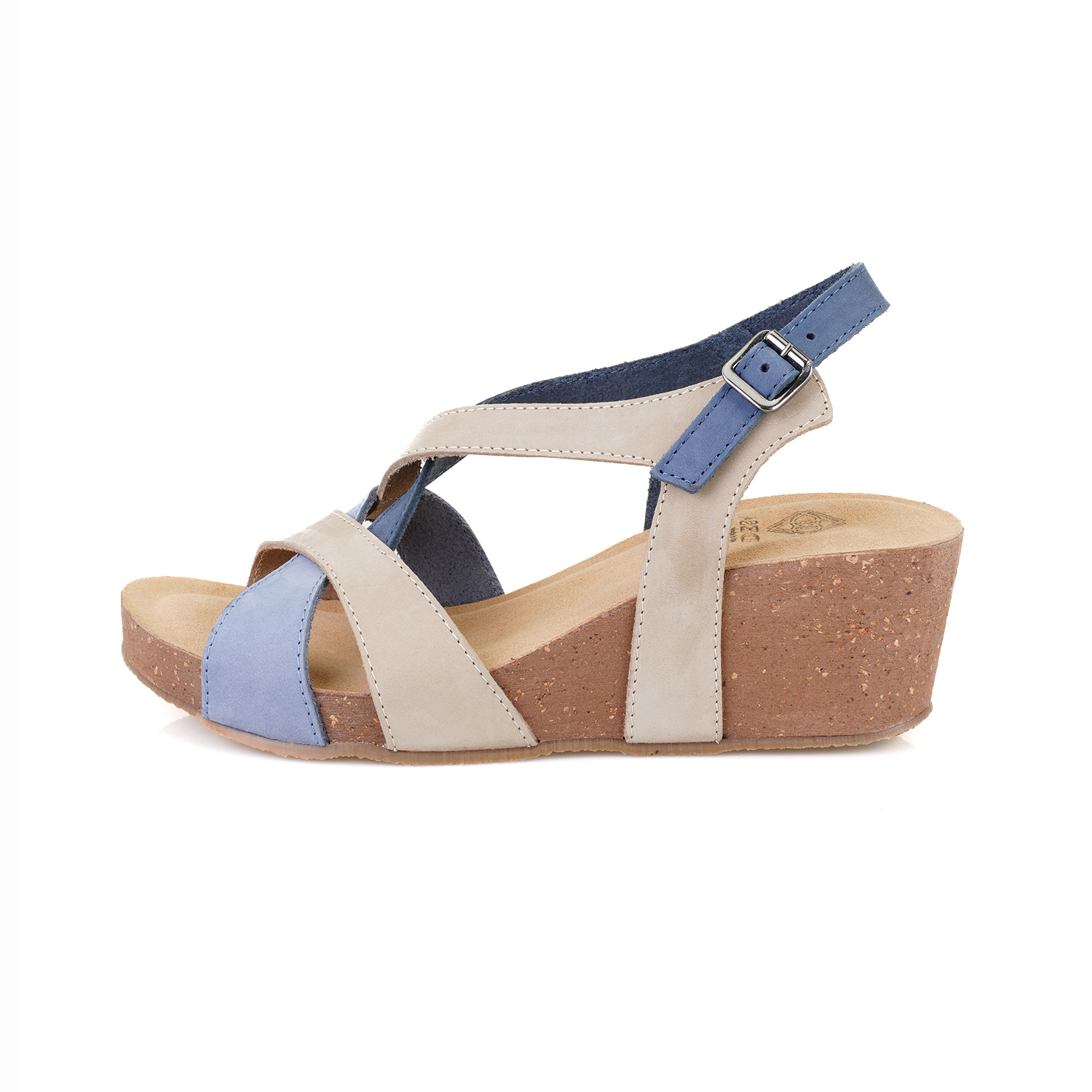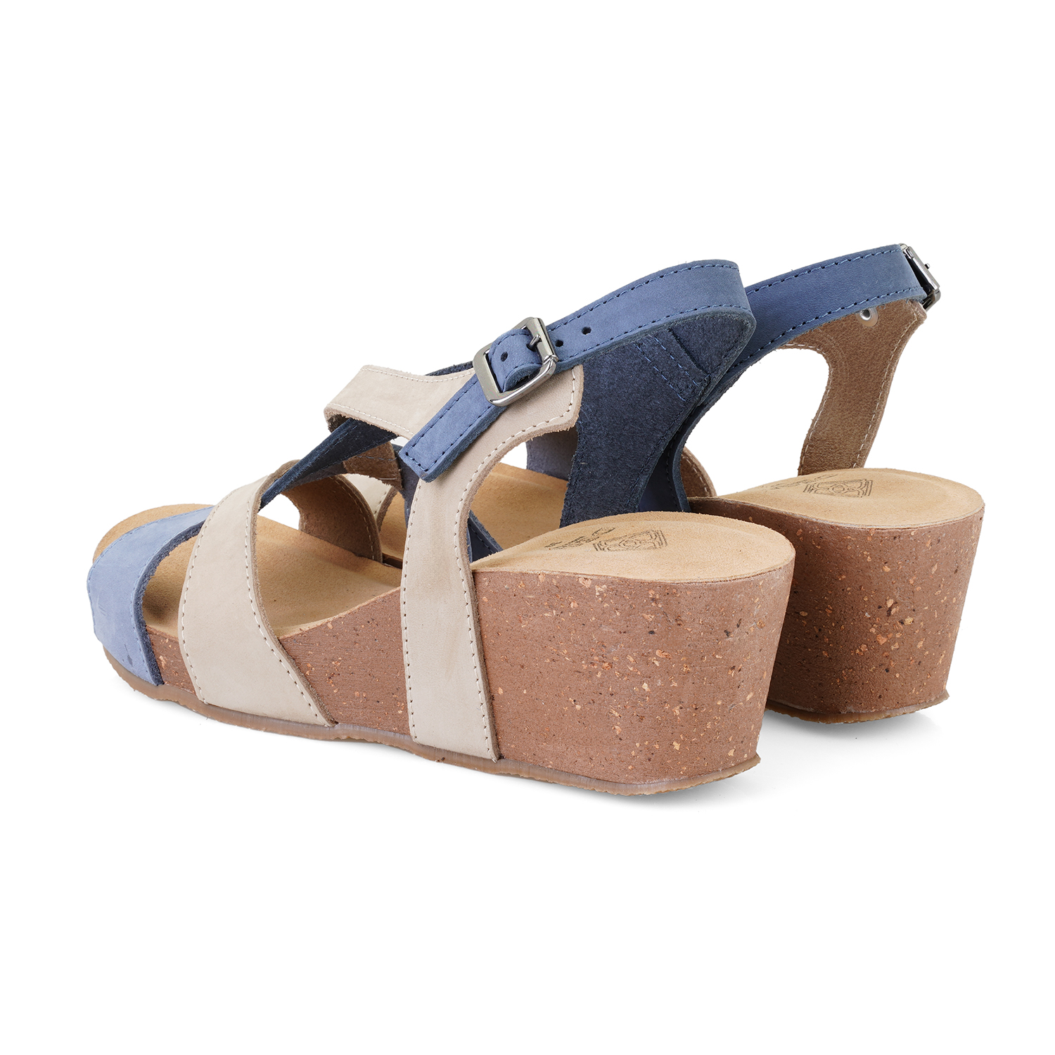 Kadın Mavi Dolgu Topuklu Deri Sandalet