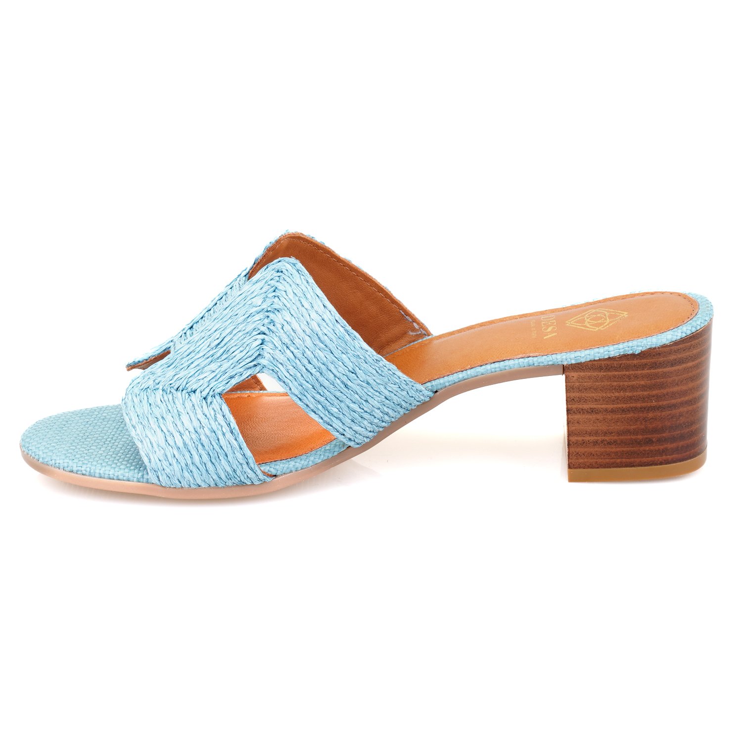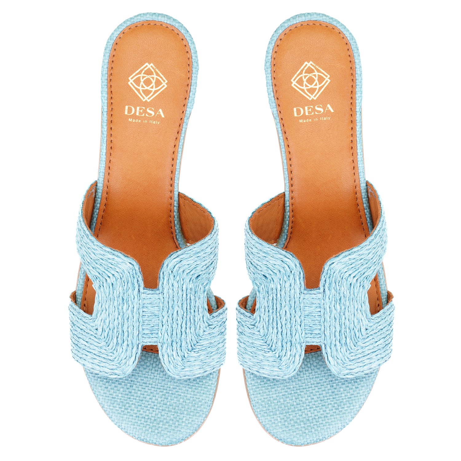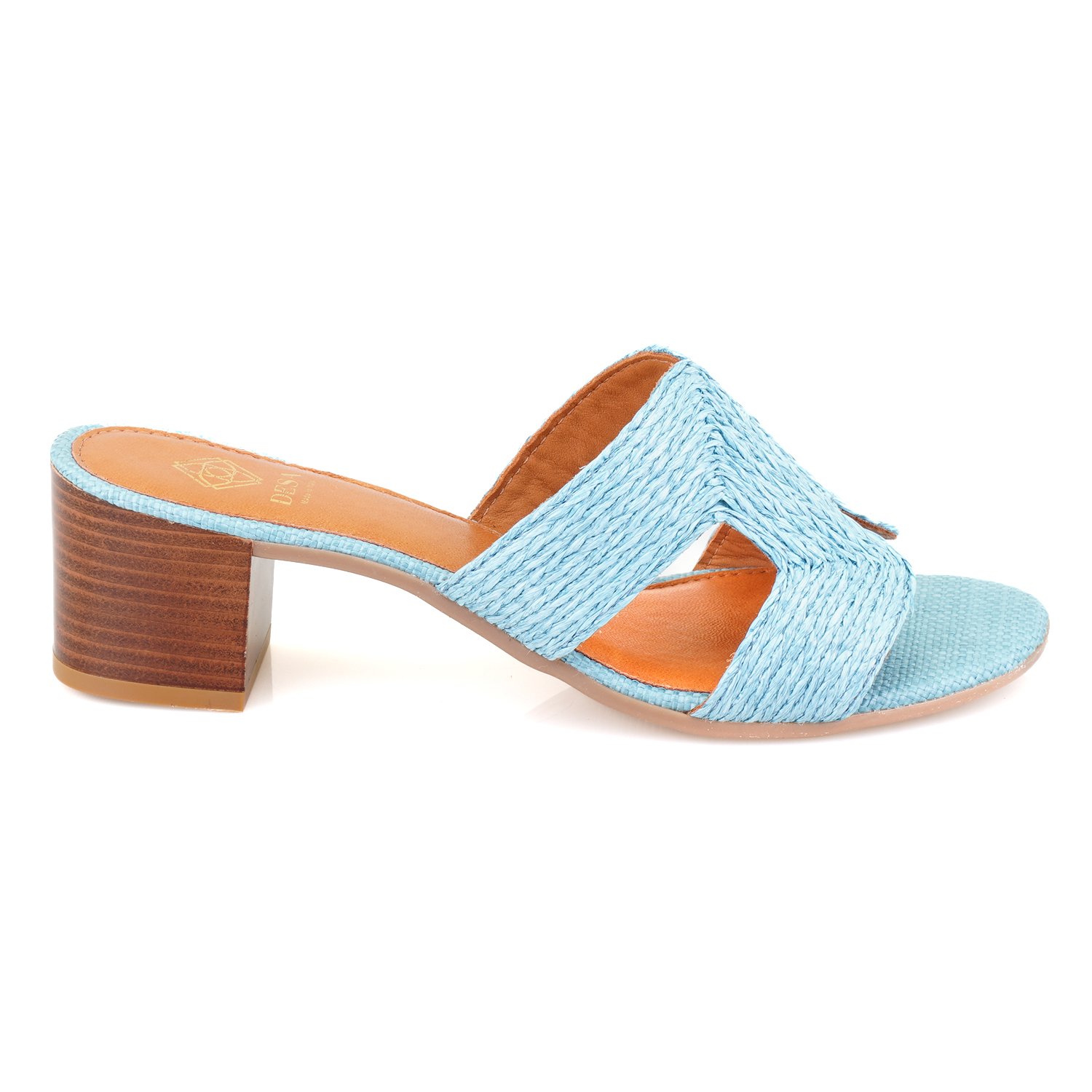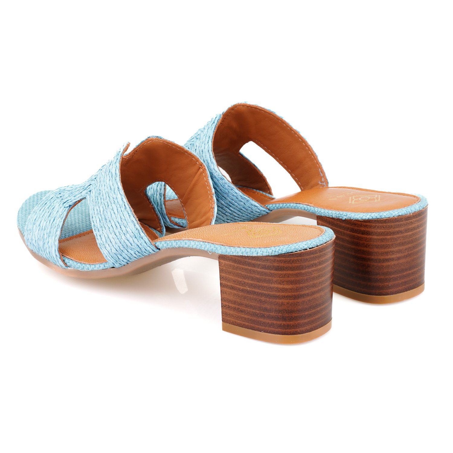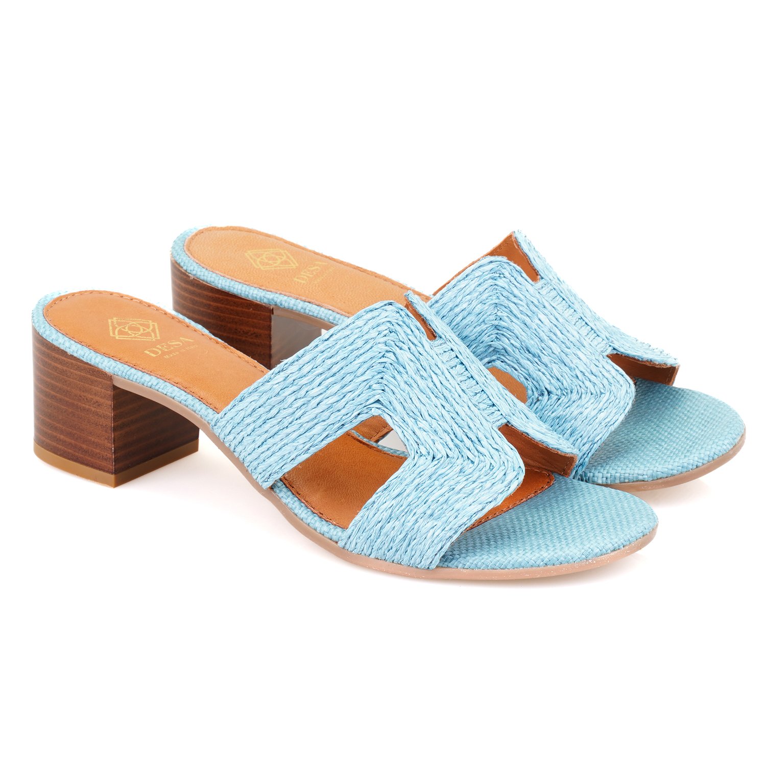 Kadın Mavi Hasır Örgülü Topuklu Terlik