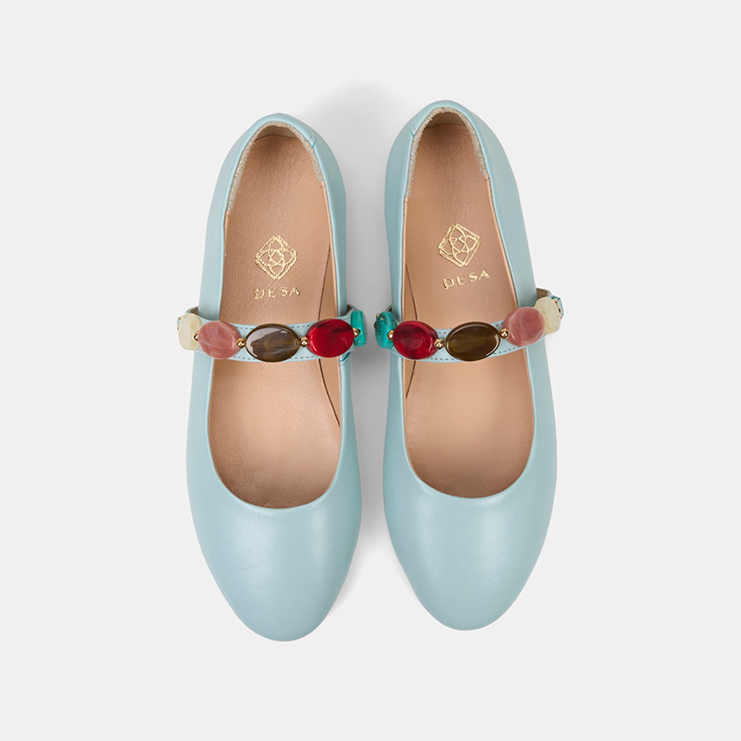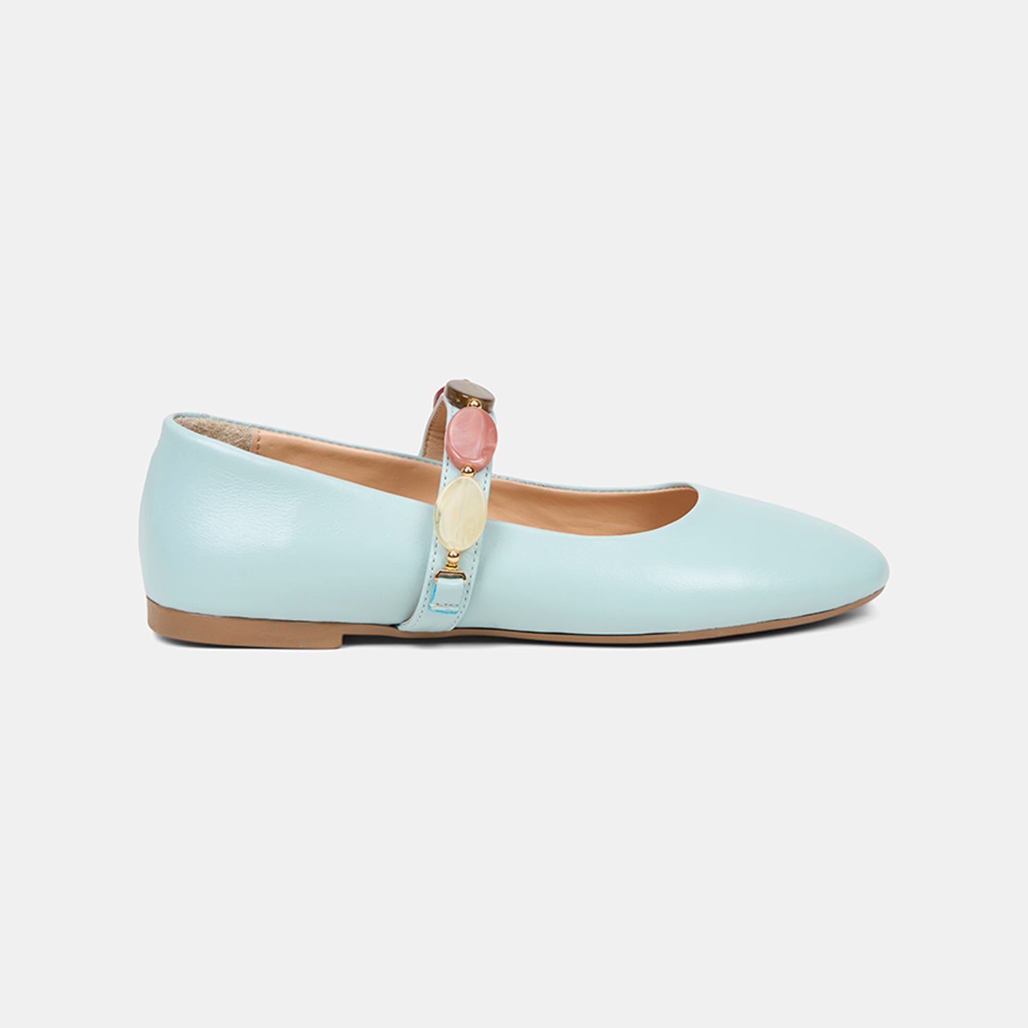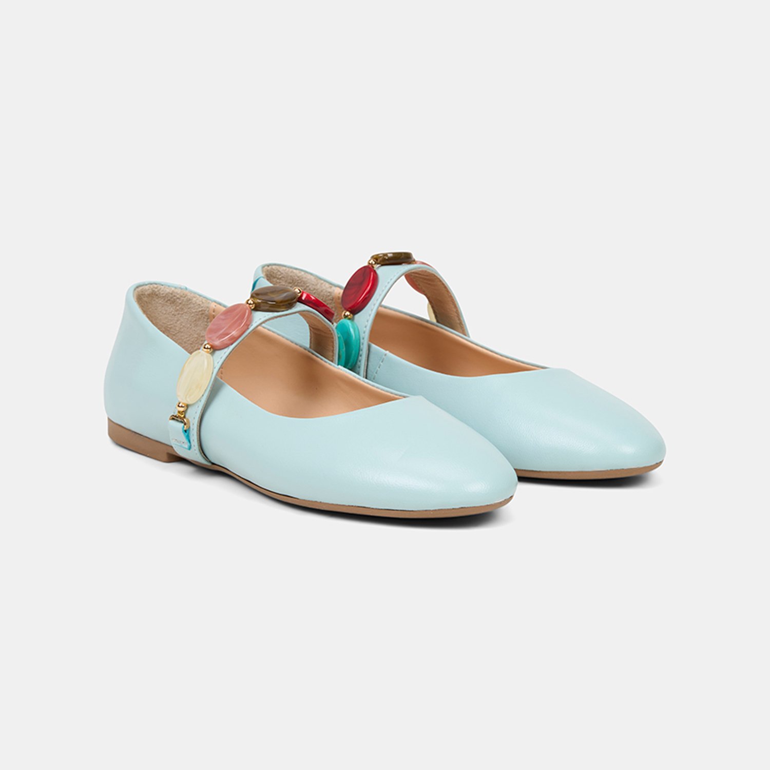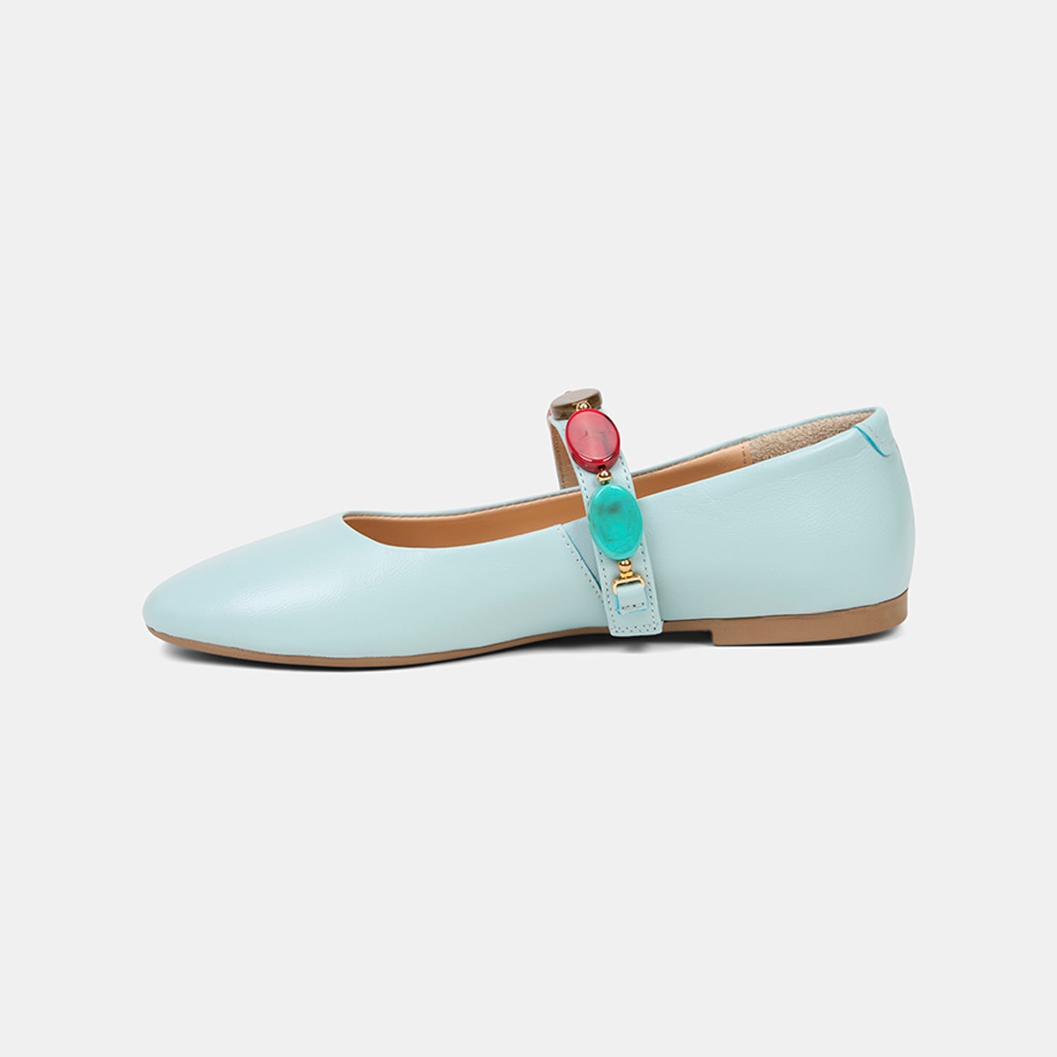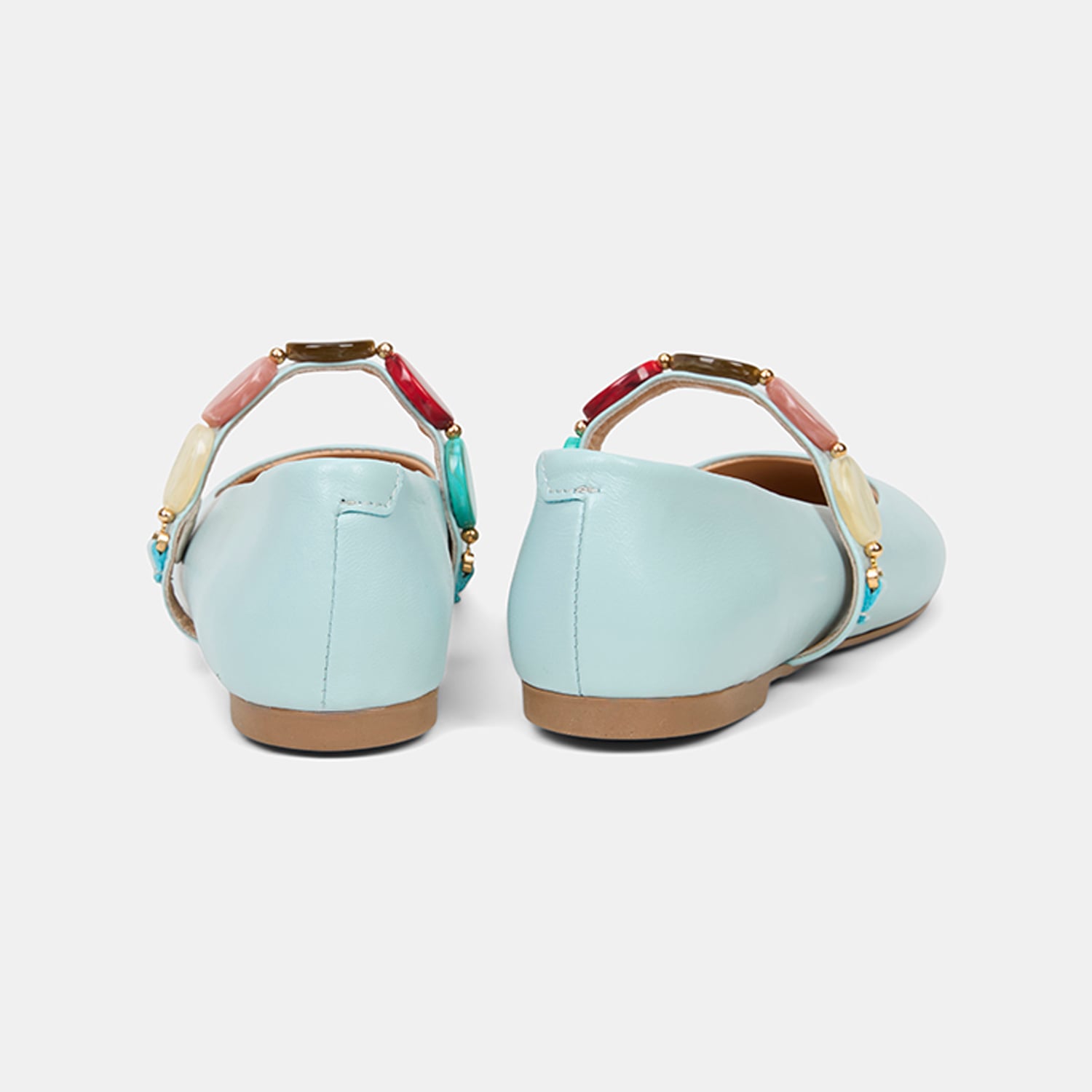 Kadın Mavi Renkli Taş Aksesuarlı Deri Babet