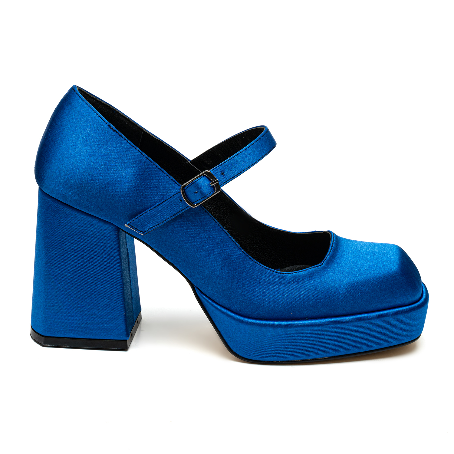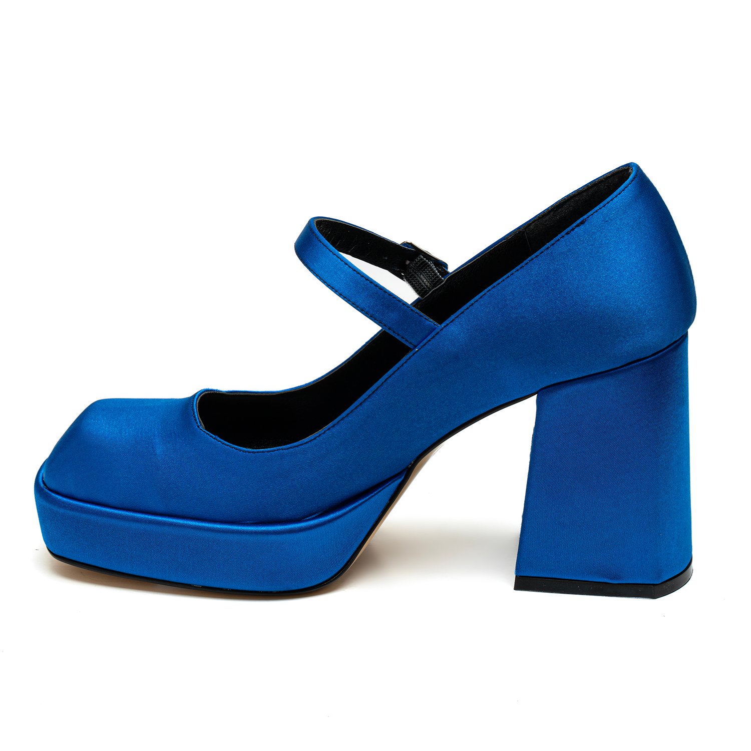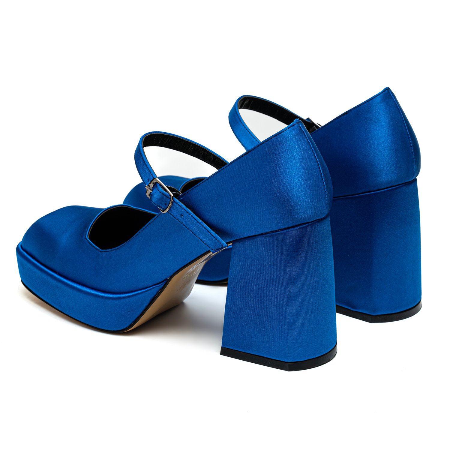 Kadın Mavi Saten Mary Jane Platform Ayakkabı
