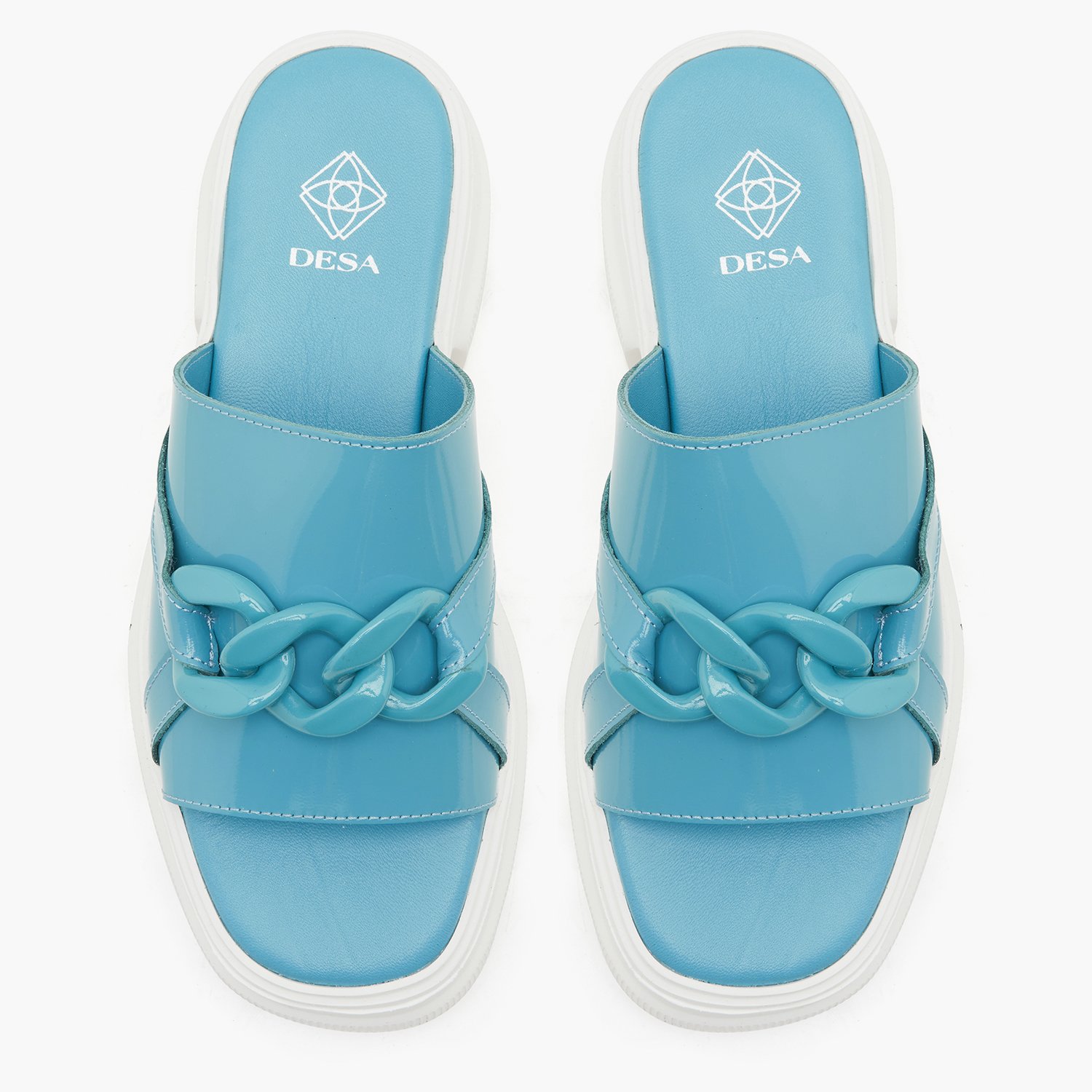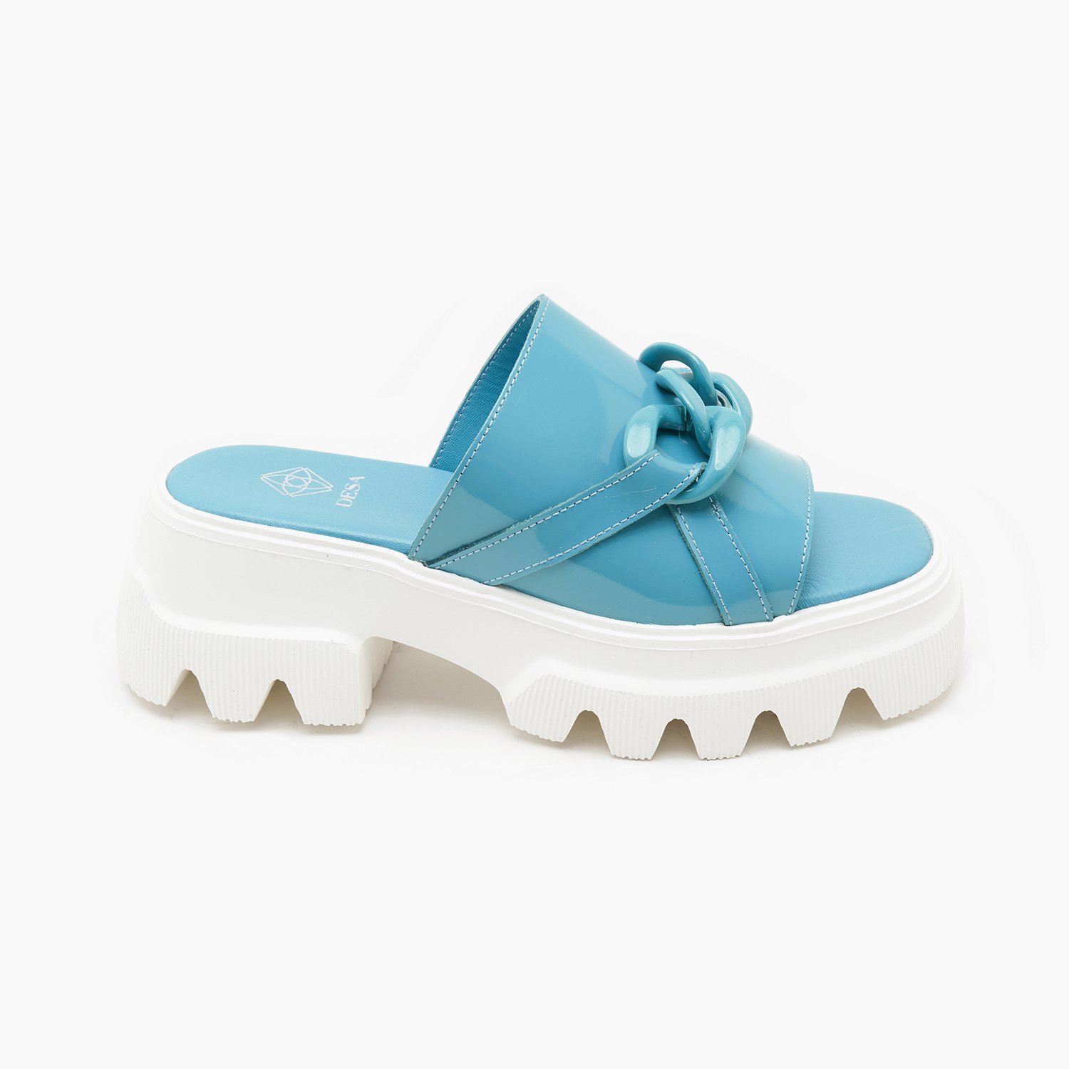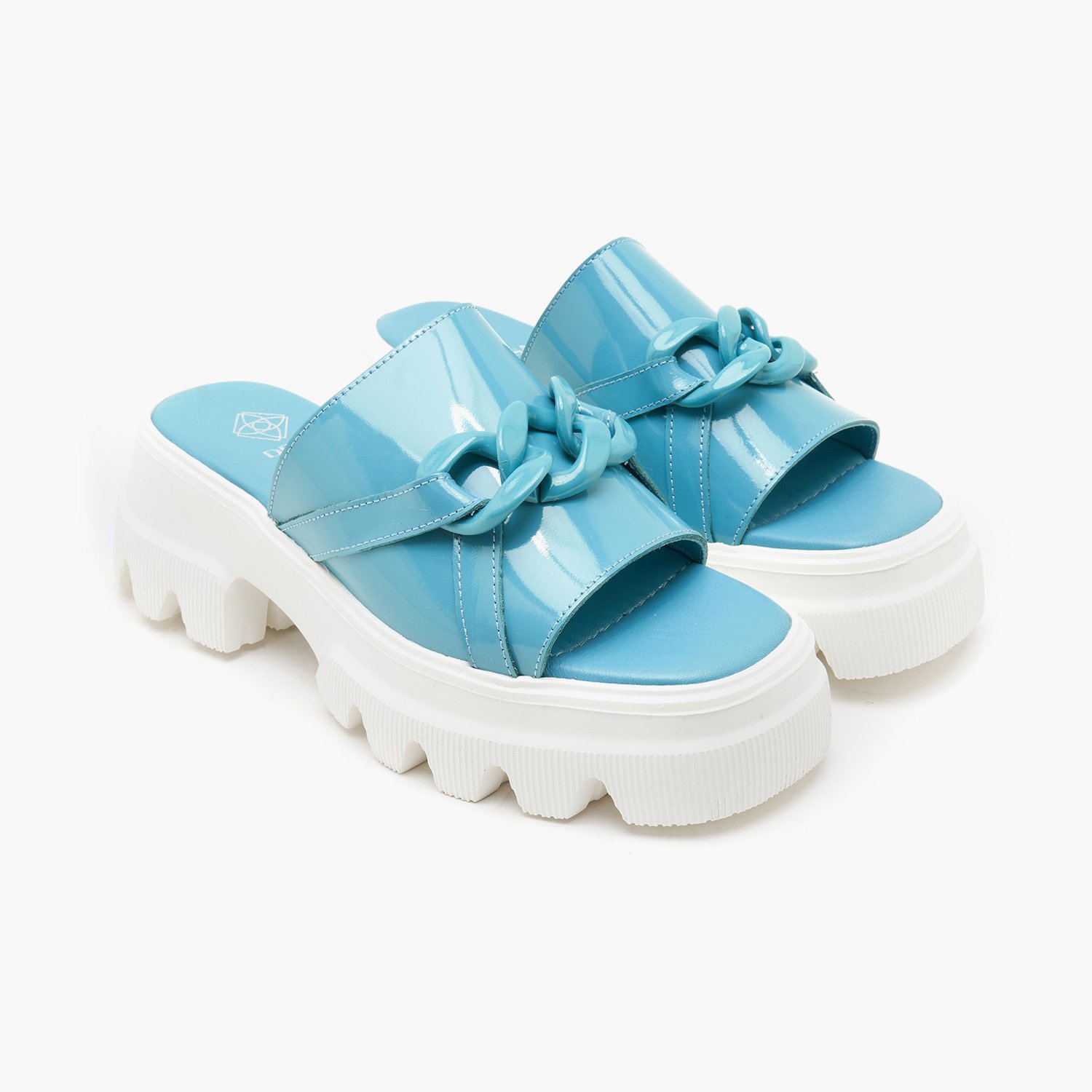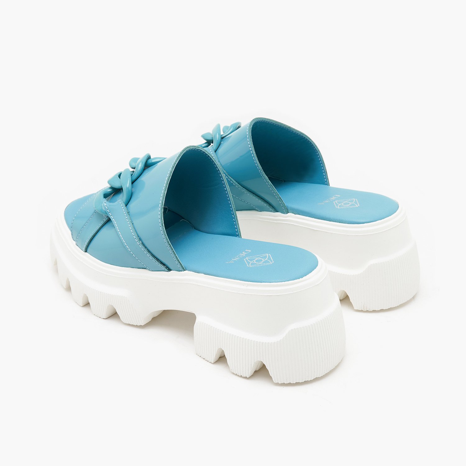Kadın Mavi Zincir Detaylı Deri Terlik