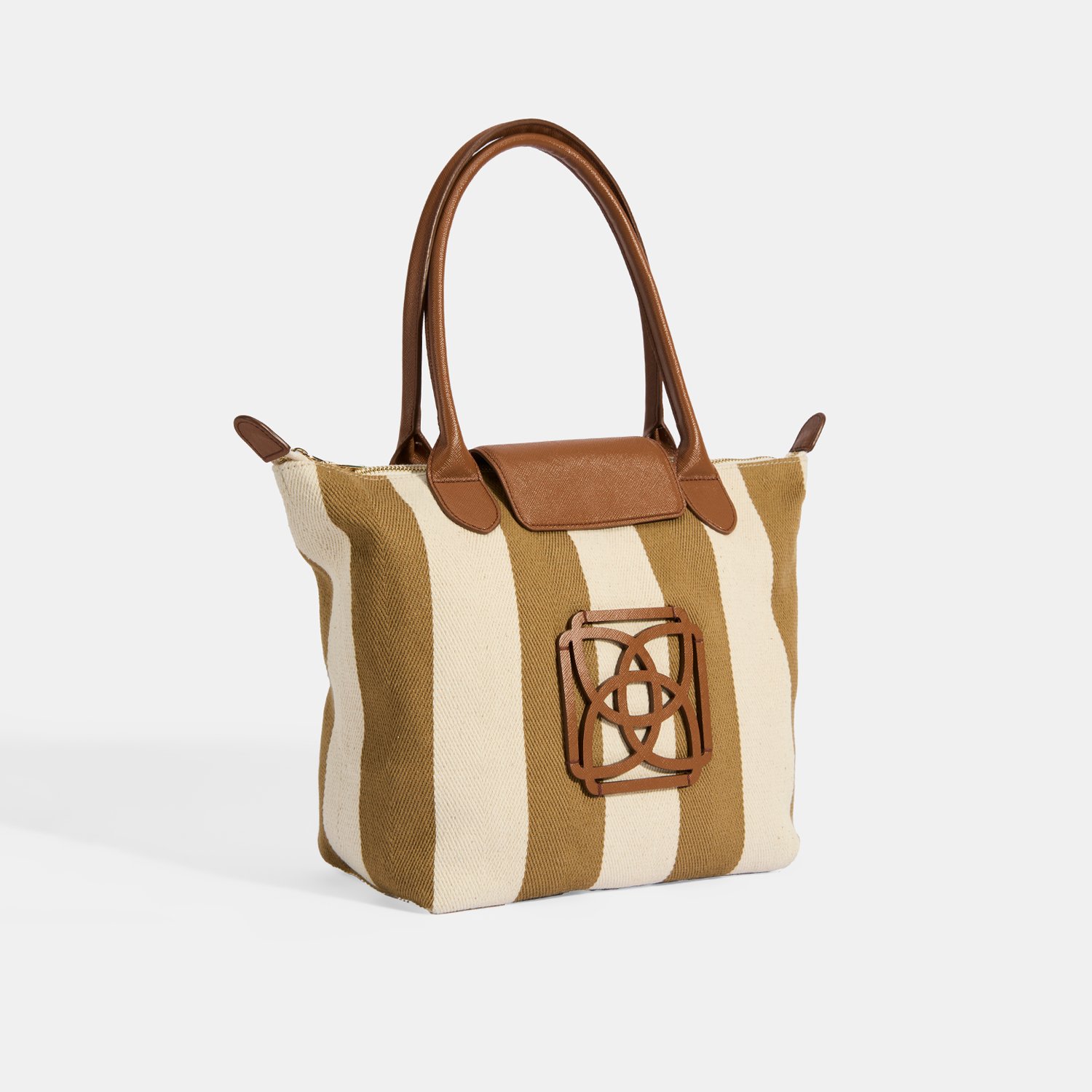 Kadın Monogram Logolu Vizon Çizgili Kumaş Midi Omuz Çantası