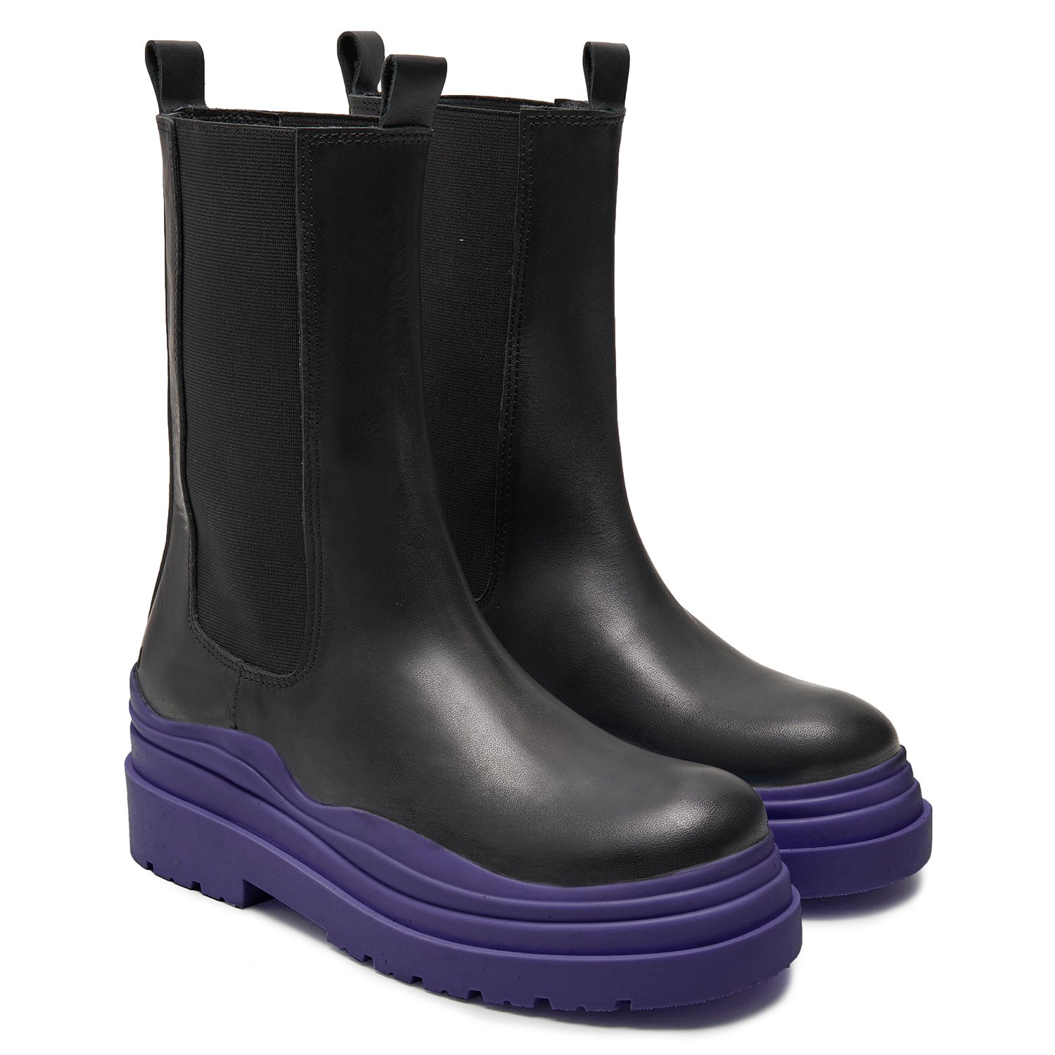 Kadın Mor Deri Chelsea Bot