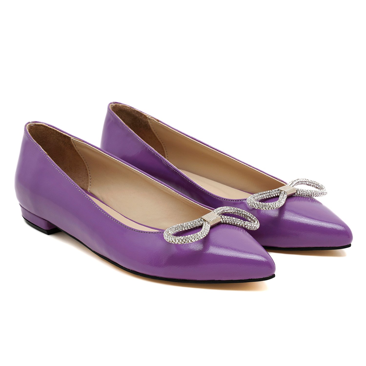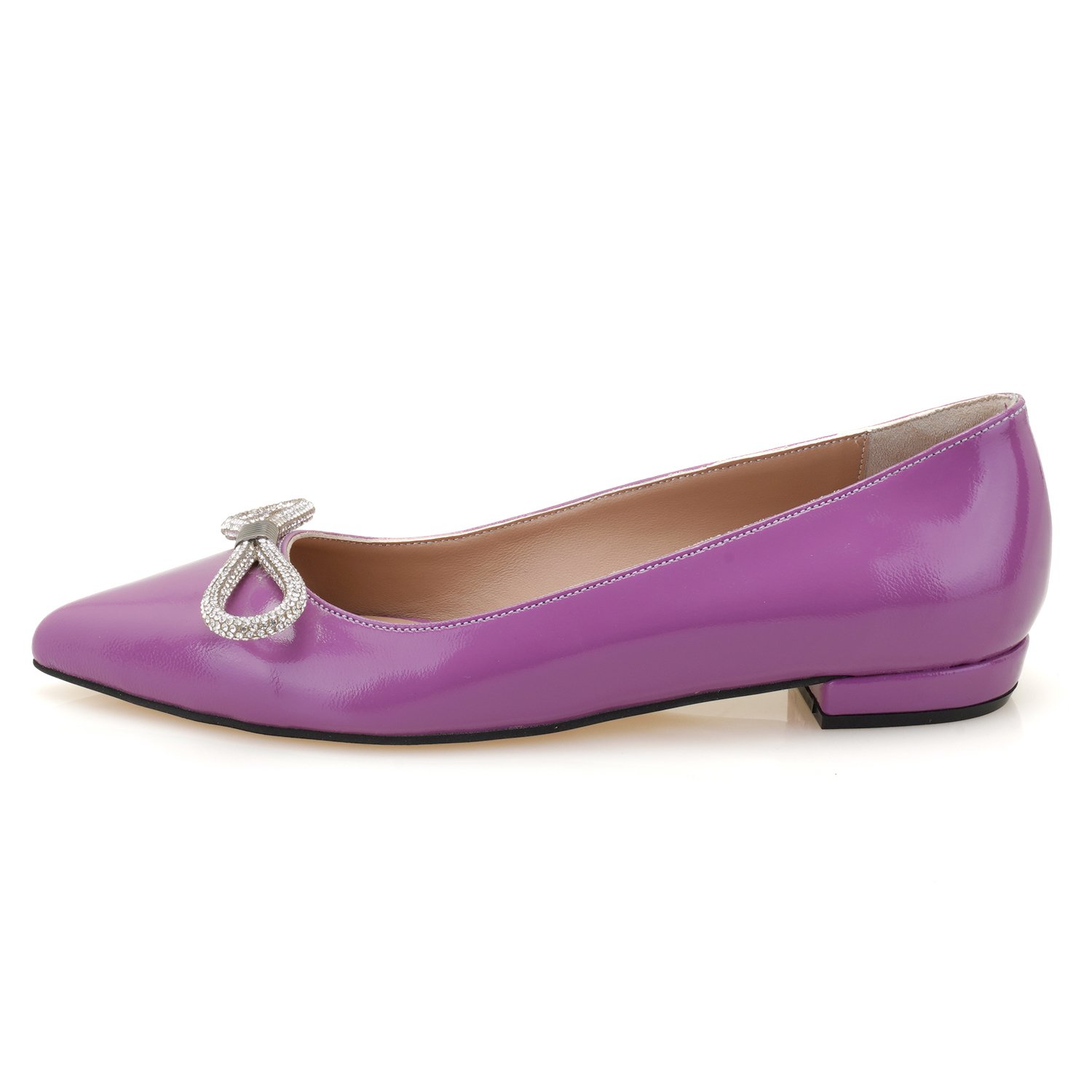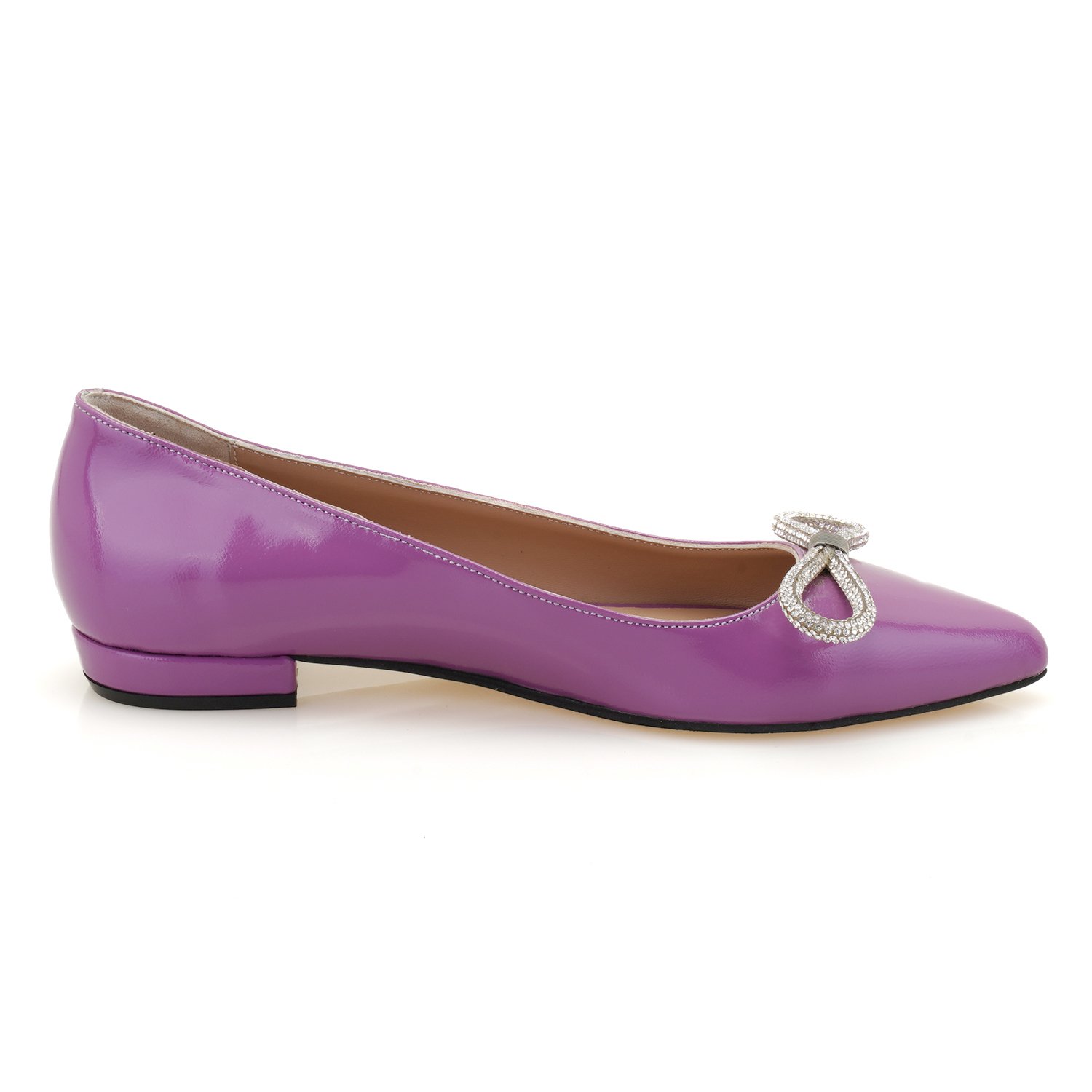 Kadın Mor Fiyonklu Rugan Deri Babet