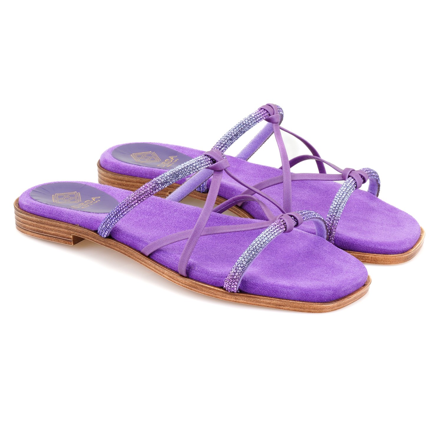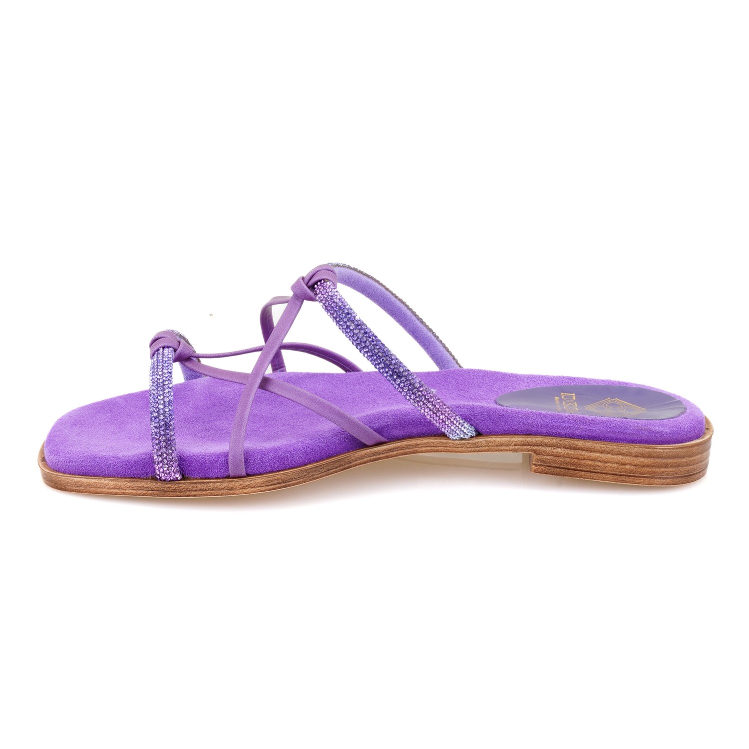 Pu iç astarlı, deri iç tabanlı, parlak taş detaylı, pu tabanlı, kadın terlik.