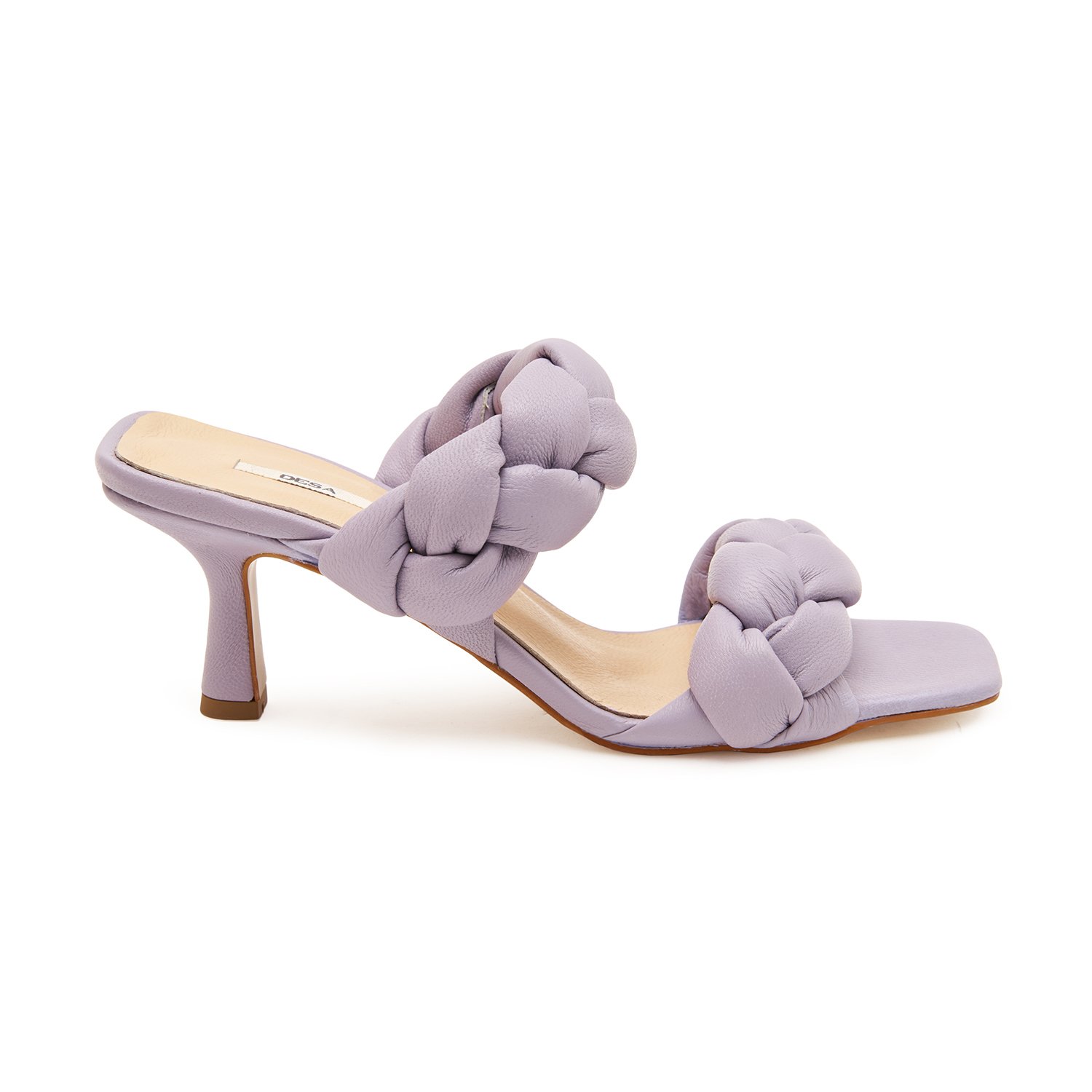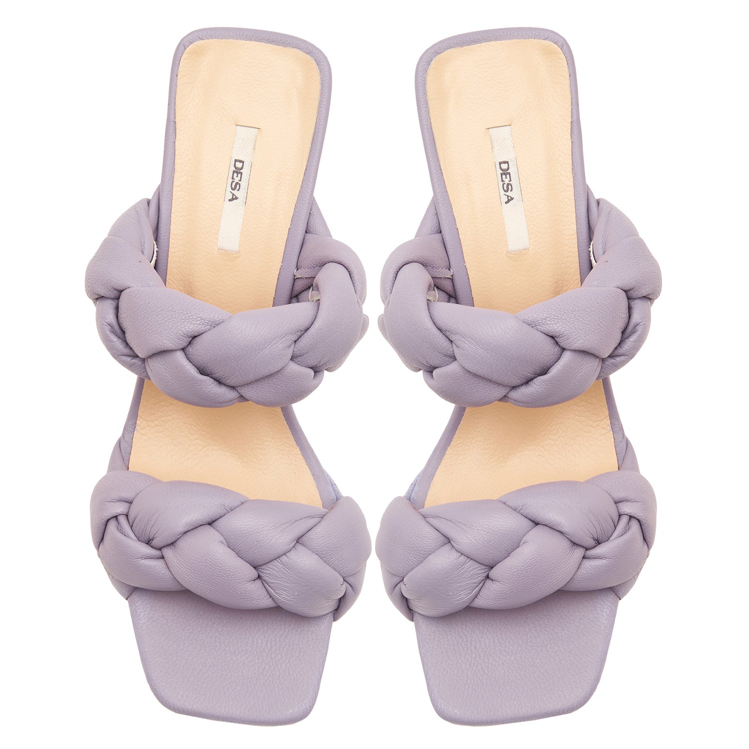 Deri iç tabanlı, örgü detaylı, neolit tabanlı kadın terlik.