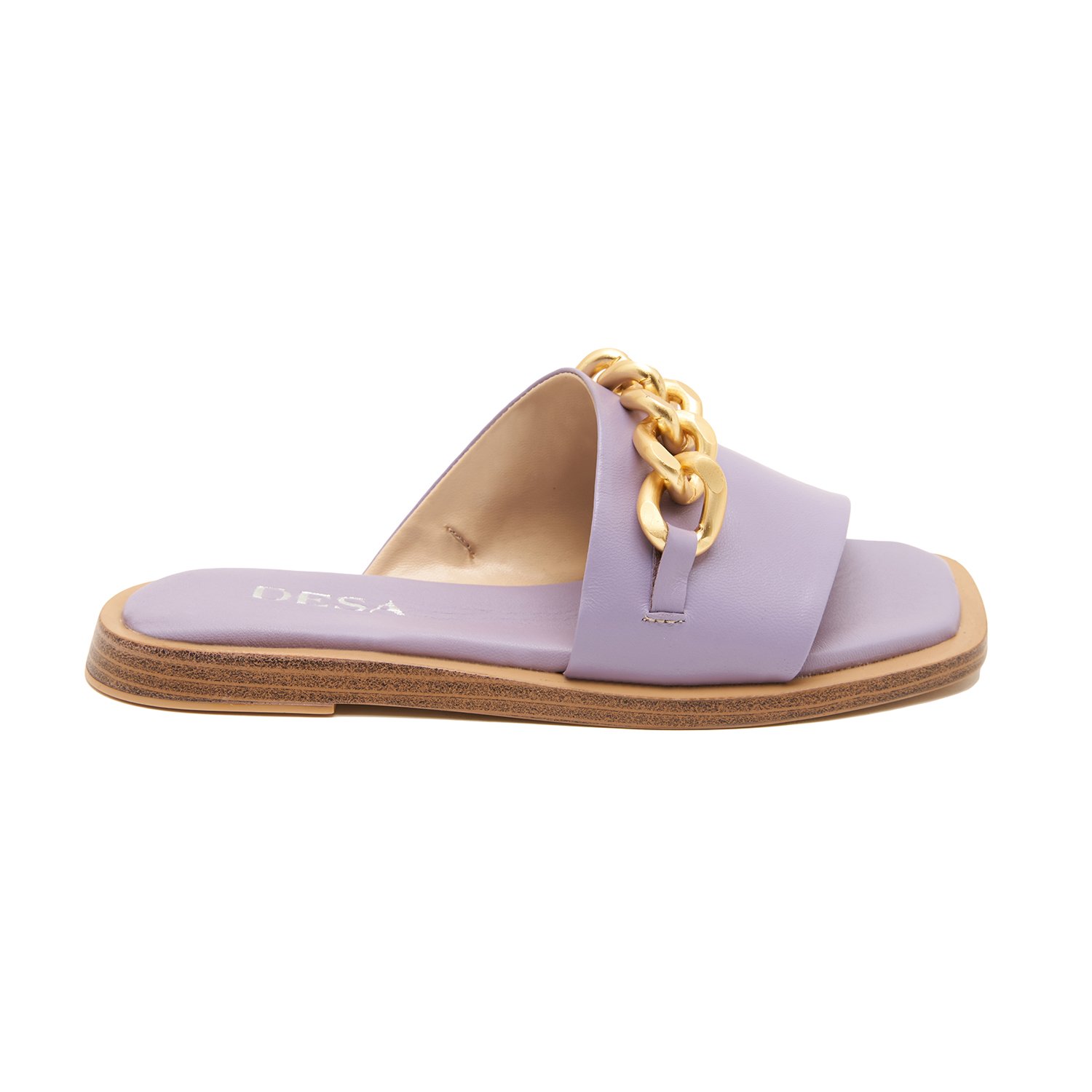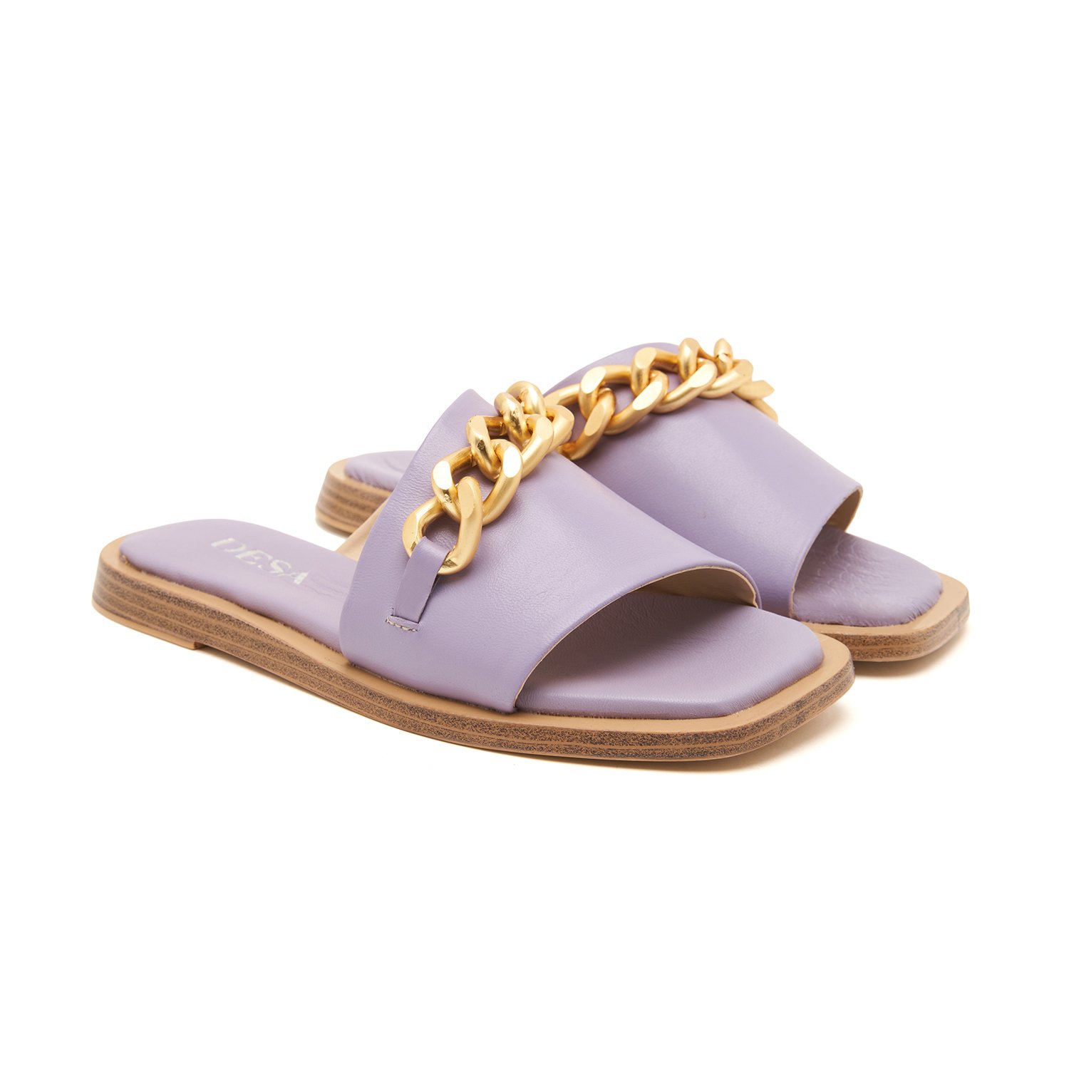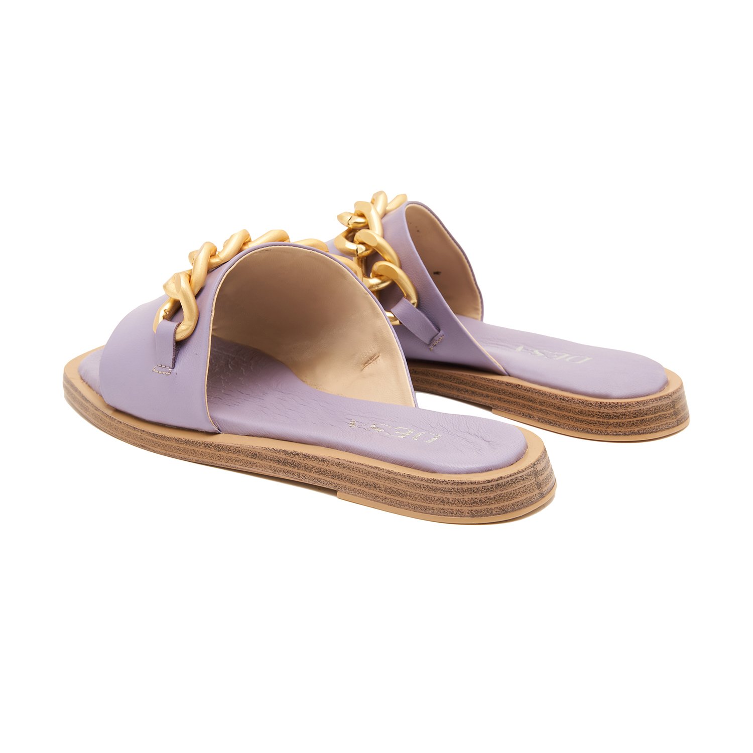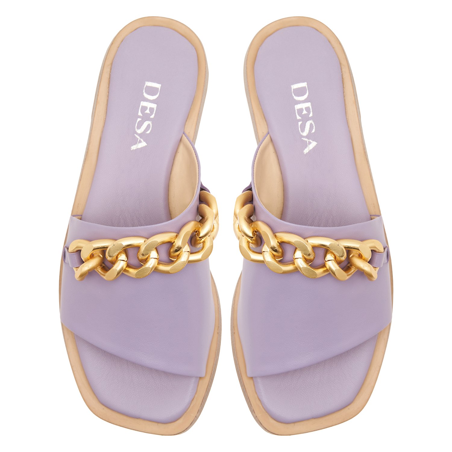Deri iç tabanlı, zincir aksesuarlı, dayanıklı ve esnek PU tabanlı kadın terlik.
