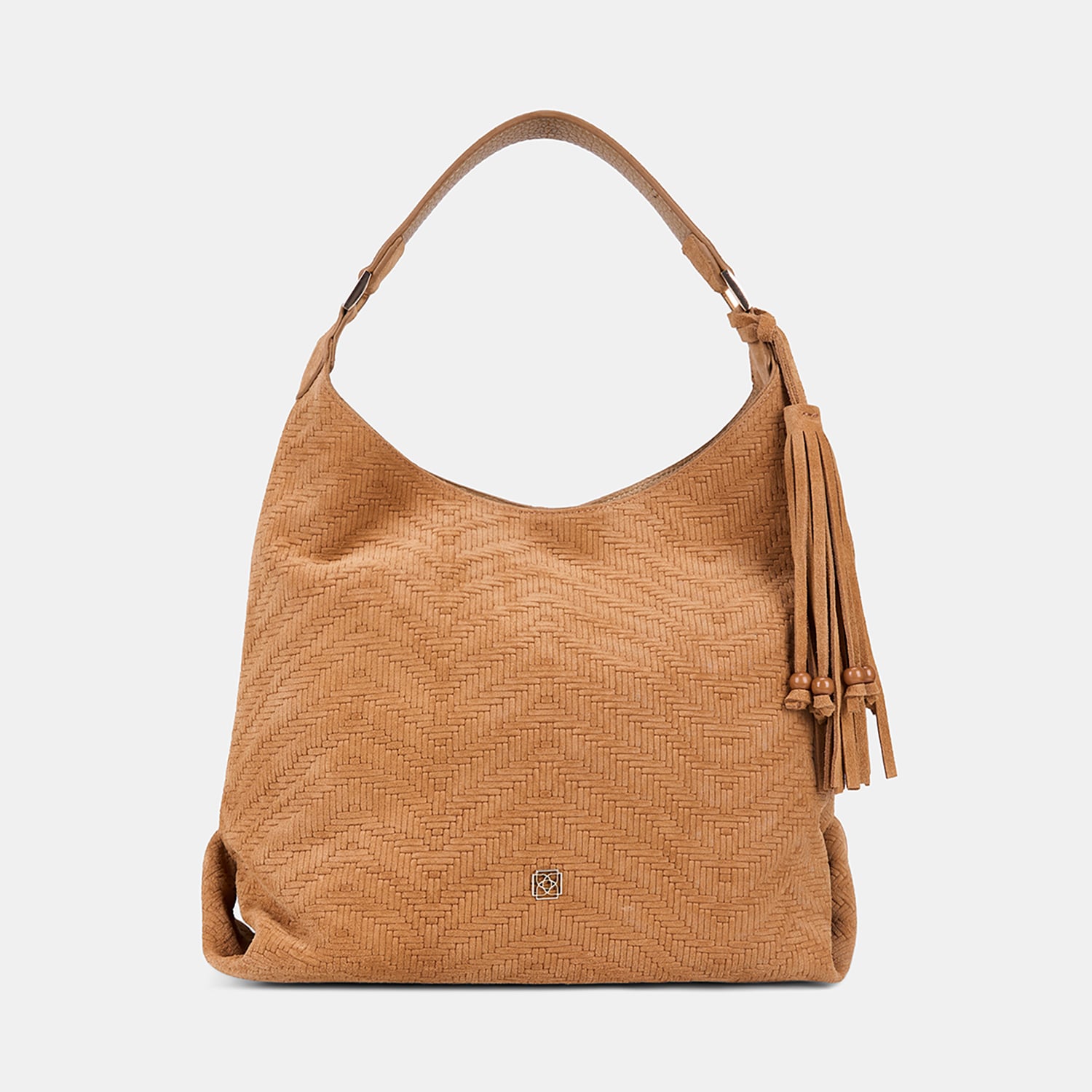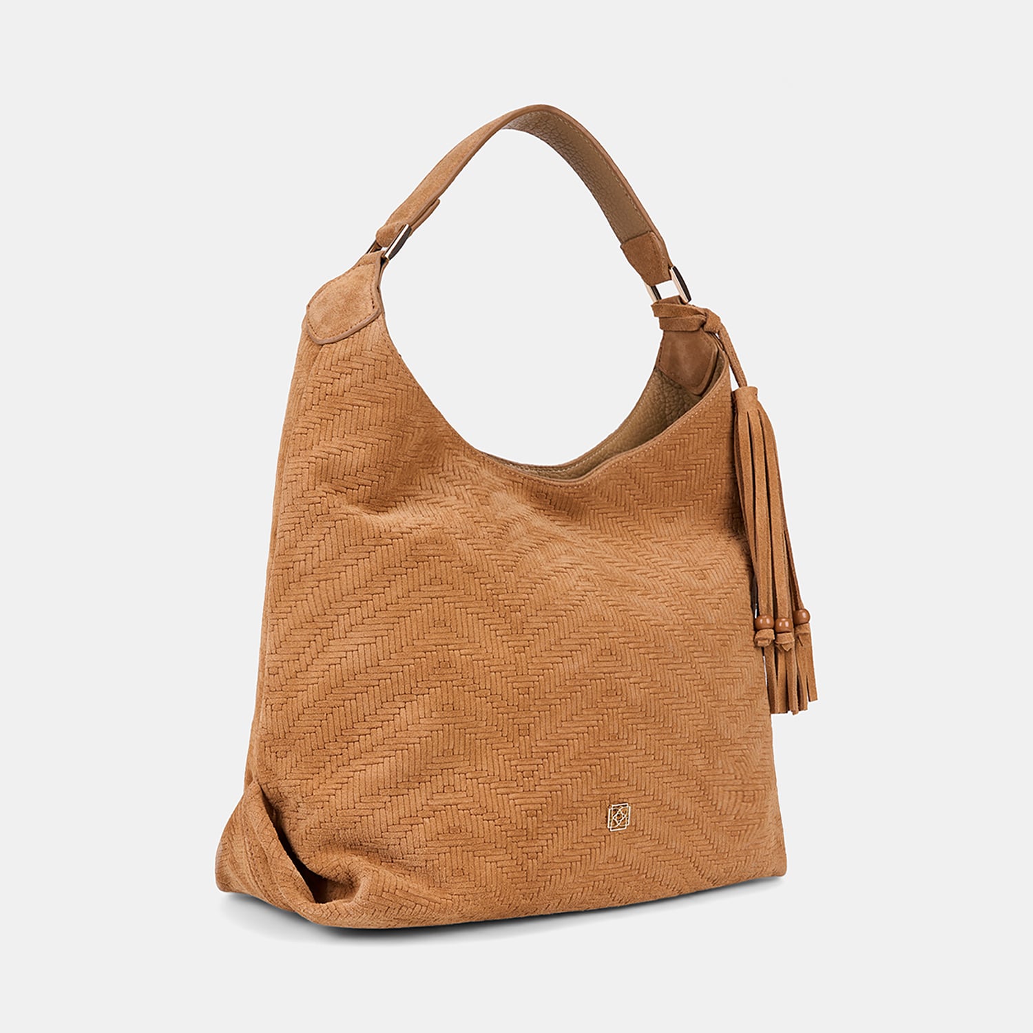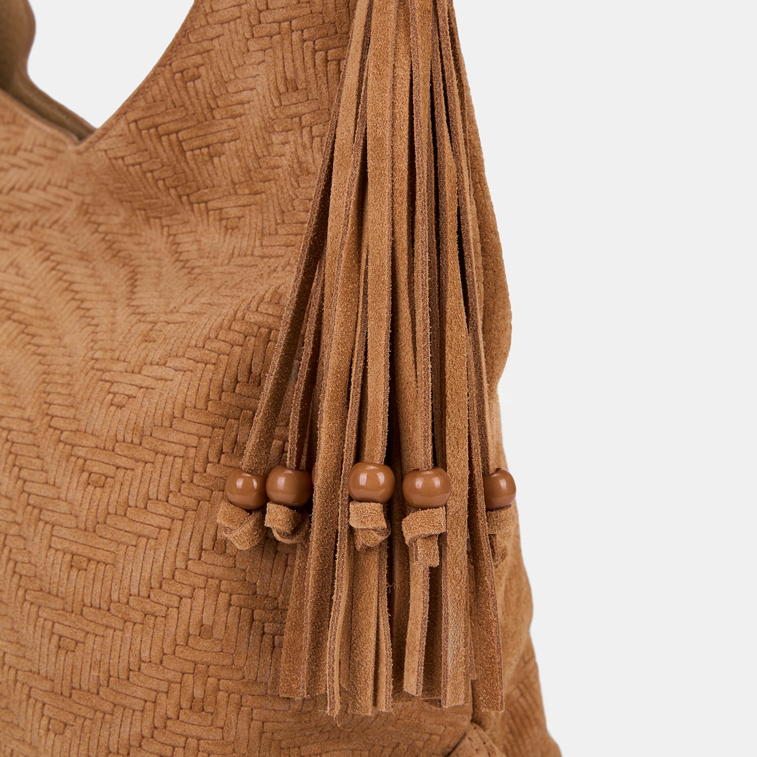 Kadın Nude Örgü Desenli Püsküllü Süet Dokulu Omuz Çantası
