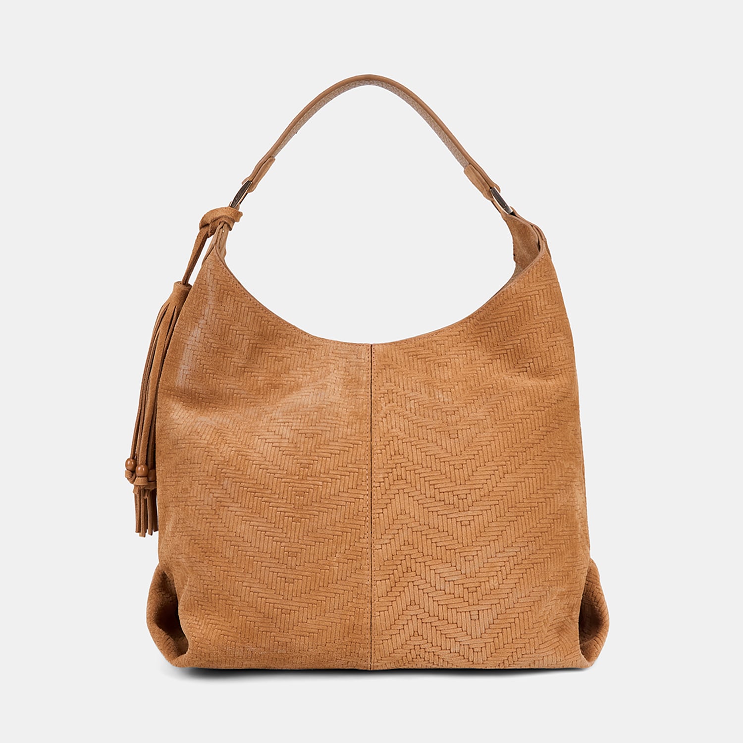 Örgü desenli süet omuz çantası, yumuşak dokusu ve modern formuyla günlük stiline doğal ve özgün bir şıklık kazandırır.