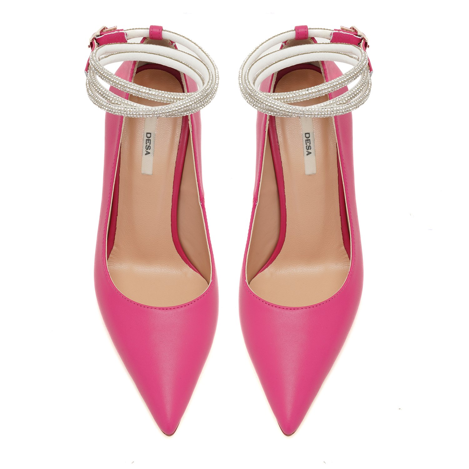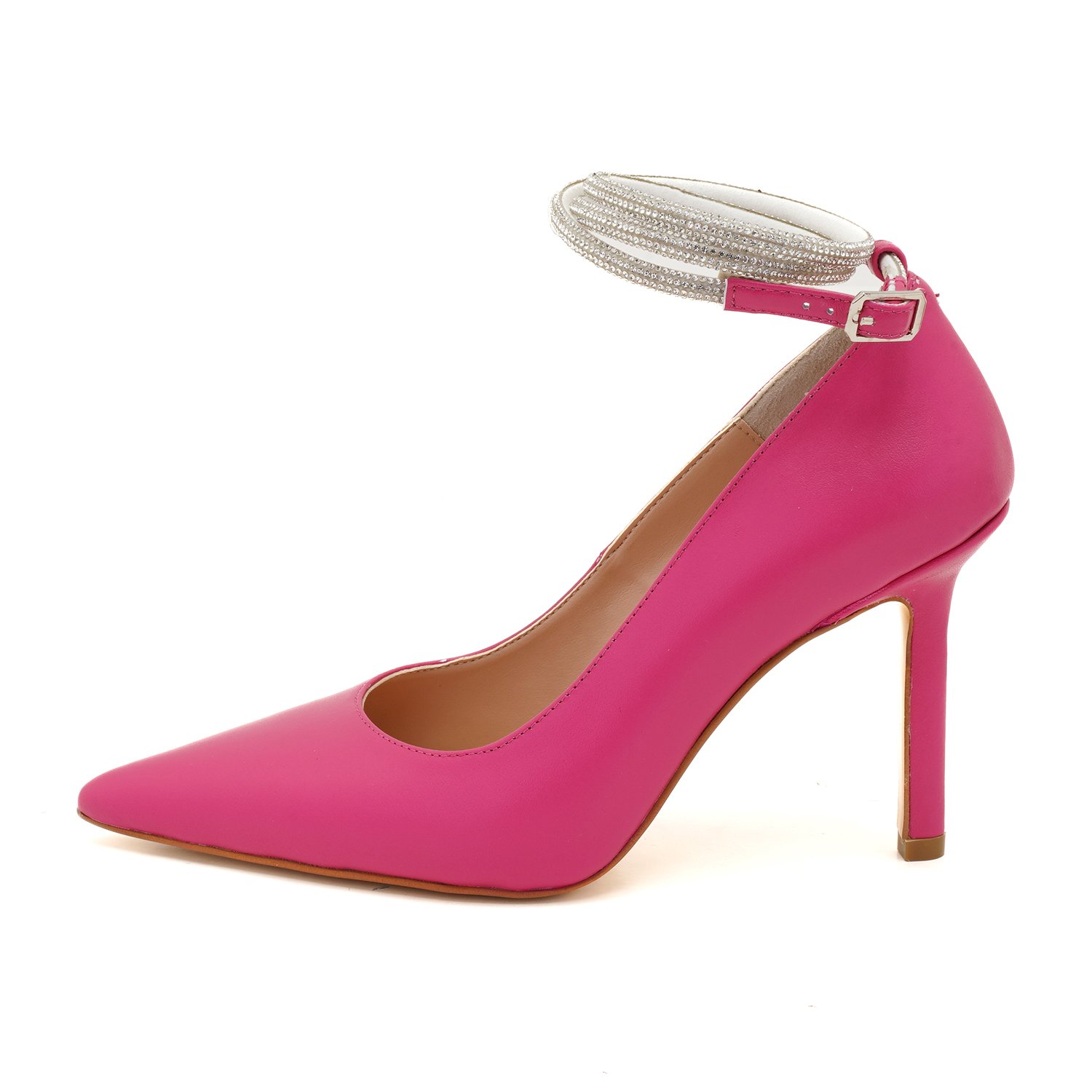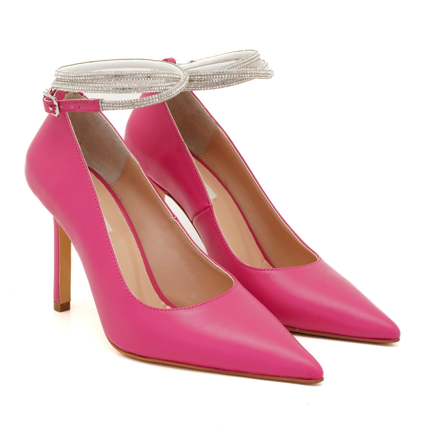 %100 deri, deri iç tabanlı, deri astarlı, neolit tabanlı, bilekte ayarlanabilir metal tokalı taşlı baret detaylı, yüksek topuklu stiletto.
