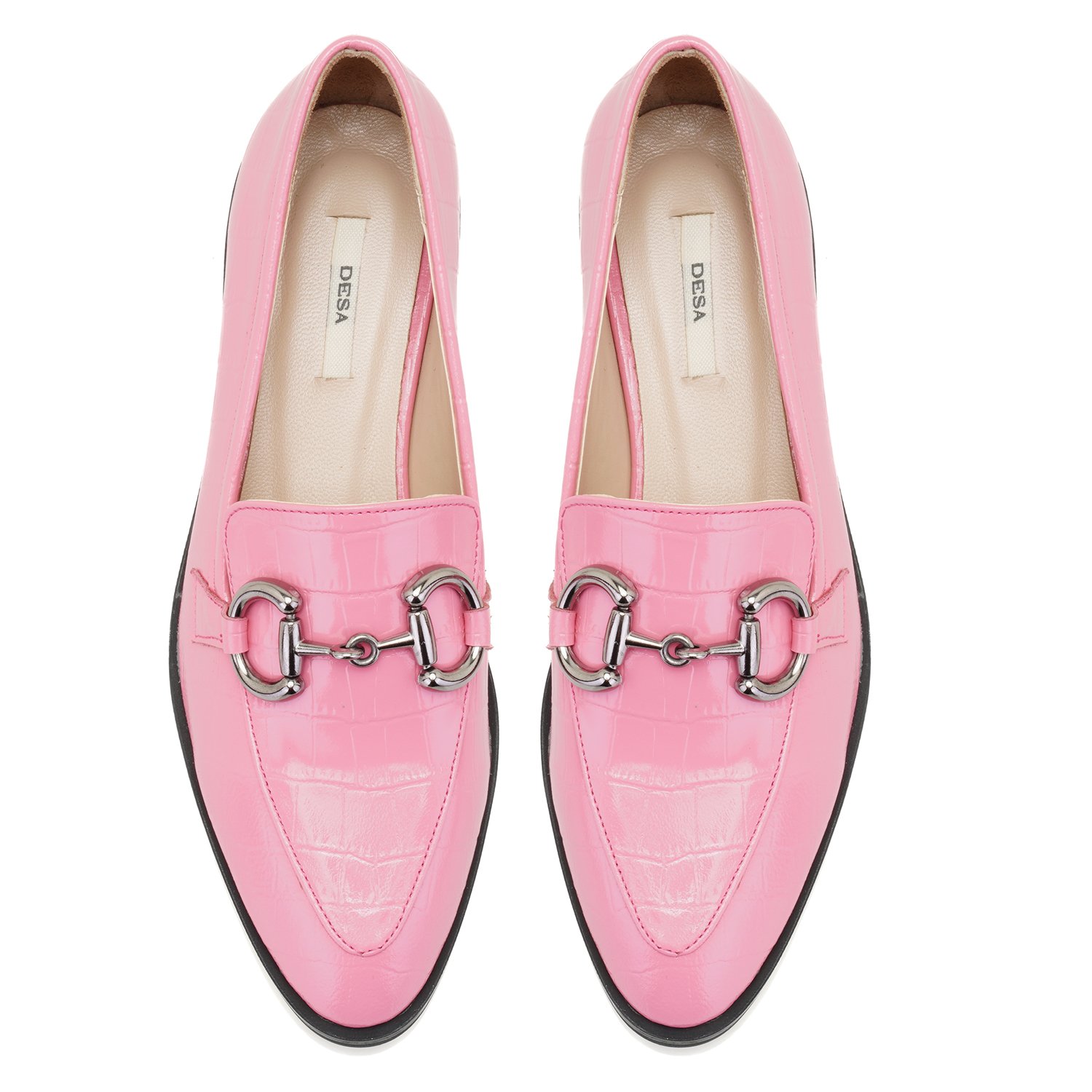 Kadın Pembe Kroko Baskılı Deri Loafer