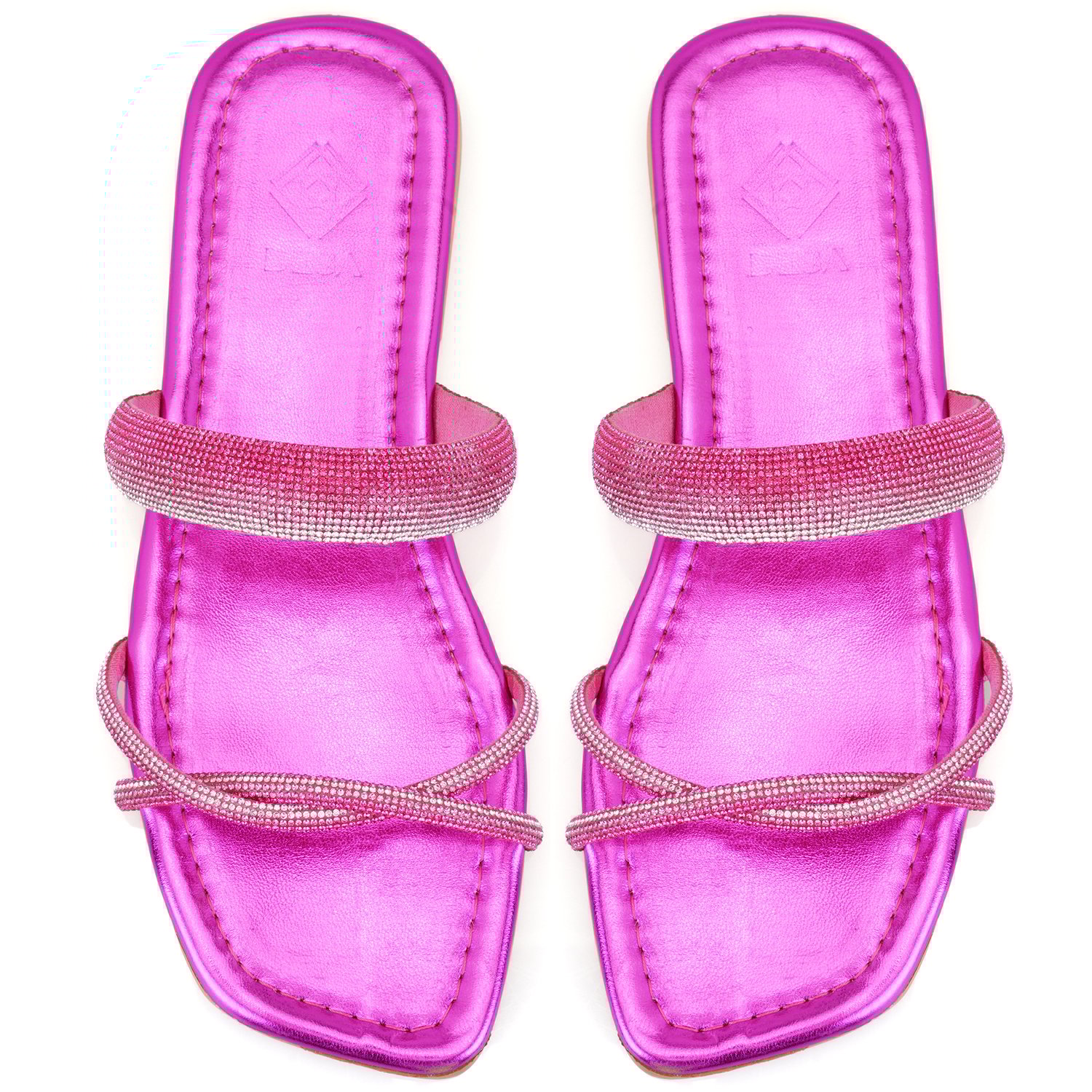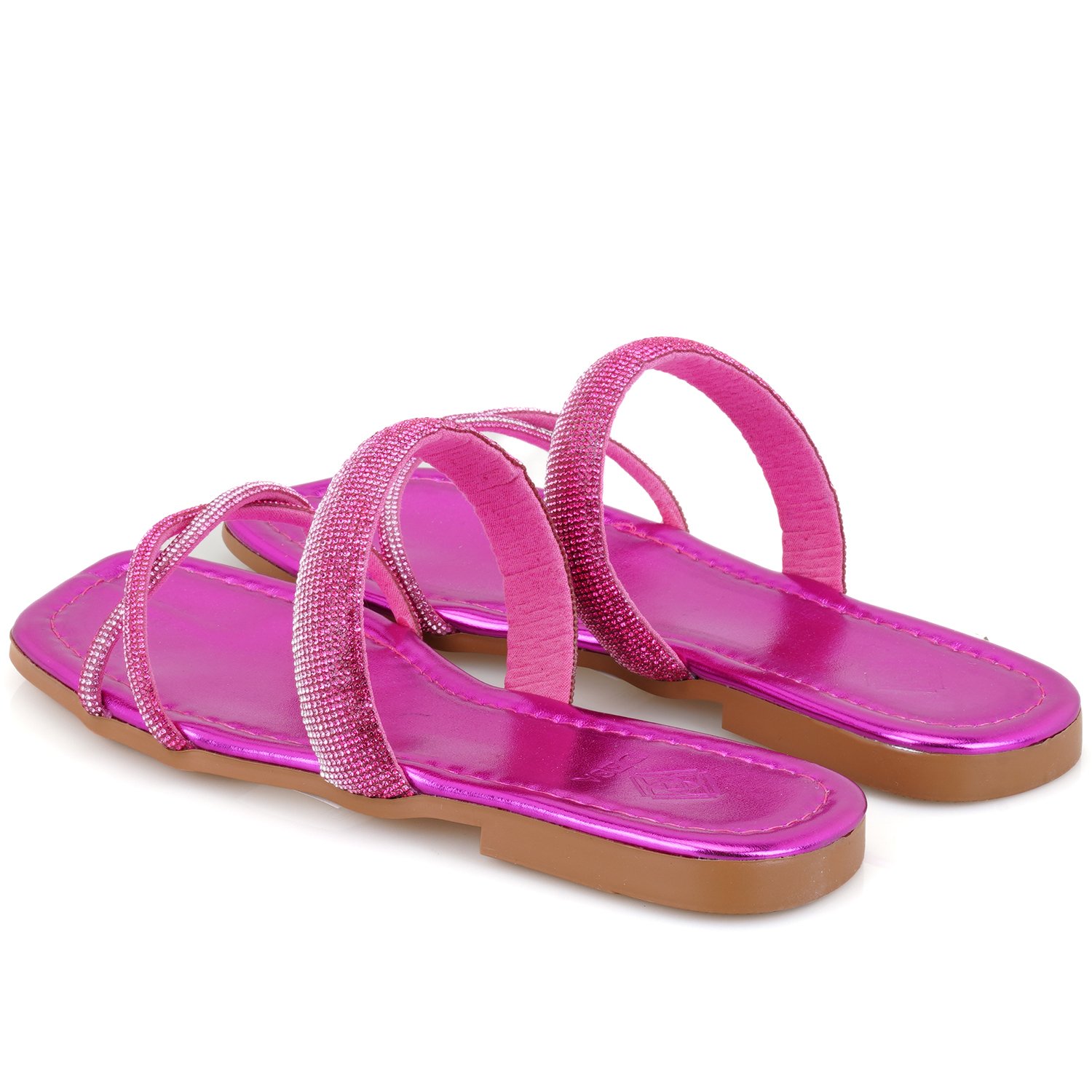 Kadın Pembe Parlak Taş Detaylı Terlik