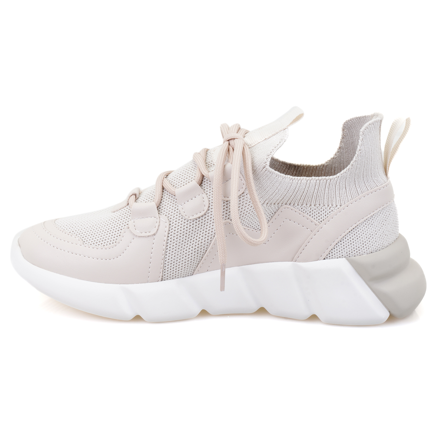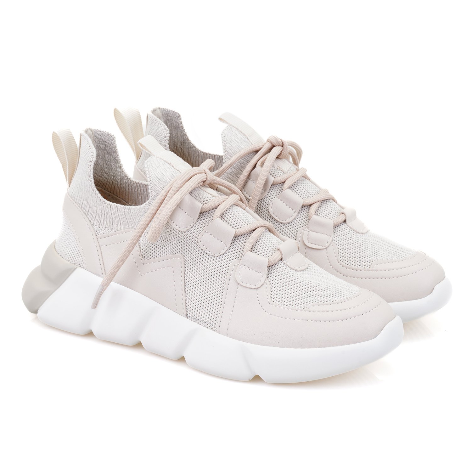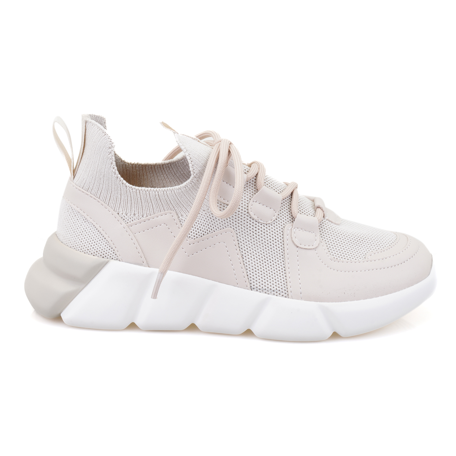 %100 tekstil, tekstil iç astarlı, tekstil iç tabanlı, pu tabanlı, bağcık detaylı, kadın triko spor ayakkabı.