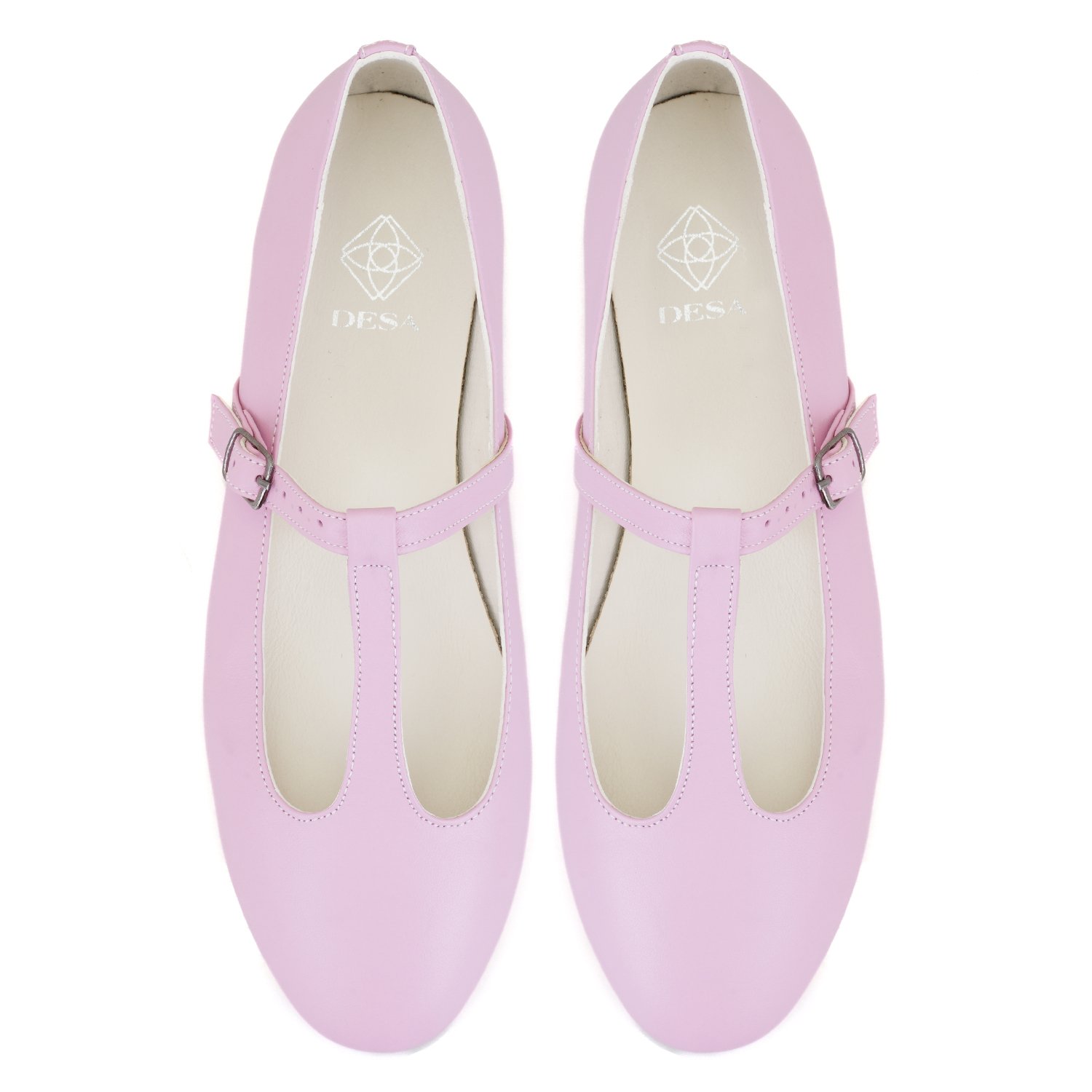 Kadın Pembe T-Bant Mary Jane Deri Babet